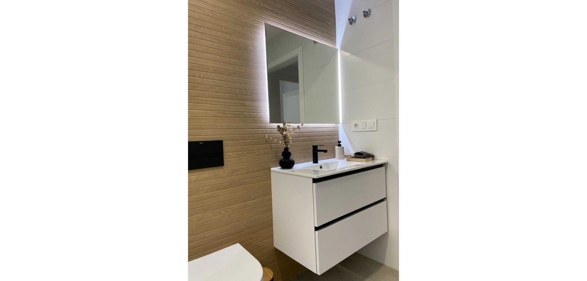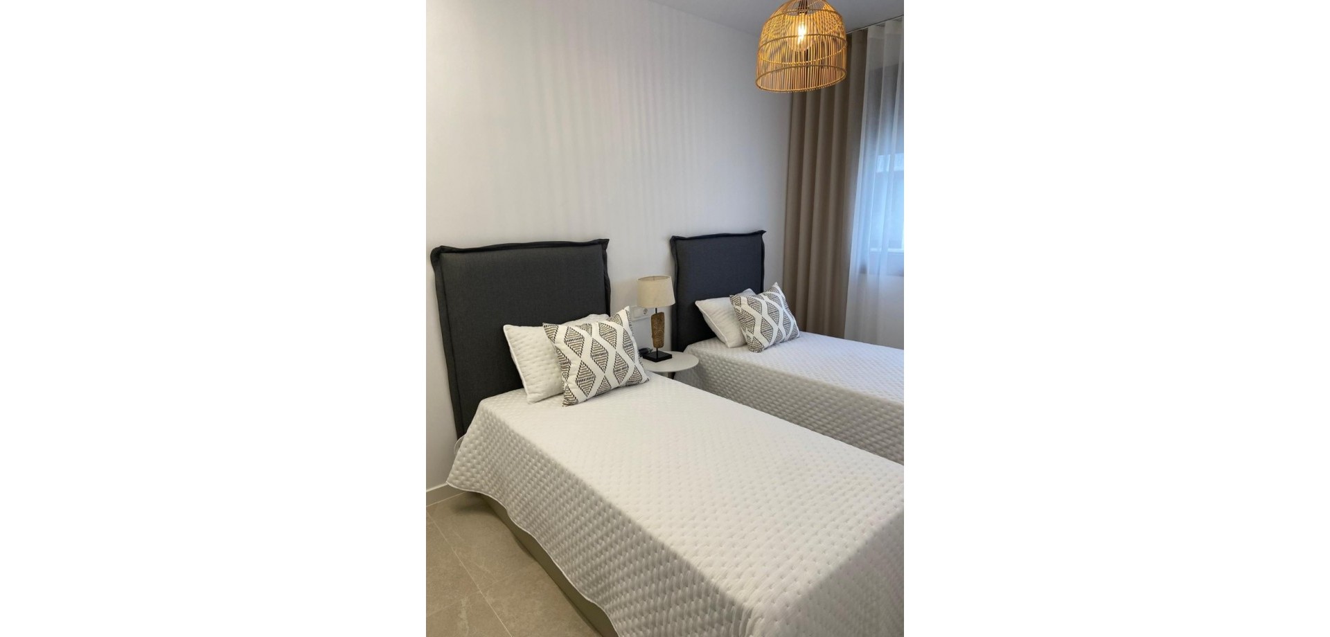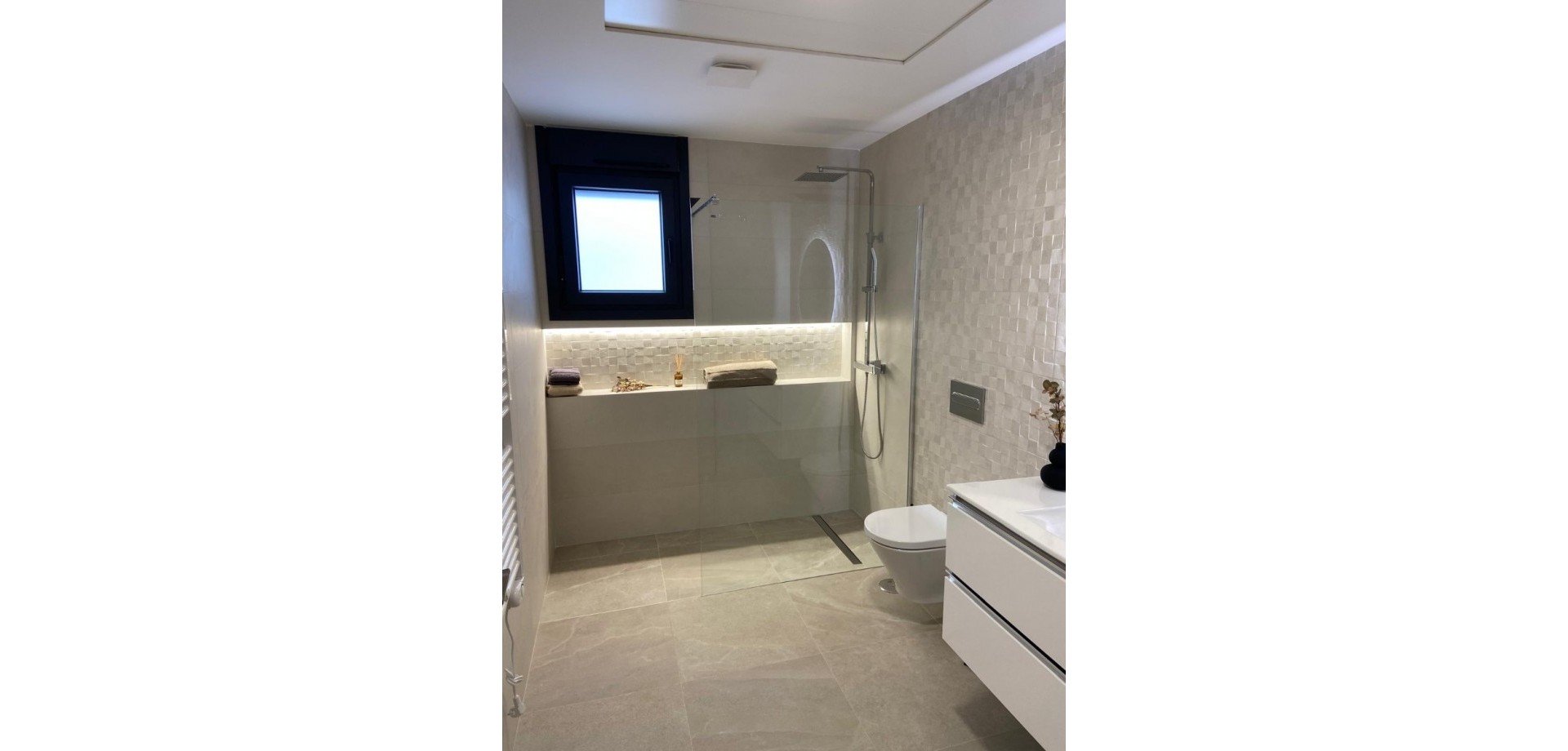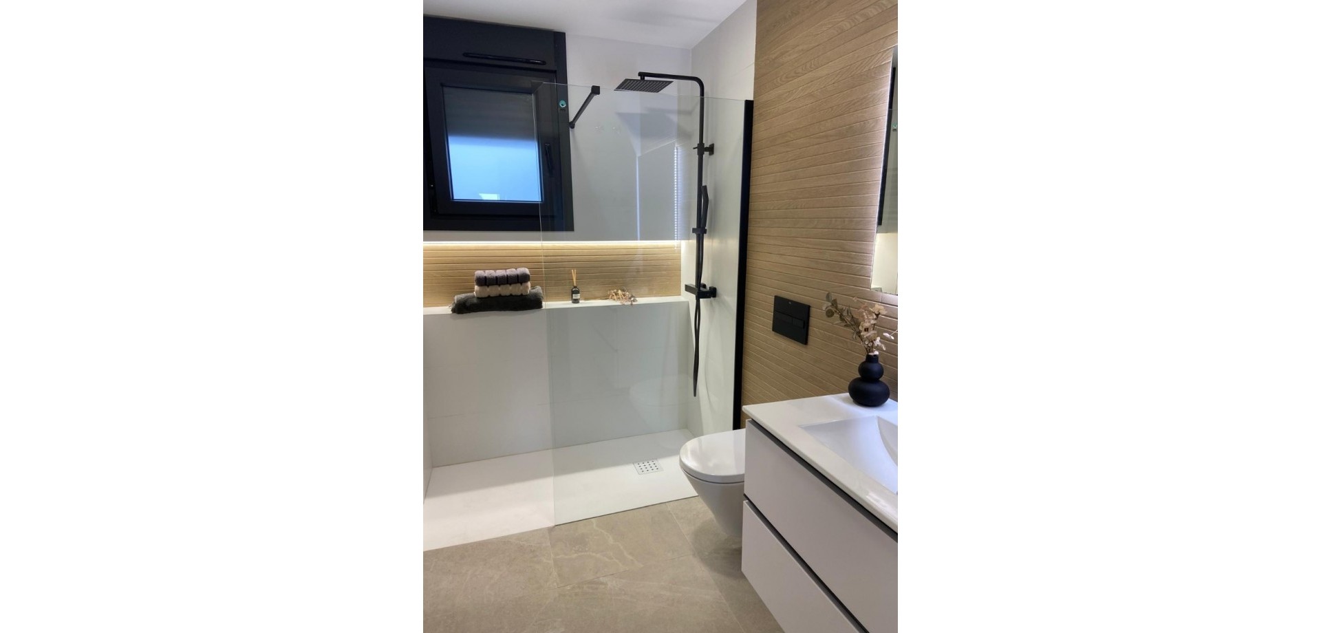 Genießen Sie moderne Annehmlichkeiten wie kostenlose Klimaanlagen, Einbauschränke in allen Schlafzimmern, Vorinstallation für Glasfaseranschluss und eine Gegensprechanlage. Die Innenbeleuchtung umfasst LED-Spots in Küche, Wohnzimmer, Flur und Badezimmern, zusätzliche Wandleuchten an der Fassade und integrierte LED-Spots im Garten und auf der Sonnenterrasse. Jede Wohnung ist mit einem Photovoltaik-Solarpanel für erneuerbare Energien ausgestattet. Die Küche ist mit Elektrogeräten von Balay ausgestattet, darunter ein Induktionskochfeld, ein Backofen, eine Mikrowelle, ein Dunstabzug, ein integrierter Kühlschrank und eine Geschirrspülmaschine.