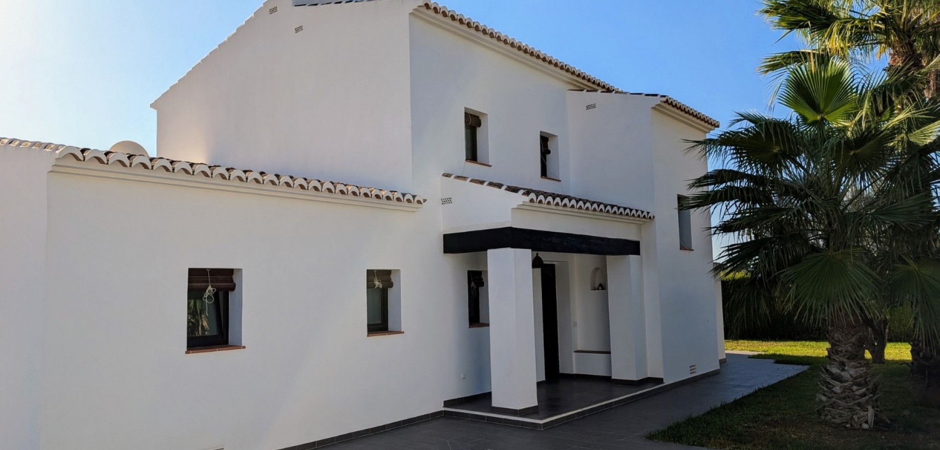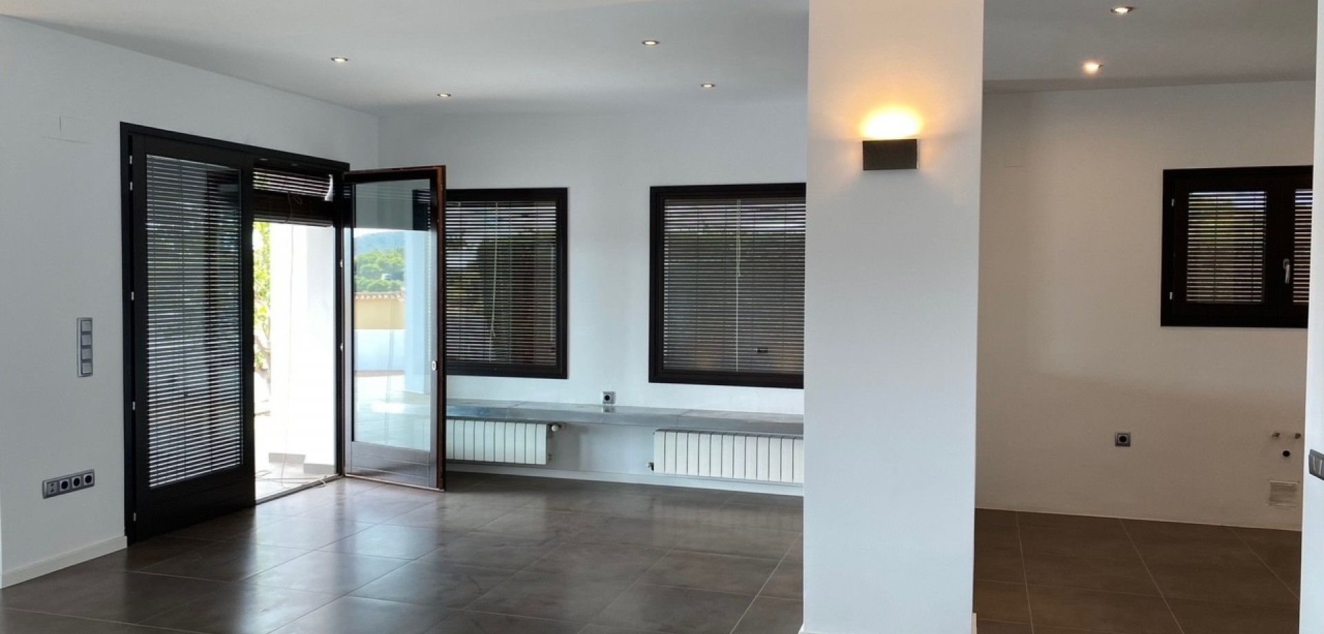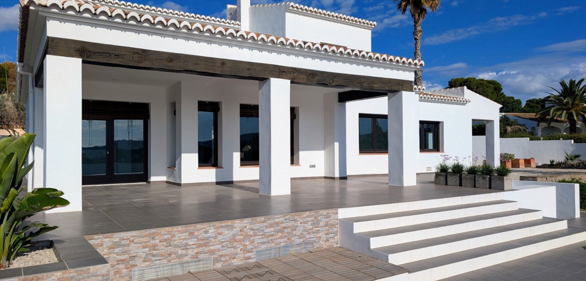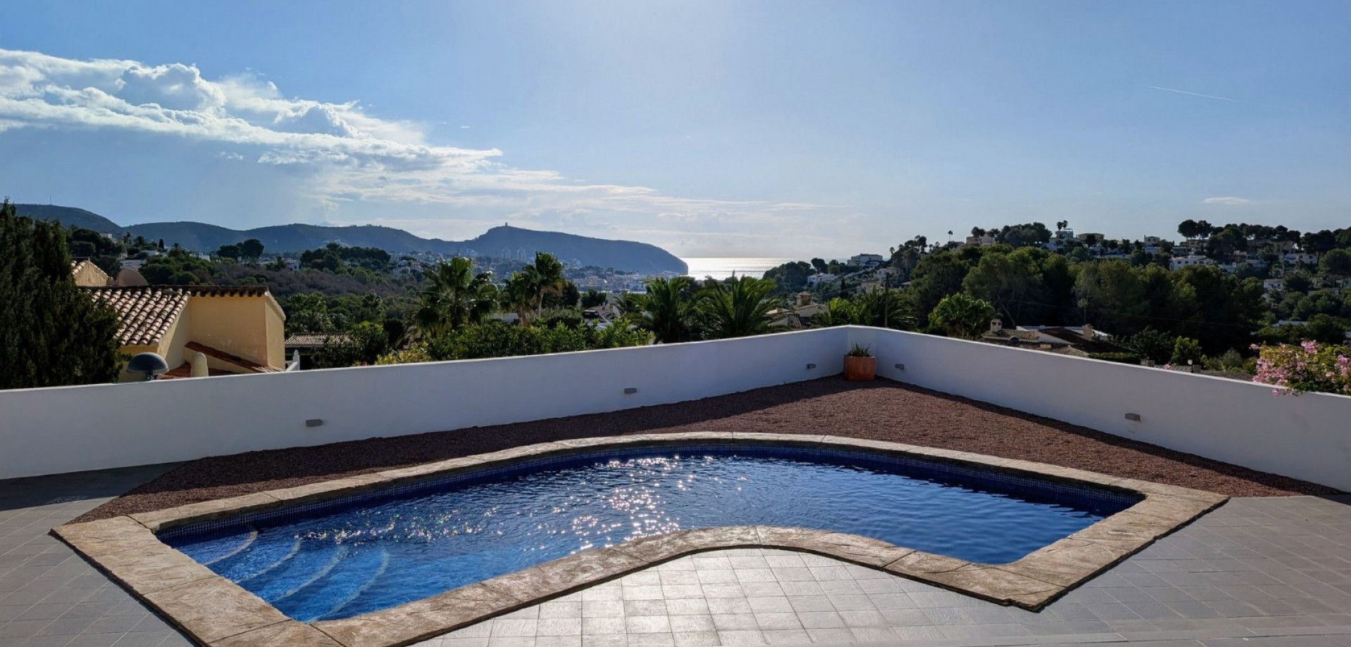 Dieses fantastische Haus auf der Spitze eines Hügels mit freiem Blick auf Kap Moraira, das Meer und die Küste von Moraira. Seine Position an der Spitze des Hügels ermöglicht es Ihnen, Privatsphäre in seiner Terrasse und Poolbereiche zu genießen. Das Haus befindet sich eine kurze Fahrt vom Zentrum von Moraira, seine Strände, sowie Supermärkte, Bars und Restaurants. Das Haus ist auf einem Grundstück von 897 m2 praktisch alle auf der Ebene des Hauses gebaut. Die Villa mit exklusivem Design, ist auf zwei Etagen gebaut: Im Erdgeschoss befindet sich das Wohn-Esszimmer mit Kamin, ein Raum, um eine Küche und Waschküche zu installieren (es hat vorinstallierte Sanitär-und Strom) und ein Badezimmer mit Dusche. Auf der gleichen Etage gibt es eine verbundene Wohnung, aber mit einem unabhängigen Eingang, in einem Wohn-Esszimmer, Raum für eine Küche zu installieren (es hat Vorinstallationen für Sanitär-und Strom), ein Schlafzimmer und ein Badezimmer verteilt. Die Eingangstür zur Wohnung ist vollständig aus altem Holz restauriert. Das Obergeschoss, das über eine Innentreppe zu erreichen ist, verfügt über 2 Schlafzimmer, 1 Bad und eine Sonnenterrasse mit schönem Blick auf das Meer. Von allen wichtigen Zimmern aus können Sie den Blick auf das Meer, die Terrasse und den Garten mit einem unregelmäßig geformten Pool und ein eigenes Design, Außendusche genießen. Der pflegeleichte Garten mit automatischer Bewässerung. - Wichtige Punkte: - Aluminium-Außentischlerei Holzimitation mit Climalit-Glas und Sicherheit. - Jalousien und Moskitonetze in den Schlafzimmern (die Jalousien im Obergeschoss sind motorisiert). - Einbauschränke in den Schlafzimmern mit Schiebetüren - Zentralheizung mit Heizkörpern. - Regulierbare Beleuchtung an Böden und Decken. - Schiebetür für Fahrzeuge mit Motor und Fußgängertür. - Platz zum Parken auf dem Grundstück.