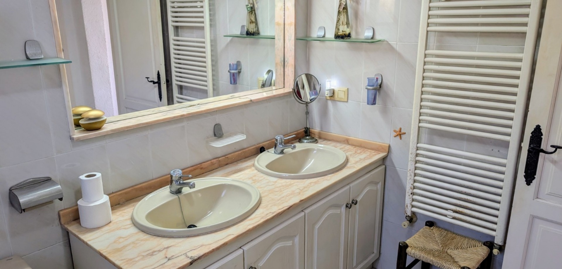 Entdecken Sie diese einstöckige Villa - ein wahres Refugium mit Panoramablick auf das Meer und die Berge, nur wenige Minuten vom Stadtzentrum entfernt. Perfekt gelegen auf einem großen, vollständig eingezäunten Grundstück, bietet diese Immobilie müheloses Leben und absolute Privatsphäre. Durch ein elektrisches Tor gelangen Sie stilvoll über Ihre palmengesäumte, private Auffahrt und lassen die Welt auf dieser sehr ruhigen Landstraße sofort hinter sich. Das Haus ist wunderschön gestaltet, beginnend mit einer überdachten , offenen Grillterrasse bis hin zur geräumigen Küche mit Frühstücksraum. Hier finden Sie atemberaubende Blue Pearl-Granit-Arbeitsplatten, reichlich Stauraum und alle Geräte, die Sie brauchen. Die Küche geht nahtlos in das spektakuläre Wohn-/Esszimmer über, das mit einem gemütlichen Holzofen und einer eleganten Balkendecke besticht. Treten Sie durch doppelte Glastüren in die sonnendurchflutete, verglaste Naya, die das ganze Jahr über genutzt werden kann und zu einer charmanten, nach Süden ausgerichteten Terrasse führt. Der ultimative private Rückzugsort Die Schlafräume sind ein absoluter Traum. Die prächtige Master-Suite ist eine private Welt für sich und verfügt über ein luxuriöses Bad mit Doppelwaschbecken und beheiztem Handtuchhalter sowie ein geräumiges , begehbares Ankleidezimmer mit reichlich Stauraum. Das geräumige Schlafzimmer verfügt über eine eigene verglaste Naya, von der aus Sie den ungehinderten Blick über das Tal auf das glitzernde Mittelmeer und die majestätischen Berge genießen können. Zwei weitere Doppelschlafzimmer (eines davon wird derzeit als Büro genutzt) und ein stilvolles Badezimmer mit einer begehbaren Dusche vervollständigen die Aufteilung. Oase im Freien und Zweckmäßigkeit Die Verlockung setzt sich draußen fort. Genießen Sie die Sonne auf der großen Poolterrasse oder entspannen Sie sich unter der Pergola und genießen Sie den ganzen Tag die Sonne und die herrliche Aussicht. Das großzügige, rustikale Grundstück auf zwei Ebenen ist vollständig eingezäunt und verfügt über zwei unabhängige Eingänge. Die obere Gartenebene ist ein einzigartiger Bonus und bietet eine große natürliche Fläche mit doppeltem Meer- und Bergblick, komplett mit einem zweiten Fahrzeugtor - perfekt für den einfachen Zugang und die Lagerung eines Wohnmobils oder Bootes. Eine Heckgarage und ein großer Lagerschuppen sorgen für die nötige Funktionalität. Diese seltene Kombination aus Platz, Bequemlichkeit auf einer Etage und spektakulärem Ausblick macht diese Villa zu einer unverzichtbaren Wohngelegenheit. - Wichtige Punkte:- Erbaut 1990- Eigentümer seit 2011- Gas-Zentralheizung- Klimatisierung- Teilweise doppelt verglast mit Moskitonetzen- Teilweise möbliert angeboten- Garage und reichlich Parkplätze- Jährliche Steuern folgen- Um Enttäuschungen zu vermeiden, sollten Sie diese Immobilie schnell besichtigen