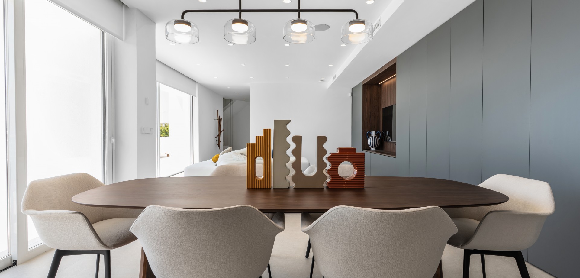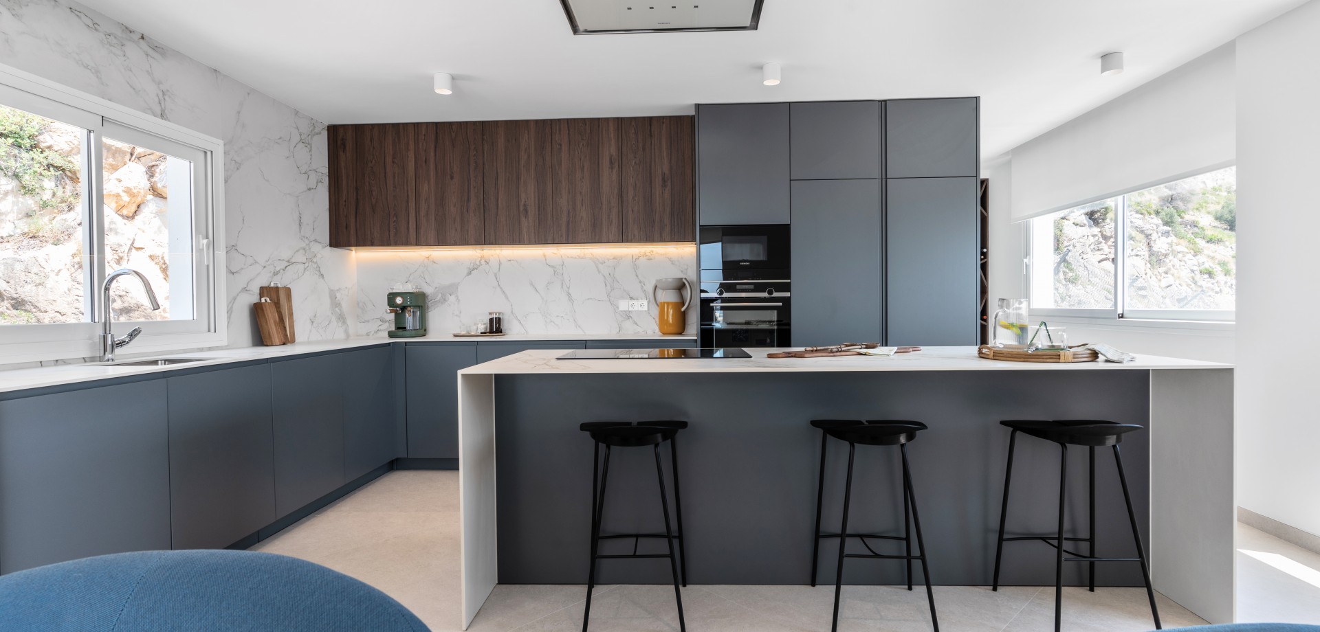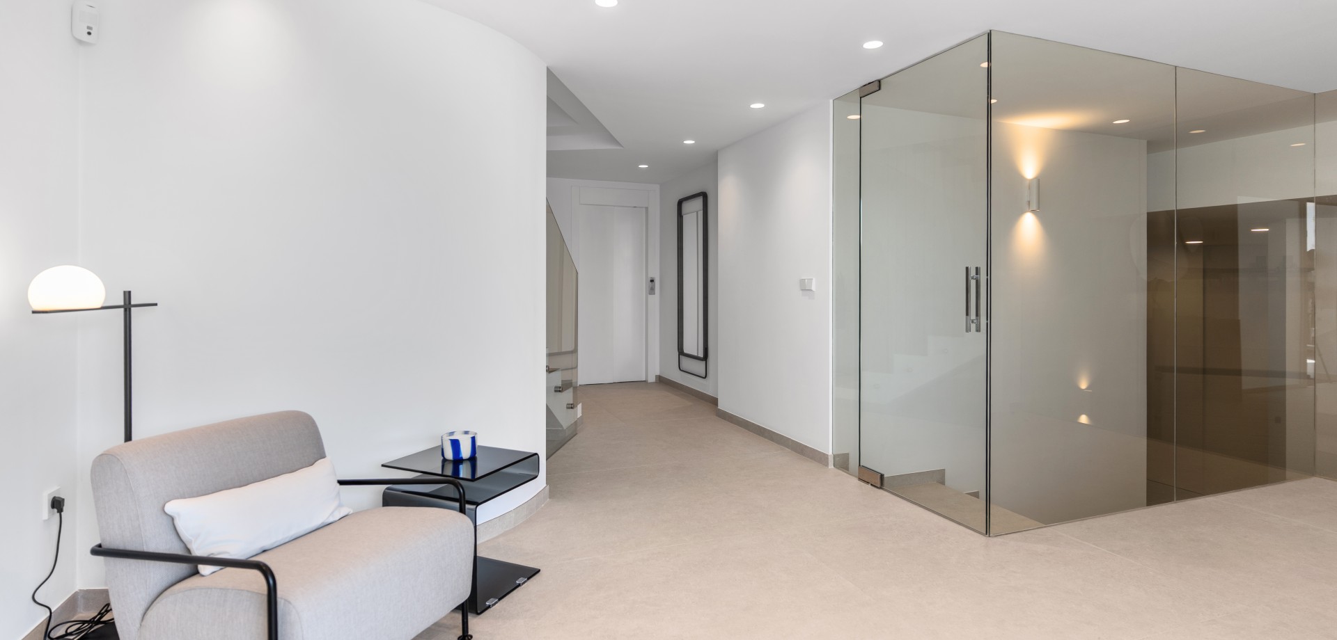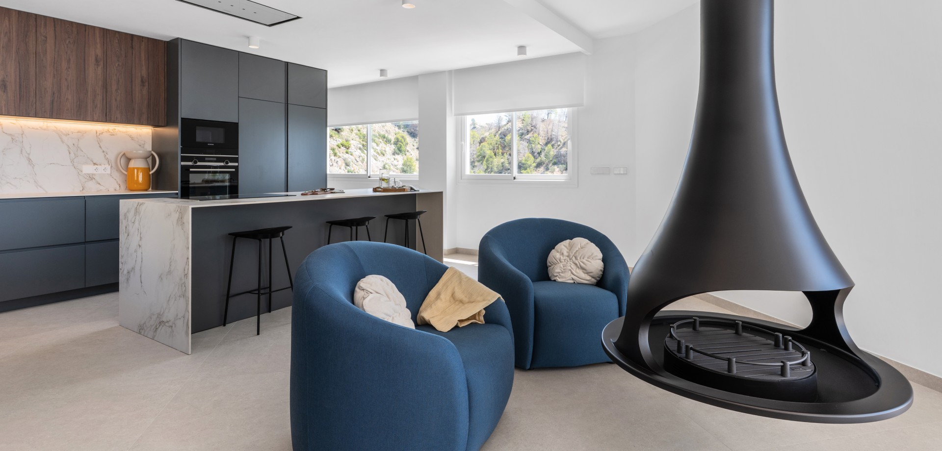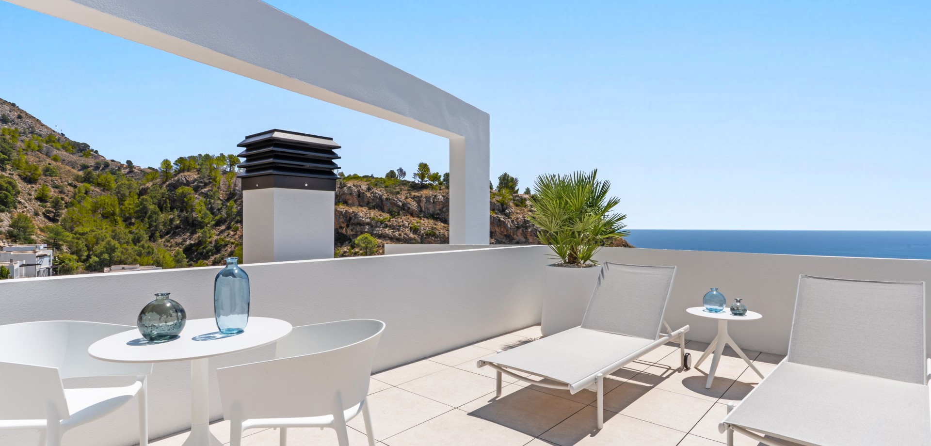 In Altea, zwischen dem Blau des Meeres und dem Grün der Pinienwälder, liegt Blanc-19 – ein vierstöckiges Haus mit einem Design, das geschaffen wurde, um die Landschaft einzufangen. Von seinen Terrassen aus erstrecken sich die Ausblicke über das Mittelmeer, die Küstenwälder und die Skyline von Benidorm und schaffen eine visuelle Verbindung, die jeden Tag zu einem besonderen Erlebnis macht. Das Haus erstreckt sich über mehrere Ebenen, die perfekt miteinander verbunden und durch einen Aufzug erschlossen sind. Die durchdachte Raumaufteilung ermöglicht die Trennung von Ruhe-, Freizeit- und Gemeinschaftsbereichen. Im Hauptgeschoss befinden sich die Gemeinschaftsräume: Wohnzimmer, Küche und Essbereich bilden ein offenes, helles Ensemble. In den oberen und unteren Etagen verteilen sich vier Schlafzimmer, ein Freizeitbereich mit TV- und Billardraum, ein Arbeitsbereich sowie mehrere Abstellräume. Das Hauptschlafzimmer befindet sich in der obersten Etage – ein privater Rückzugsort mit großzügigem Schlafzimmer, Ankleide, Bad mit freistehender Badewanne und eigener Terrasse. Die Immobilie verfügt zudem über eine geräumige Garage mit Platz für drei Fahrzeuge und eine Vorinstallation für eine Ladestation für Elektroautos. Das Haus ist bezugsfertig – komplett möbliert und dekoriert, bereit für den Einzug seiner zukünftigen Bewohner. Der Innenraum spiegelt eine klare, mediterrane Ästhetik wider: Böden in Sandtönen, weiße Flächen und große Fensterfronten, die die Räume mit Licht durchfluten. Blanc-19 ist mit hochwertigen Materialien, effizienter Technik und allen Elementen ausgestattet, die ein komfortables und modernes Wohnen ermöglichen. Vom ersten Schritt ins Haus an ist die Landschaft präsent. Warme Sonnenuntergänge, ungehinderte Ausblicke und eine konstante Ruhe machen dieses Haus zu einem authentischen Ausdruck des mediterranen Lebensstils.