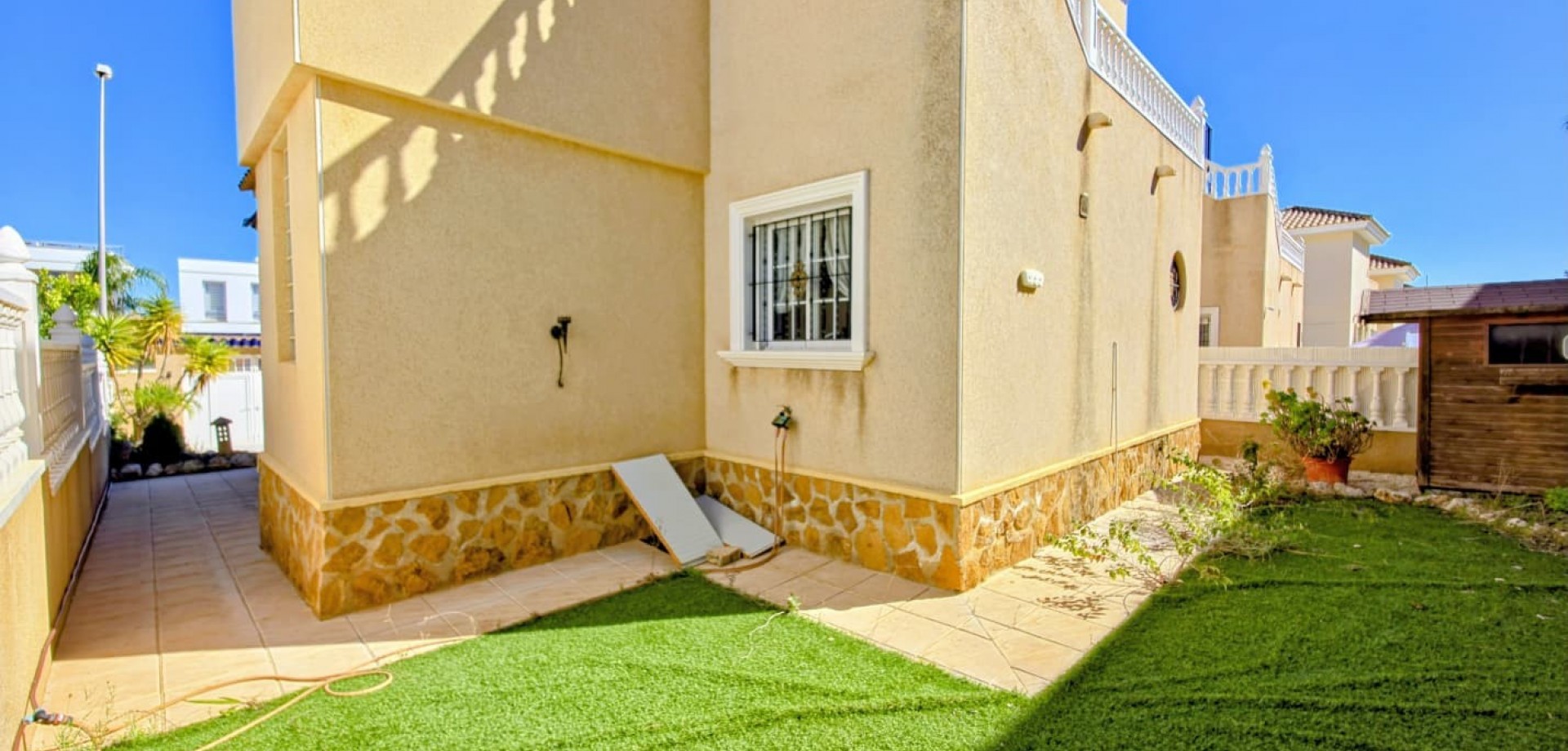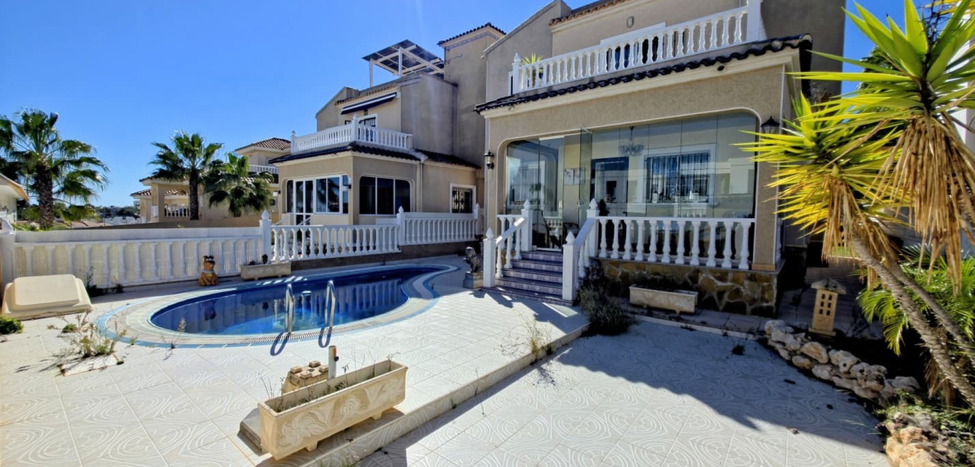 In ruhiger Lage und dennoch nur wenige Fahrminuten von Golfplätzen, Stränden und allen Annehmlichkeiten entfernt, bietet diese Immobilie eine fantastische Gelegenheit für Familien oder Investoren, die eine freistehende Villa in Orihuela Costa suchen.
