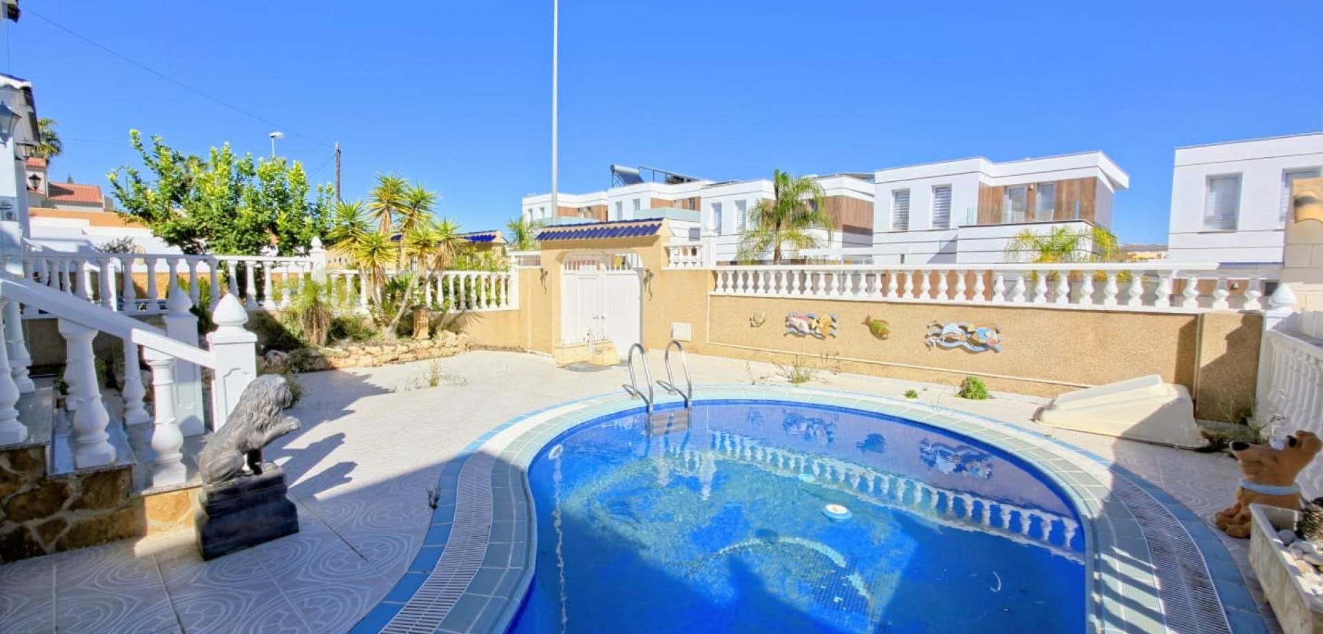 Entdecken Sie diese geräumige, freistehende Villa mit 270 m² Wohnfläche in Las Filipinas – Blue Lagoon, einer ruhigen und etablierten Wohngegend in der Nähe von Golfplätzen, Geschäften, Restaurants und allen wichtigen Einrichtungen. Diese Immobilie bietet großzügigen Wohnraum, Privatsphäre und ein hervorragendes Preis-Leistungs-Verhältnis an der Costa Blanca.