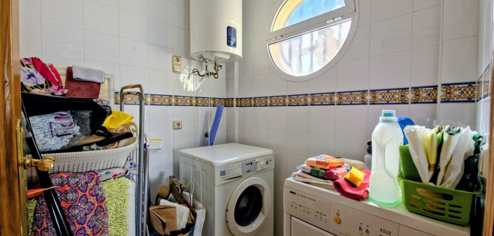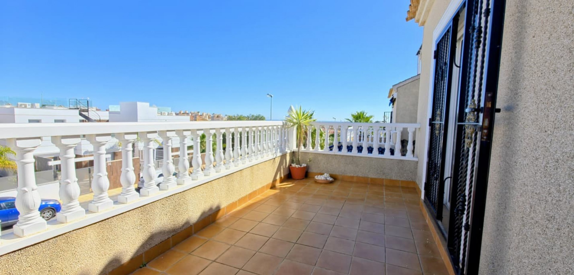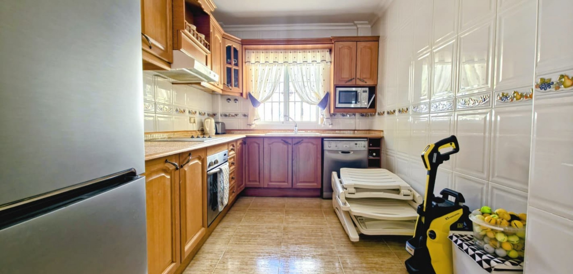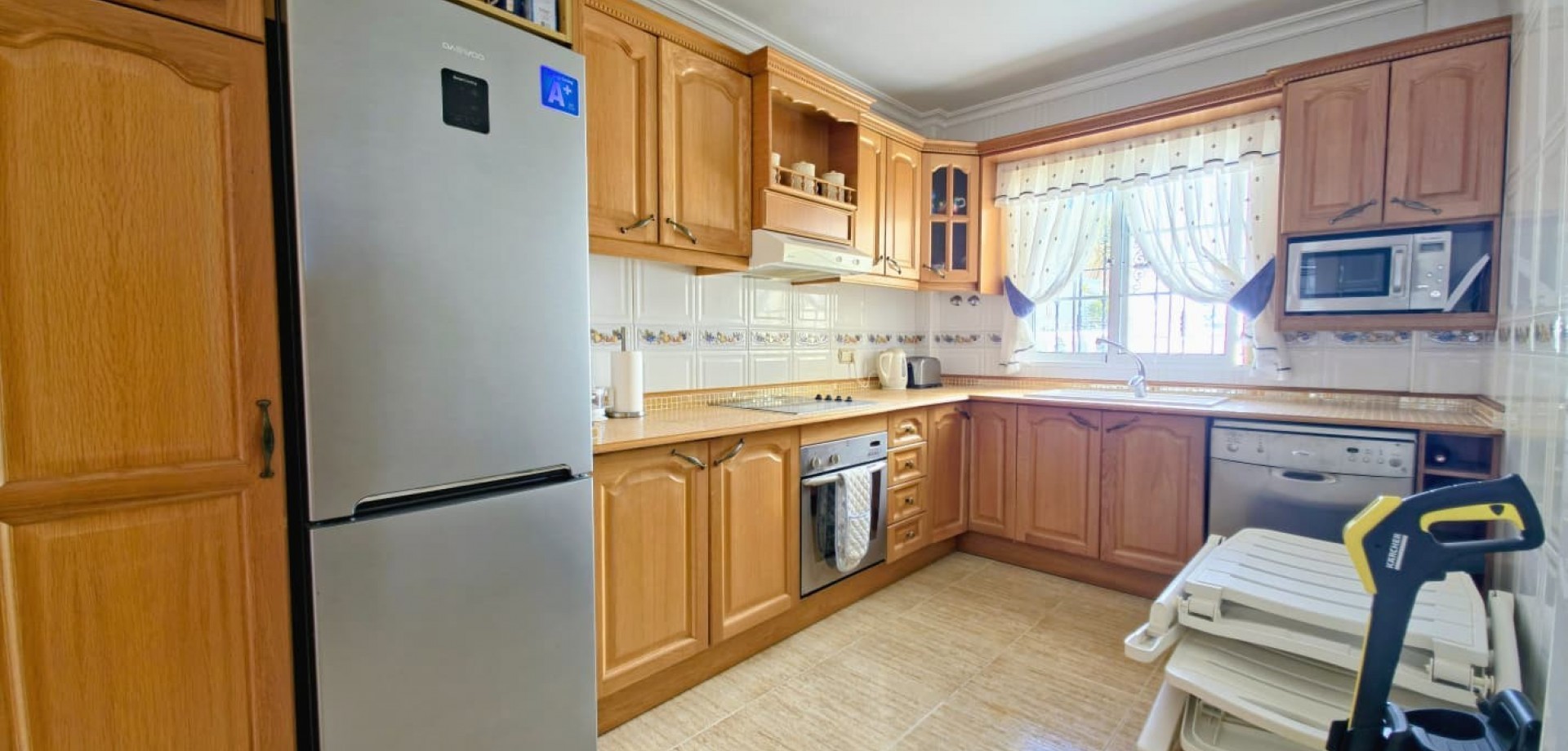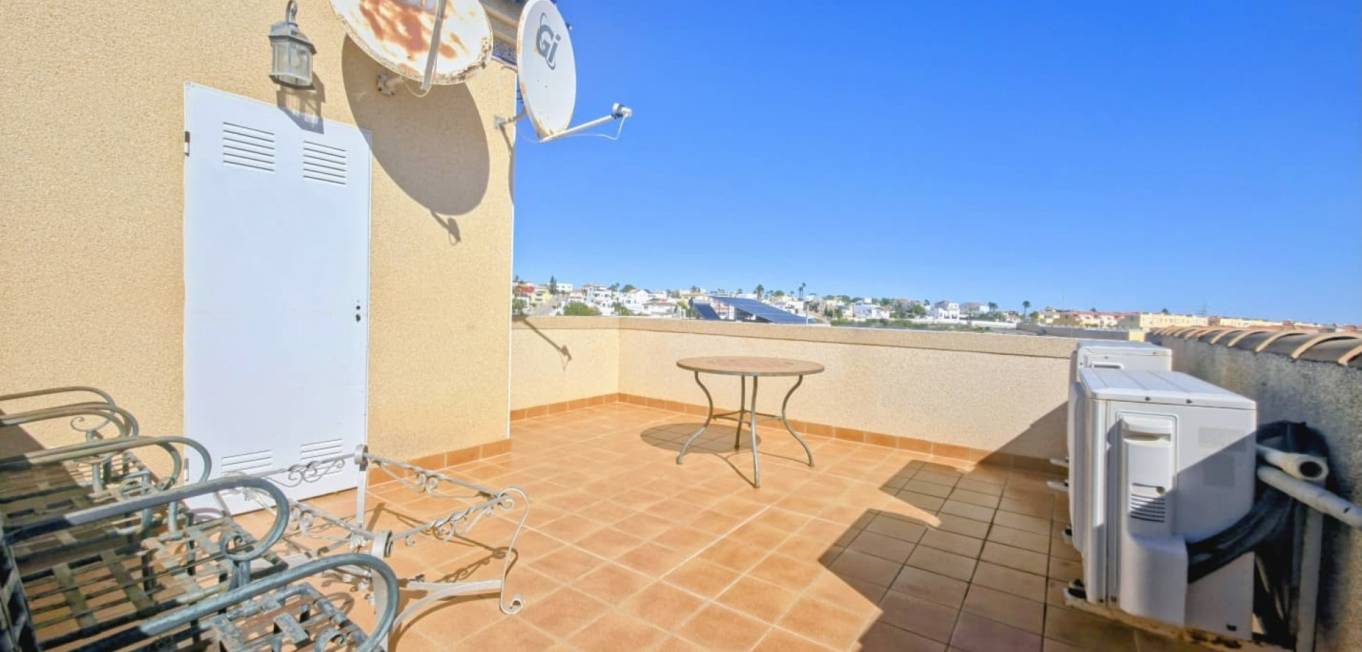 Das Haus liegt auf einem privaten Grundstück und verfügt über drei große Schlafzimmer, zwei Badezimmer, ein helles, geräumiges Wohnzimmer, eine separate, voll ausgestattete Küche sowie einen praktischen Hauswirtschaftsraum. Mehrere Terrassen bieten ideale Außenbereiche zum Entspannen oder für gesellige Stunden, während ein Abstellraum zusätzlichen Komfort bietet.