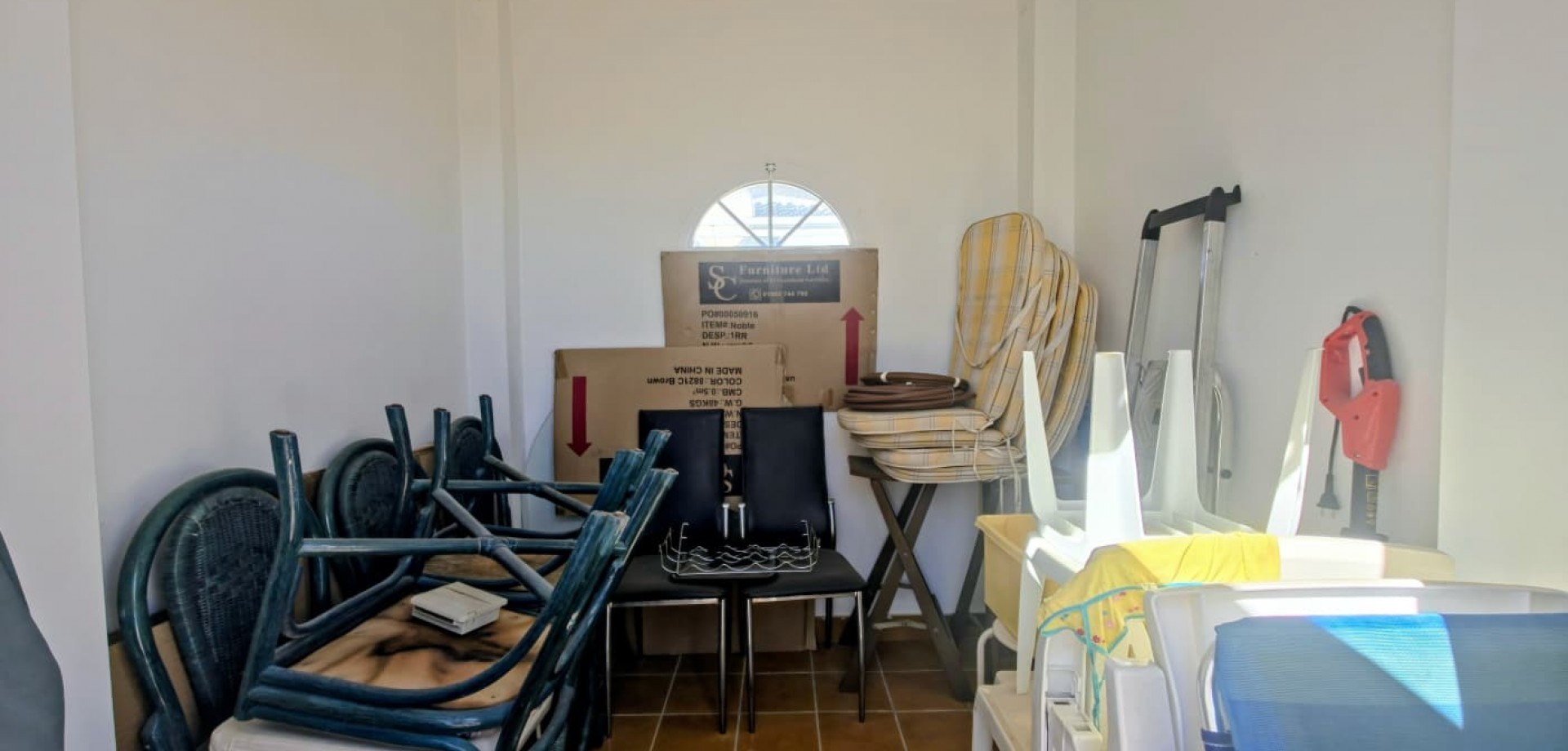 Die Villa wird komplett möbliert, inklusive aller Haushaltsgeräte, verkauft und ist frei von Gemeinschaftsgebühren. Die jährliche Grundsteuer (IBI) beträgt ca. 500 €, was für niedrige laufende Kosten sorgt.