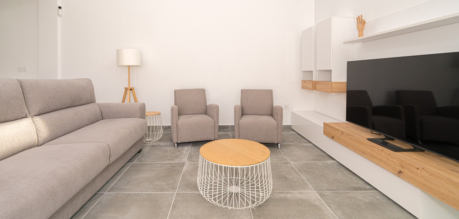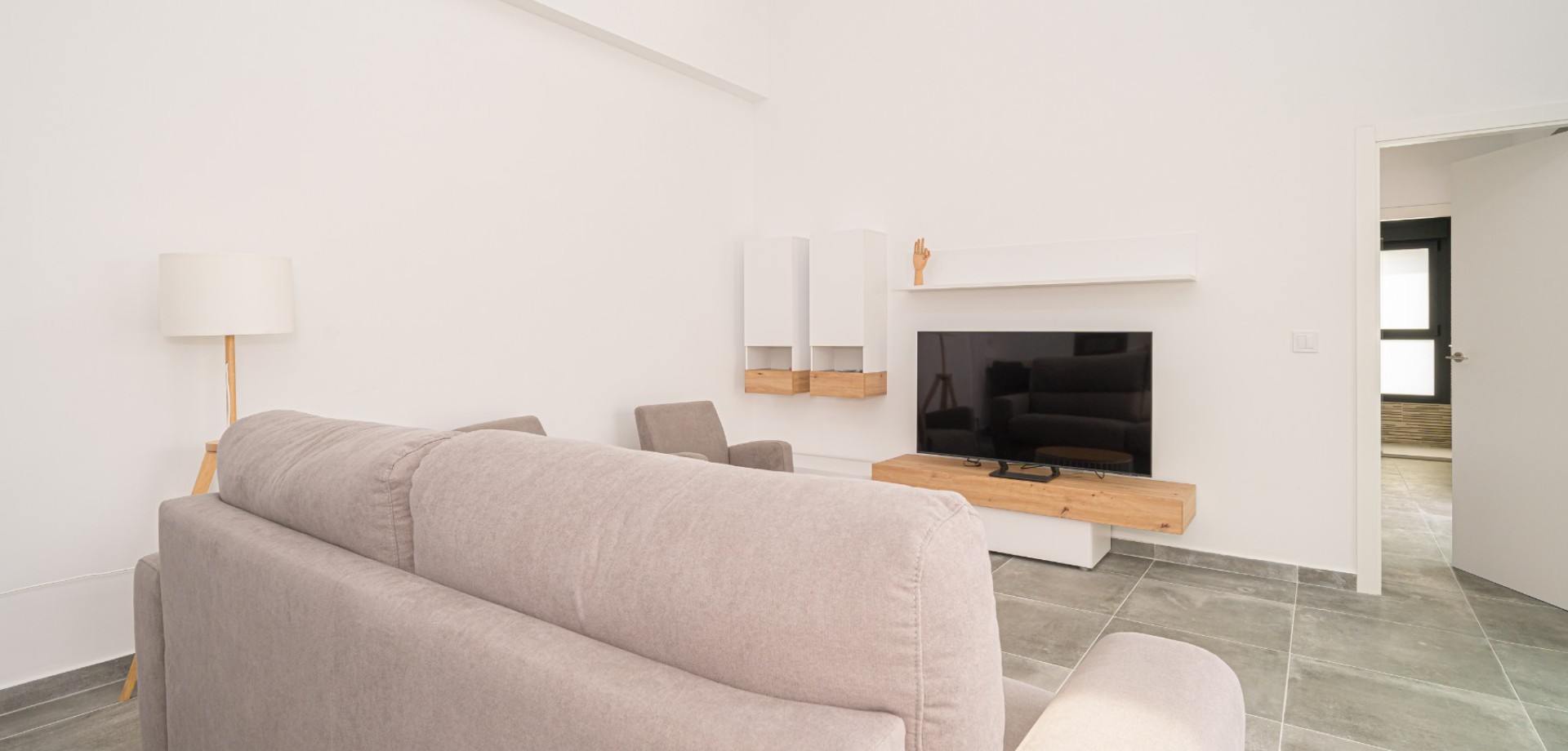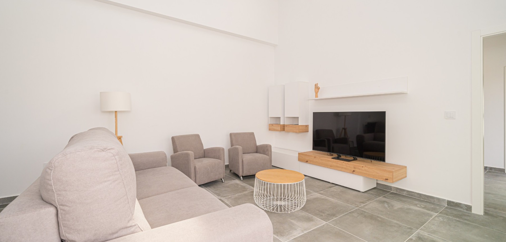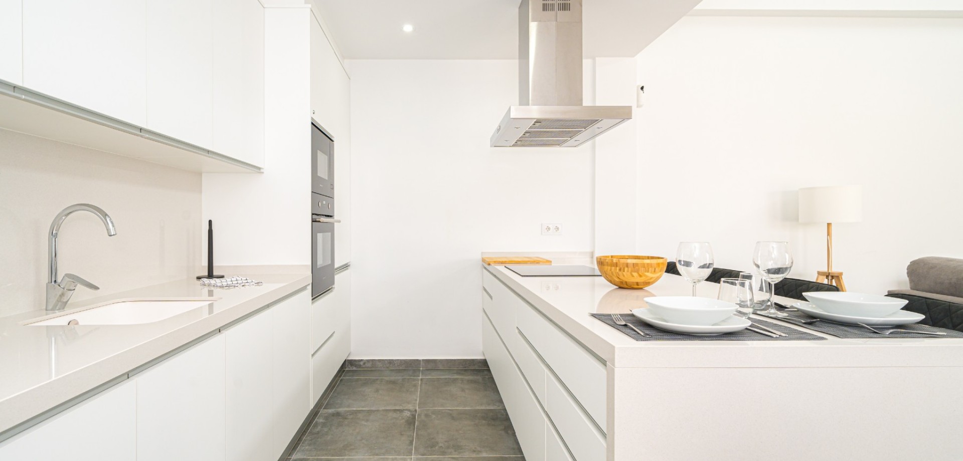 Diese 100 m² große, moderne Villa vereint moderne Architektur mit mediterranem Charme. Der helle, offene Wohnbereich geht fließend in die elegante Küche im amerikanischen Stil über und schafft so ein einladendes Ambiente, perfekt zum Entspannen oder für gesellige Stunden.
