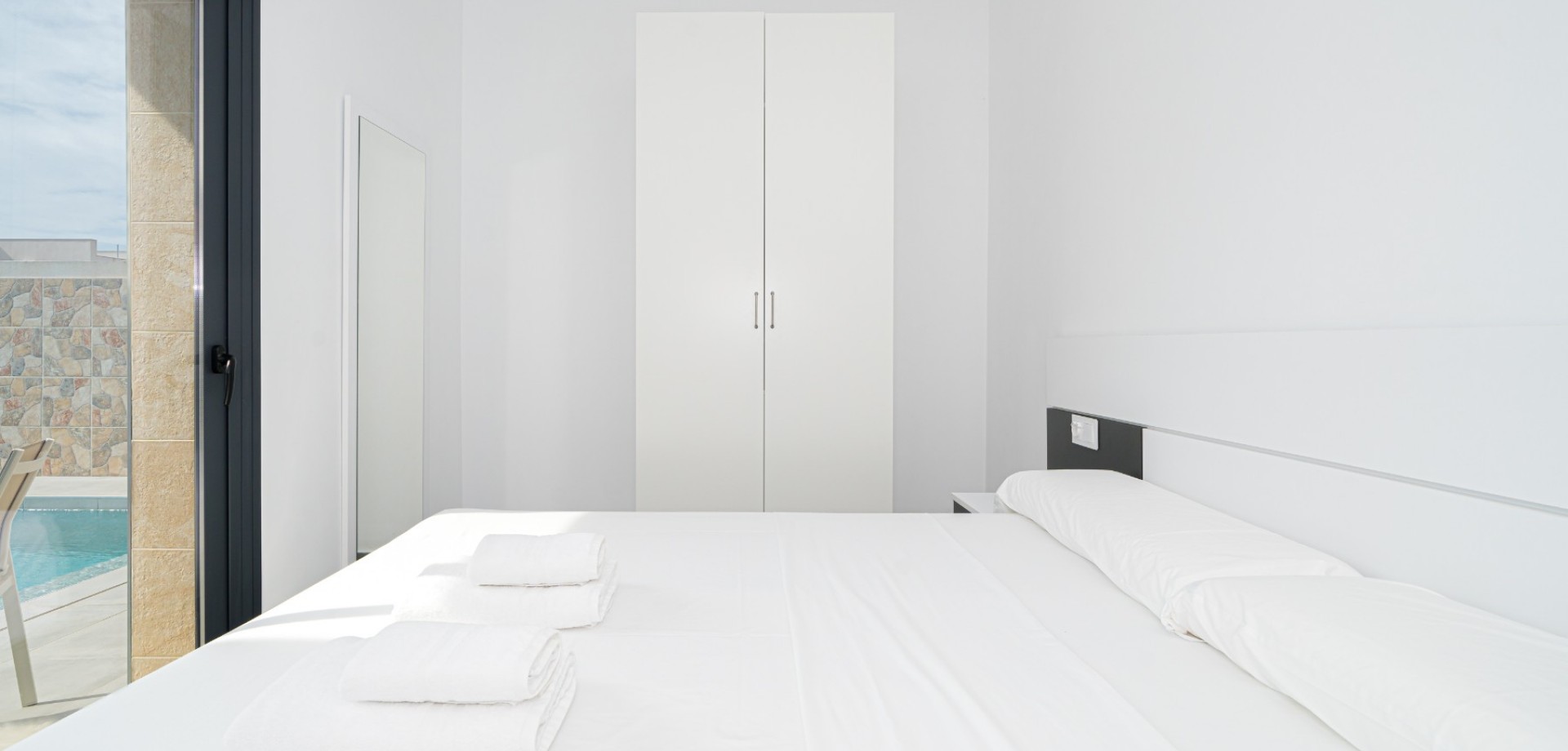 Jedes der drei Schlafzimmer ist komfortabel und durchdacht gestaltet. Klimaanlage und Zentralheizung sorgen ganzjährig für angenehme Temperaturen.