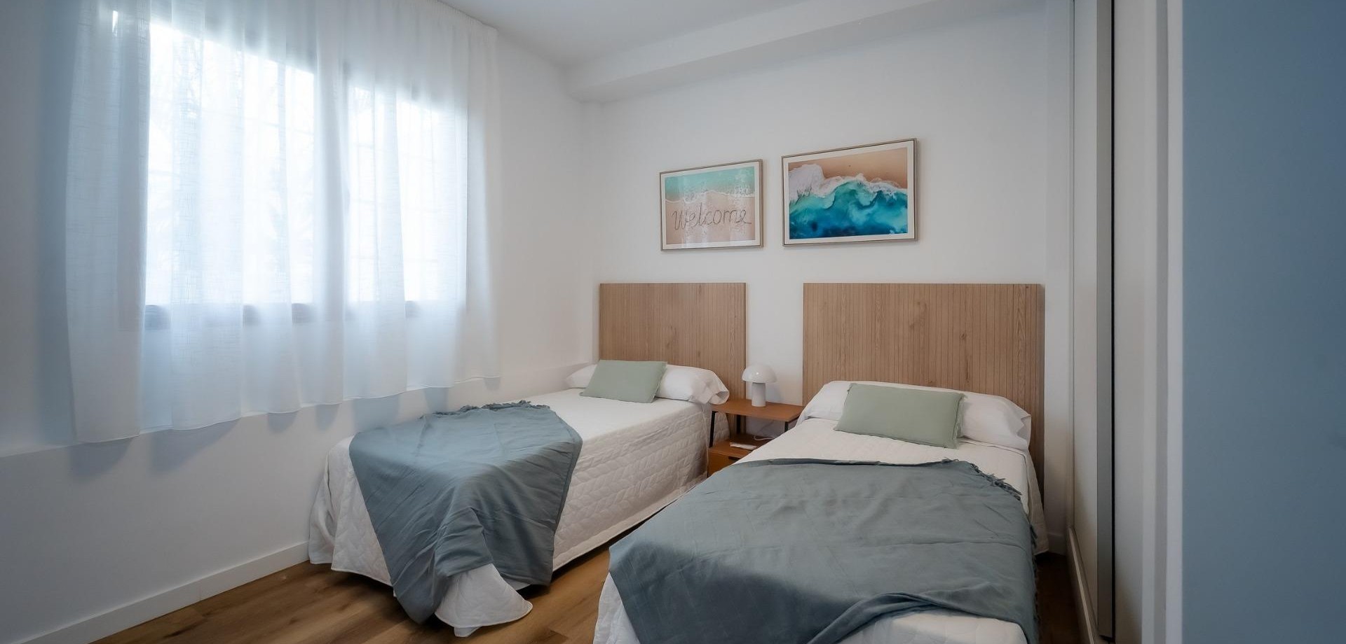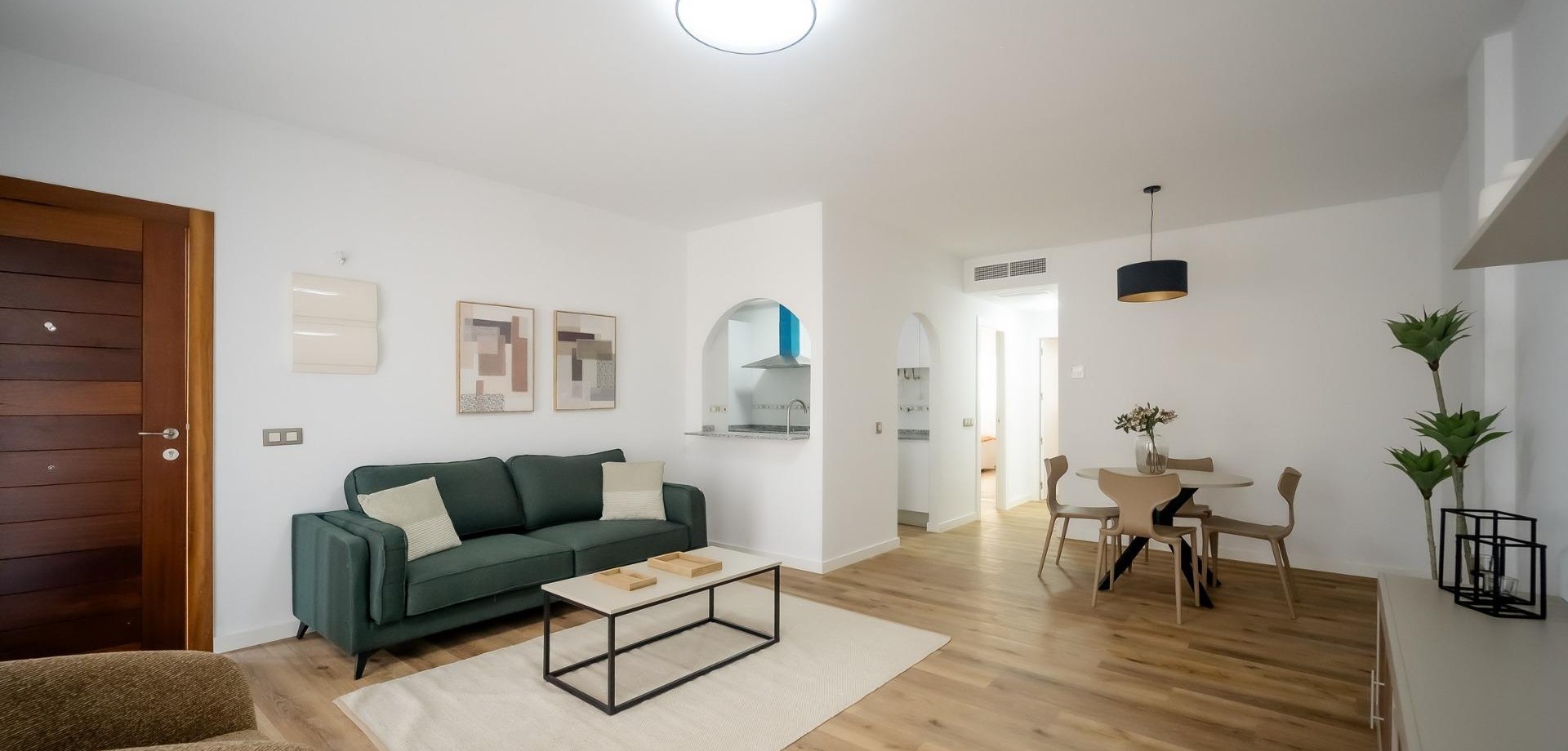 Jede Wohnung ist mit einer voll ausgestatteten Küche einschließlich Geräten, Vorinstallation für eine Klimaanlage und modernen Badezimmermöbeln mit Spiegeln ausgestattet. Die Außenverkleidung mit Holzoptik und Doppelverglasung bietet eine hervorragende Isolierung und eine warme, zeitgemäße Ästhetik. Der Stauraumbedarf wird durch einen privaten Abstellraum und einen Parkplatz im Untergeschoss gedeckt.