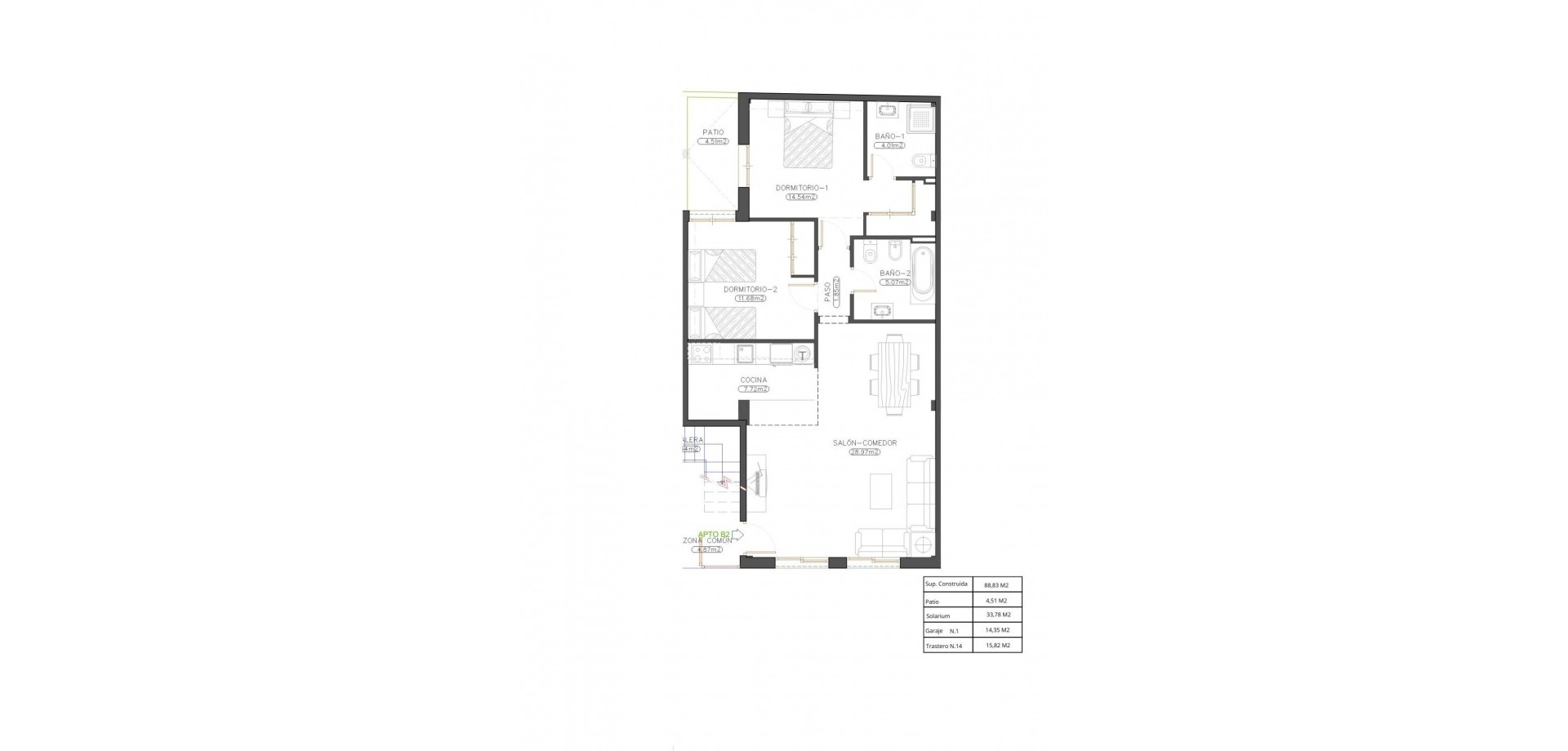Die Wohnanlage besteht aus 13 gut gestalteten Häusern mit 2 Schlafzimmern und 2 Badezimmern, von denen eines en suite ist. Käufer können zwischen Immobilien im Erdgeschoss mit privatem Innenhof oder Einheiten im Obergeschoss mit Terrasse wählen. Bitte beachten Sie, dass das Gebäude keinen Aufzug hat und somit einen eher traditionellen Wohnstil in einem niedrigen Gebäude bietet. Alle Wohnungen verfügen über ein privates Solarium auf dem Dach, das sich ideal zum Sonnenbaden, Entspannen oder Genießen der freien Aussicht auf die Umgebung eignet.