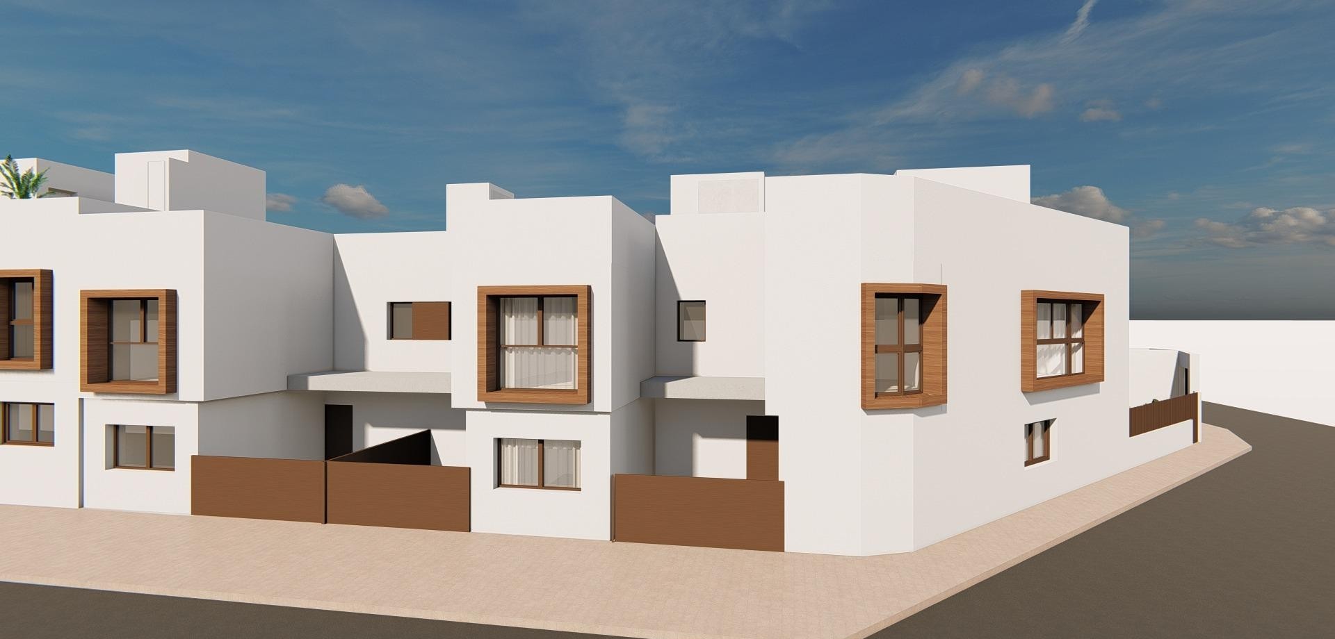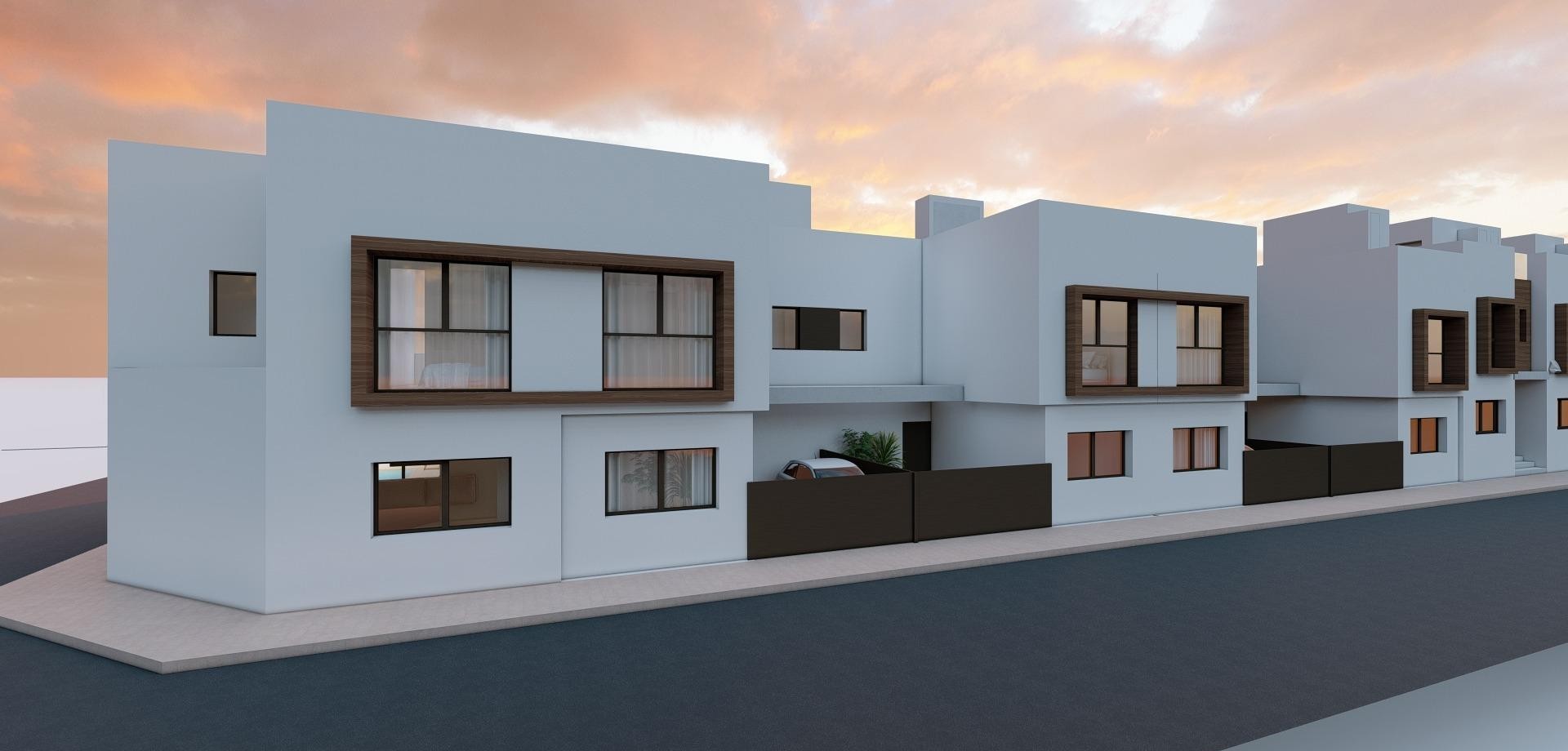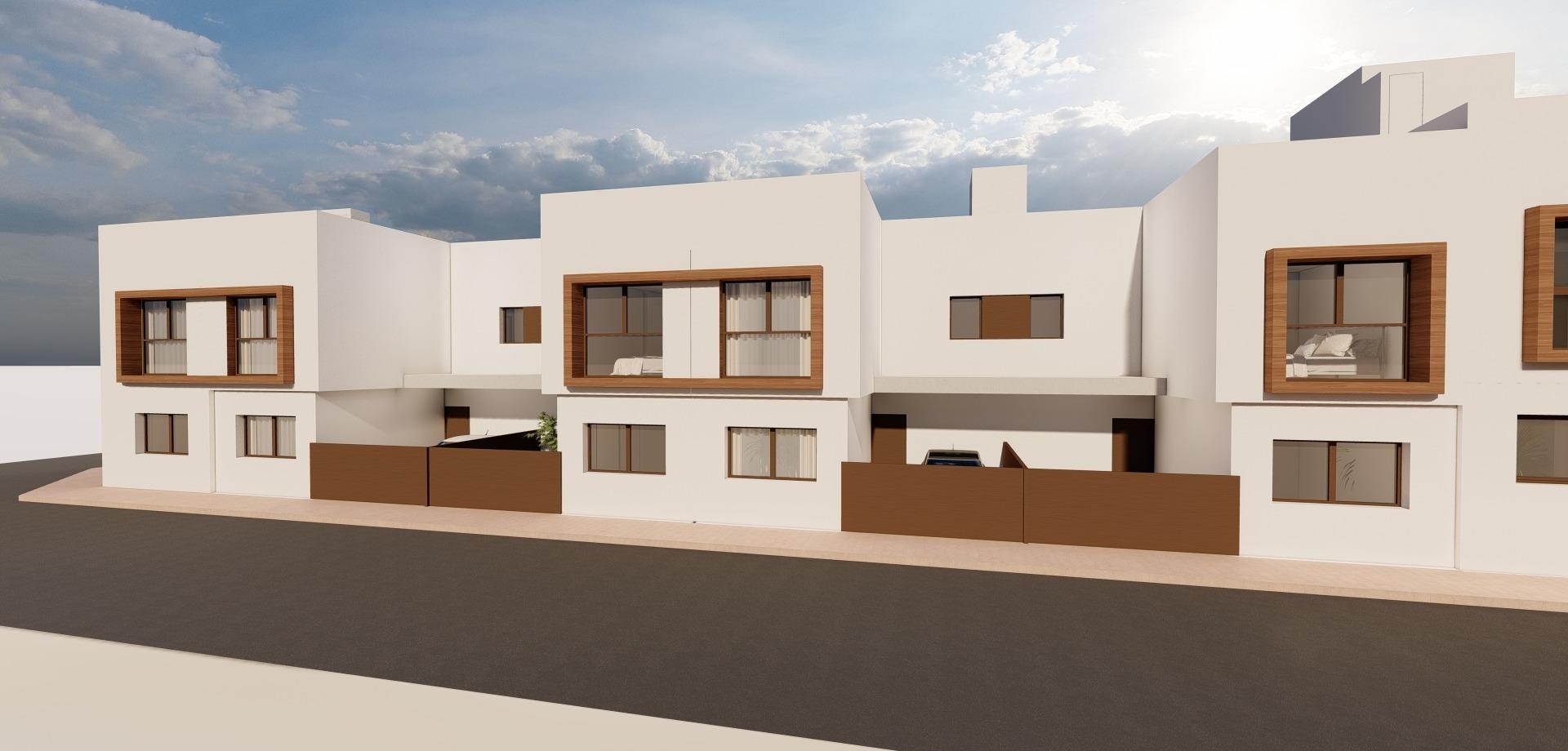 Neue Stadthäuser in San Javier - Modernes Design und beste Lage Zeitgenössische Design-Stadthäuser mit privatem Swimmingpool Entdecken Sie diesen exklusiven Komplex mit 9 brandneuen Stadthäusern in San Javier, Murcia, die für maximalen Komfort und einen modernen Lebensstil konzipiert wurden. Jedes Haus verfügt über einen privaten Swimmingpool, eine Terrasse, eine Sonnenterrasse und einen Parkplatz und bietet somit das ganze Jahr über einen idealen Ort zum Entspannen und Genießen. Die Häuser wurden mit hochwertigen Materialien und einer offenen Bauweise gebaut, die das natürliche Licht optimal nutzt. Sie eignen sich sowohl für einen dauerhaften Wohnsitz als auch für ein Ferienhaus an der Costa Cálida. Hochwertige Verteilung und Ausstattung Jedes Stadthaus verfügt über: 3 geräumige Schlafzimmer mit Einbauschränken und Kommoden. 3 voll ausgestattete Bäder mit Möbeln, Spiegeln und Abschirmungen. Offene Küche, komplett möbliert und mit Elektrogeräten ausgestattet. Geräumiges Wohn-Esszimmer mit großen Fenstern, die auf die Terrasse führen. Privates Schwimmbad mit Dusche und Garten mit Kunstrasen. Solarium mit Sommerküche, perfekt, um das mediterrane Klima zu genießen. Vorinstallation einer Klimaanlage auf jeder Etage. PVC-Außentischlerei mit Doppelverglasung, die Wärme- und Schalldämmung garantiert. Sicherheitseingangstür, für mehr Sicherheit und Schutz. Strategische Lage in San Javier San Javier ist eine Küstenstadt mit einem breiten Angebot an Dienstleistungen, Sportanlagen und Freizeiteinrichtungen. Die Lage dieser Wohnung ermöglicht einen schnellen Zugang zu: Strände des Mar Menor - nur 5 Minuten mit dem Auto. Strände des Mittelmeers - 10 Minuten entfernt. Golfplätze - Verschiedene Möglichkeiten in der Umgebung, ideal für Golfliebhaber. Einkaufszentren und Dienstleistungen - Alles, was Sie brauchen, ist nur wenige Minuten entfernt. Flughafen Murcia-Corvera - 30 Minuten entfernt. Flughafen Alicante - 45 Minuten entfernt. Genießen Sie das beste Klima und die beste Lebensqualität in San Javier San Javier ist eine ausgezeichnete Wahl für diejenigen, die eine Immobilie in Meeresnähe suchen, mit einem privilegierten Klima und Zugang zu allen Arten von Outdoor-Aktivitäten. Verpassen Sie nicht die Gelegenheit, eines dieser exklusiven Häuser zu erwerben. Kontaktieren Sie uns noch heute, um weitere Informationen zu erhalten oder einen Besichtigungstermin zu vereinbaren.