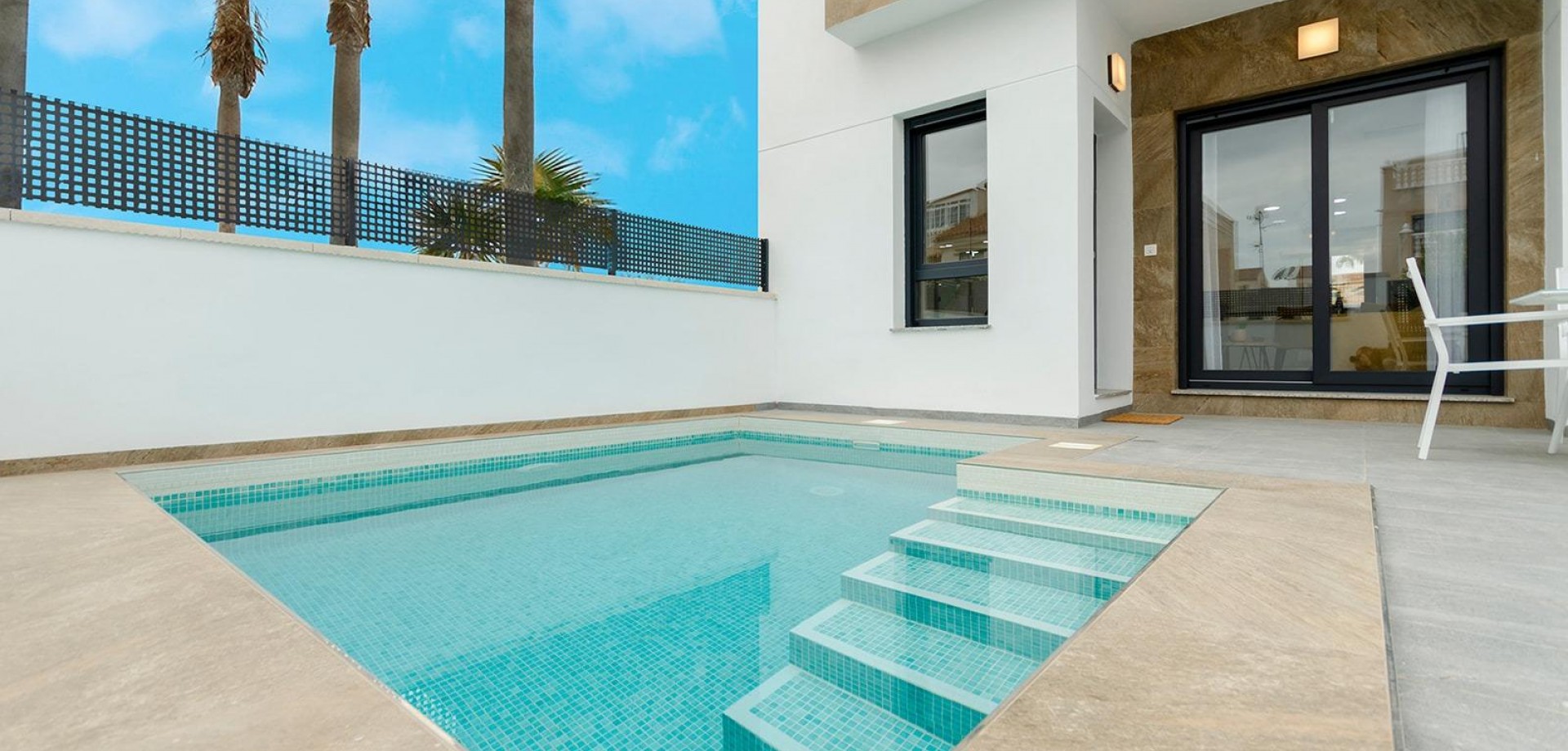 NEU GEBAUTE VILLEN IN TORREVIEJA Neubau Villen in Torreta, Torrevieja. Schöne New Build Villen bauen über 2 Etagen mit 3 Schlafzimmern, 3 Bädern, offene Küche mit Wohnbereich, Einbauschränke, Terrasse und private Solarium in einigen Einheiten. Villa comming mit Garten mit privatem Pool und Parkplatz auf dem Grundstück. Torrevieja ist eine spanische Stadt in der Provinz Alicante, an der Costa Blanca. Sie ist bekannt für ihr typisch mediterranes Klima und ihre Küstenlinie. Entlang der Sandstrände gibt es Strandpromenaden mit Ferienanlagen. Das kleine Meeres- und Salzmuseum beherbergt Ausstellungen über die Fischerei- und Salzgeschichte der Stadt. Im Landesinneren befindet sich der Naturpark Lagunas de La Mata-Torrevieja mit Wanderwegen und zwei salzhaltigen Lagunen, von denen eine rosa und die andere grün ist. Der Flughafen Alicante ist 40 Minuten und der Flughafen Murcia etwa 1 Stunde entfernt.