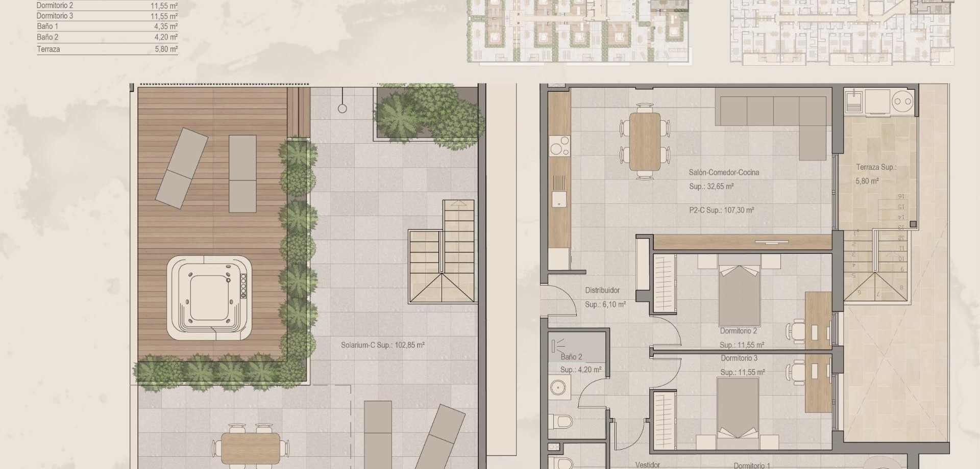 NEU GEBAUTE PENTHÄUSER IN TORRE-PACHECO Neue Wohnanlage mit Wohnungen in Torre Pacheco (Murcia) im Herzen der Costa Cálida. Die zweite Phase hat 25 Wohnungen und Penthäuser mit 2 und 3 Schlafzimmern. Moderne Wohnungen mit offener Küche mit geräumigen und hellen Wohn-Esszimmer mit Zugang zu einer großen Terrasse. Moderne Penthäuser haben ein privates Solarium. Eine Option Tiefgaragenstellplatz und Abstellraum gegen Aufpreis. Moderne Anlage mit Gemeinschaftspool und Gartenanlagen. Alle Annehmlichkeiten sind an Ihren Fingerspitzen. Es gibt Supermärkte, Apotheken, Banken, Schulen, Bars, Restaurants, der Strand und der Flughafen sind nur ein paar Minuten entfernt. Es gibt auch einen Golfclub in der Stadt ganz in der Nähe der Wohnungen und es gibt mehrere Golfplätze innerhalb von 10-25 Minuten Fahrt von den Wohnungen. Die Autobahn AP-7 befindet sich ebenfalls in der Nähe und die N-332 ist ebenfalls sehr leicht zu erreichen, so dass Sie leicht in andere Regionen wie Pilar de la Horadada, San Pedro del Pinatar, Orihuela Costa, Torrevieja, Alicante usw. reisen können. Der internationale Flughafen Murcia Corvera ist 20 Minuten entfernt, der Flughafen Alicante etwa eine Stunde.