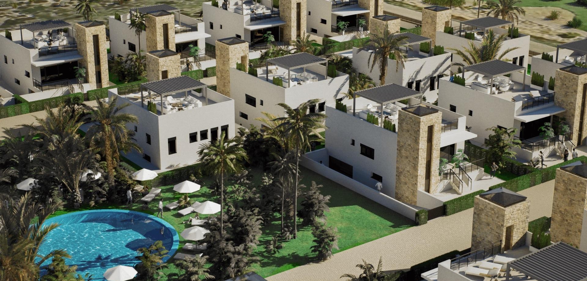 Neubauvillen in Camposol Golf (Mazarrón-Murcia) mit privater Sonnenterrasse und Keller