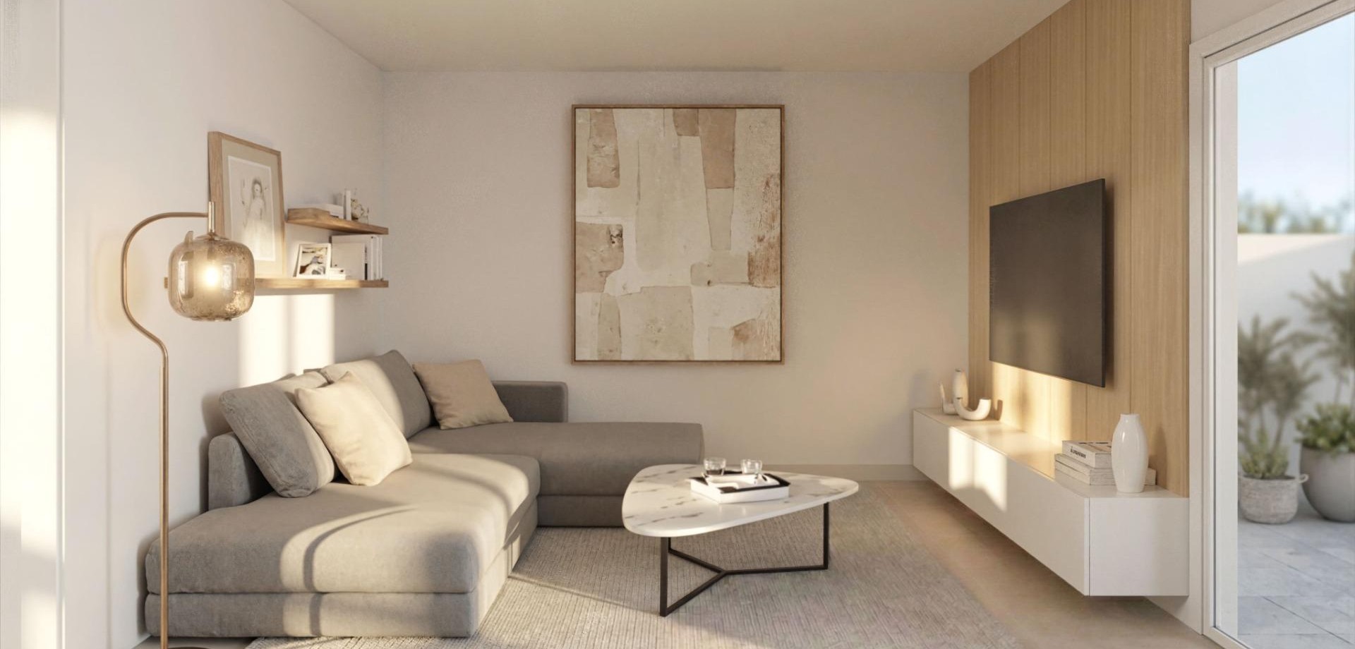 Jede Villa steht auf einem privaten Grundstück ab 300 m² und bietet Außenbereich für Entspannung und Unterhaltung. Die Immobilien verfügen zudem über eine private Sonnenterrasse, die zusätzlichen Wohnraum im Freien mit freiem Blick auf den umliegenden Golfplatz und die Landschaft bietet.