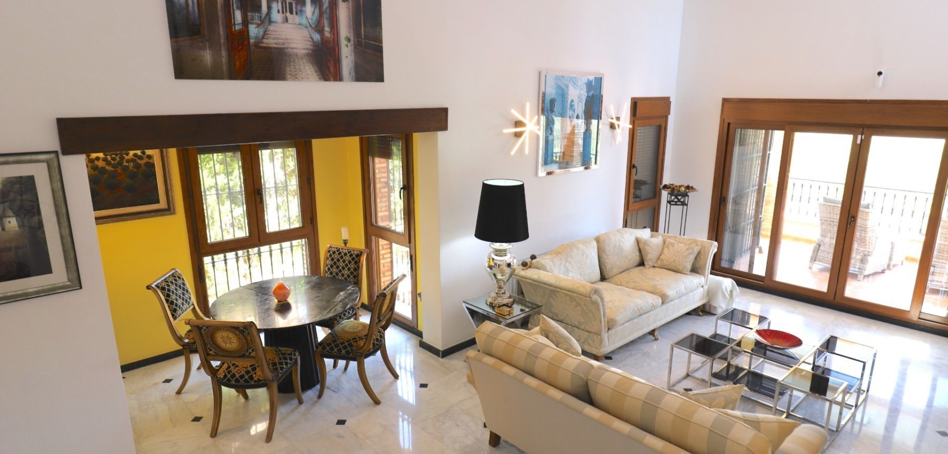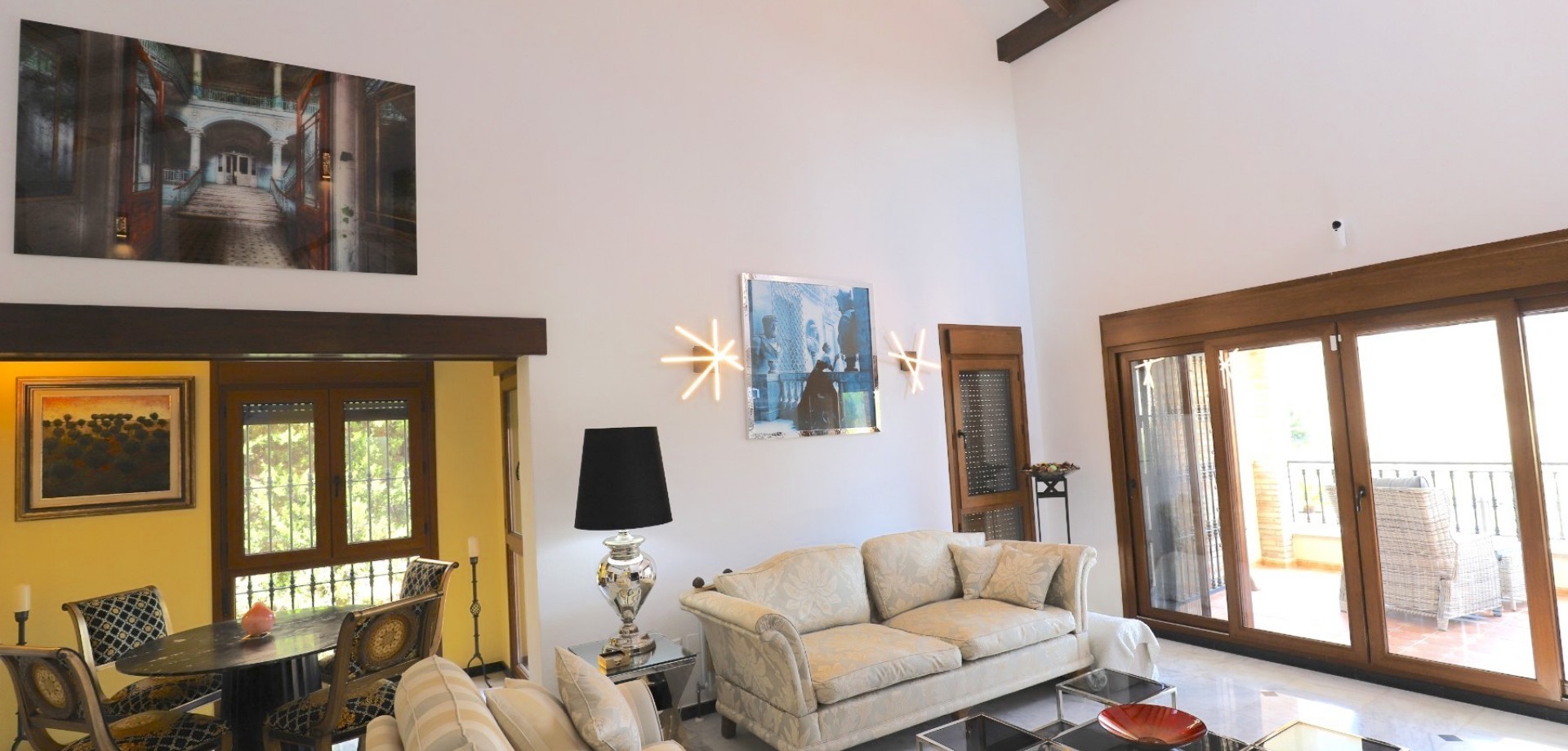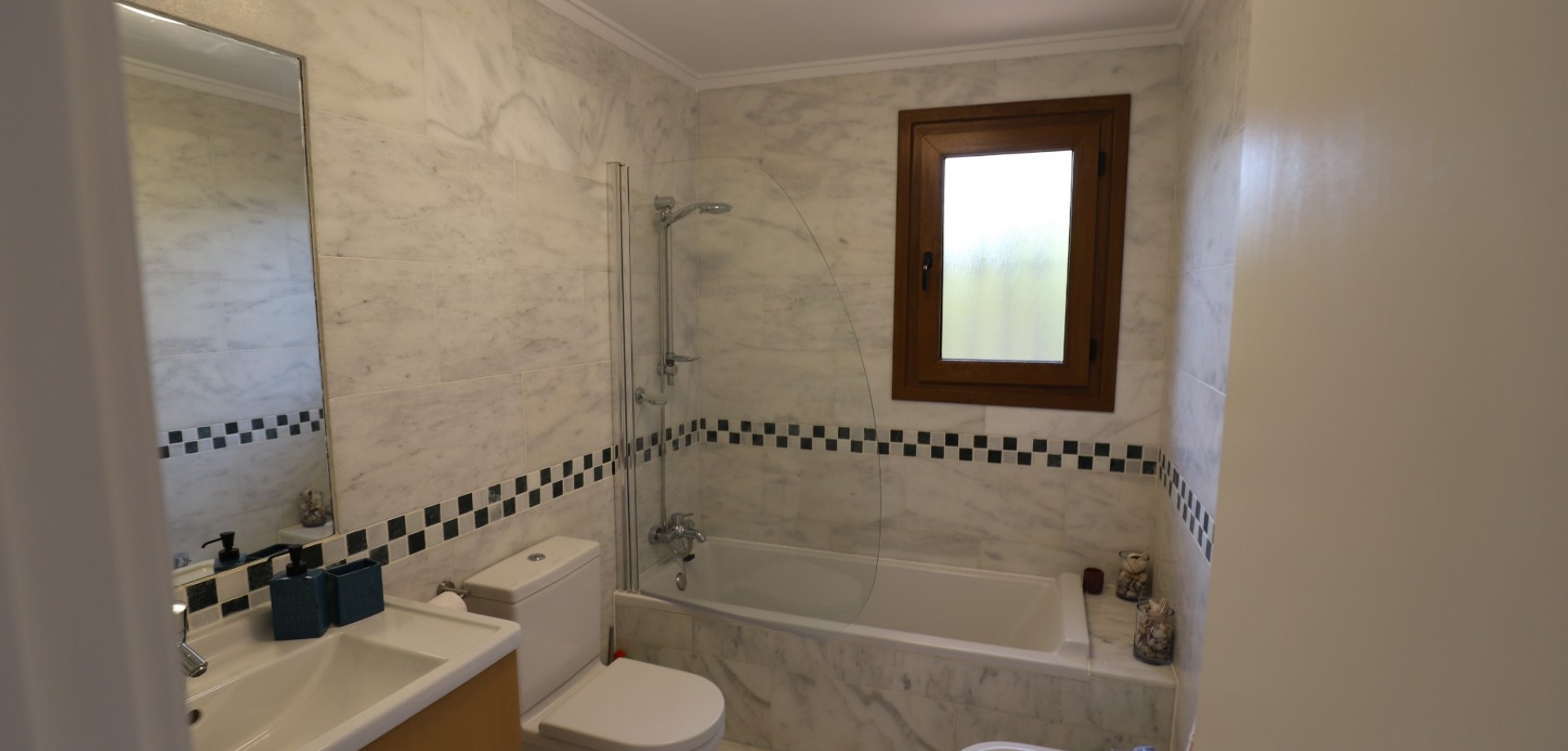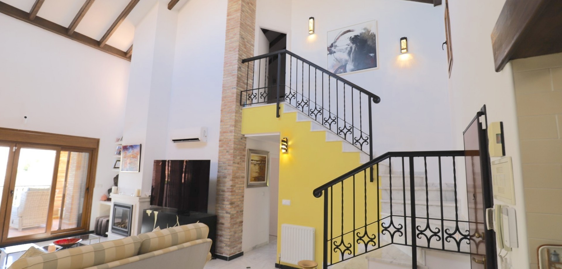 Al entrar en la villa, accederá a un salón/comedor de planta abierta con un llamativo techo abovedado y una chimenea funcional. Unas grandes puertas correderas de cristal conducen a la terraza inferior y a la zona de la piscina privada. La espaciosa cocina totalmente equipada se encuentra junto al salón. Dos amplios dormitorios dobles con armarios empotrados, un moderno cuarto de baño familiar y un práctico armario bajo la escalera. En la primera planta se encuentra el dormitorio principal, acristalado y de estilo francés, con armarios empotrados y un moderno cuarto de baño en-suite. Desde el dormitorio se accede a una terraza privada con vistas panorámicas al campo de golf, a la piscina privada y a la zona de terrazas.
