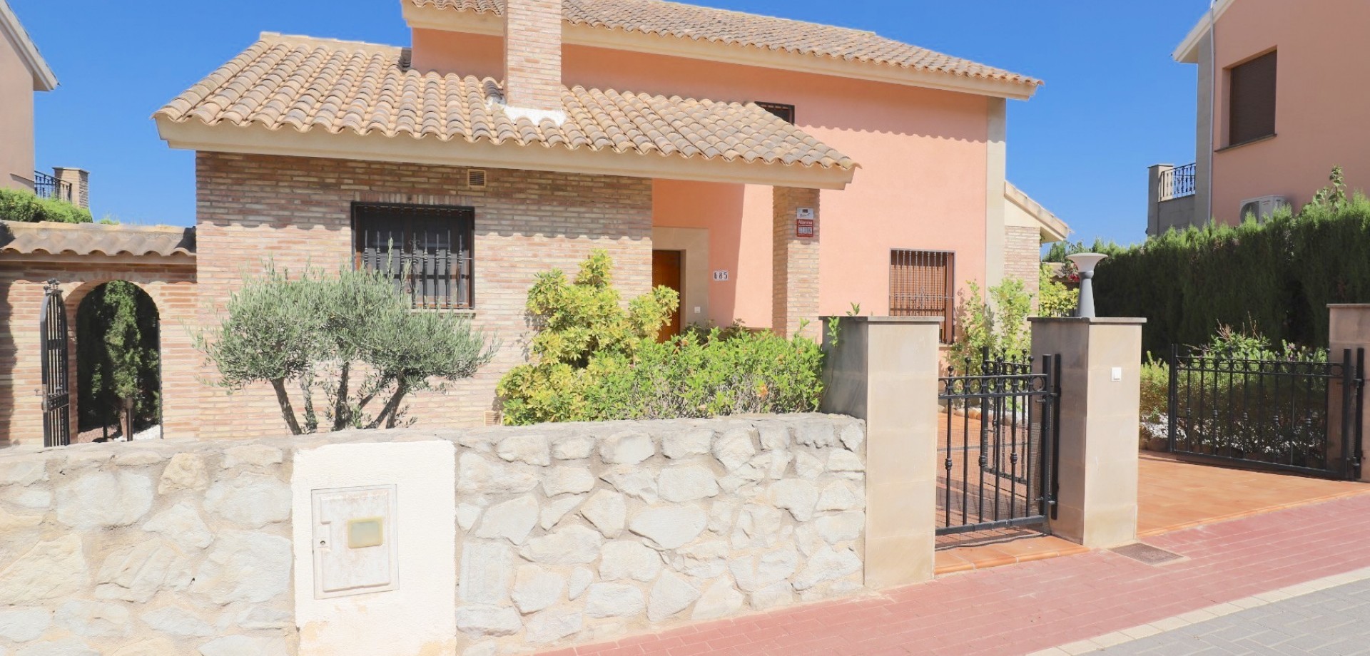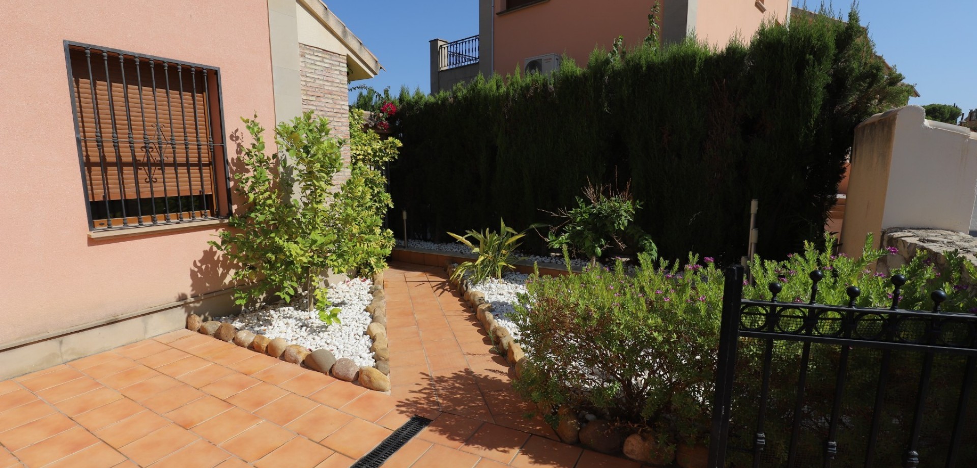 Estamos encantados de presentar esta impresionante villa independiente de estilo Canela en venta. La villa tiene una superficie total de 118 m2 y está situada en una generosa parcela de aproximadamente 418 m2 dentro del renombrado La Finca Golf Resort. Ofrece unas vistas cautivadoras del campo de golf de La Finca, esta propiedad cuenta con impresionantes puestas de sol.