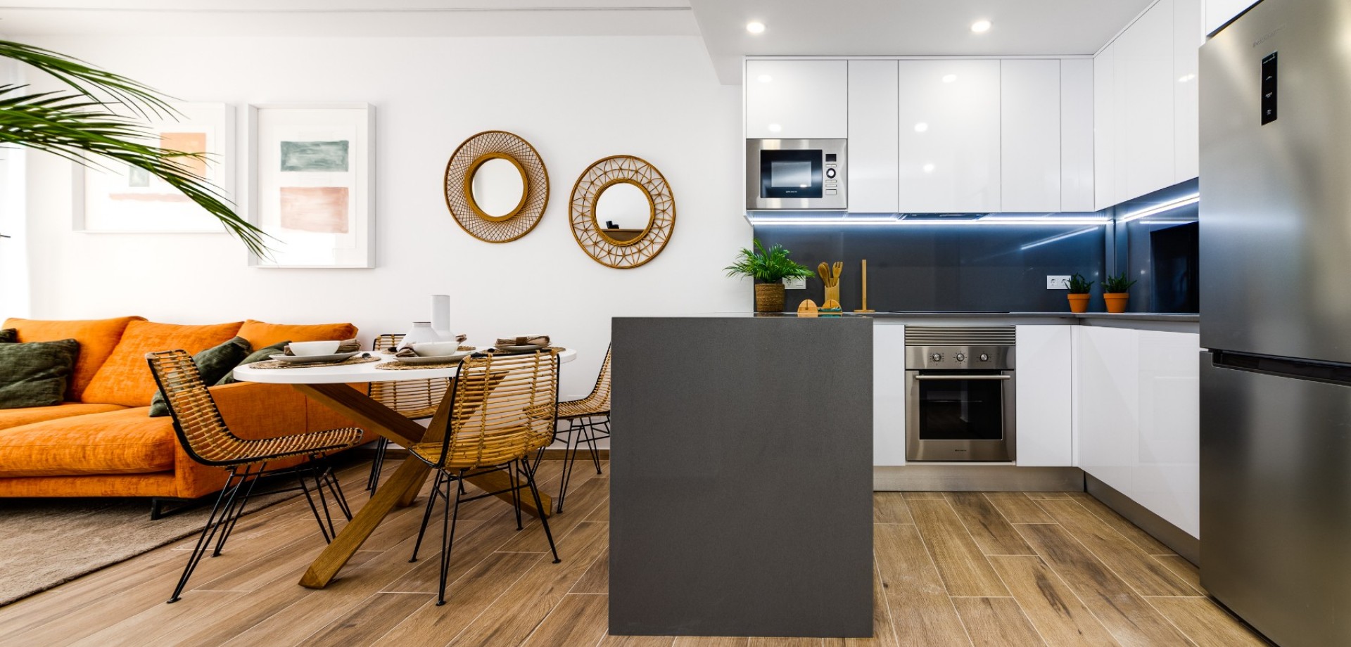 Estos impresionantes y modernos apartamentos de dos dormitorios y dos baños están situados al lado del hermoso Club de Golf Villamartiñ. Consta de un luminoso salón de planta abierta que incorpora una zona de comedor y una cocina. El dormitorio principal tiene su propio baño en suite, y ambos dormitorios tienen acceso a una amplia terraza. Utilizando accesorios de alta gama, estos apartamentos de lujo han sido terminados con la más alta calidad.