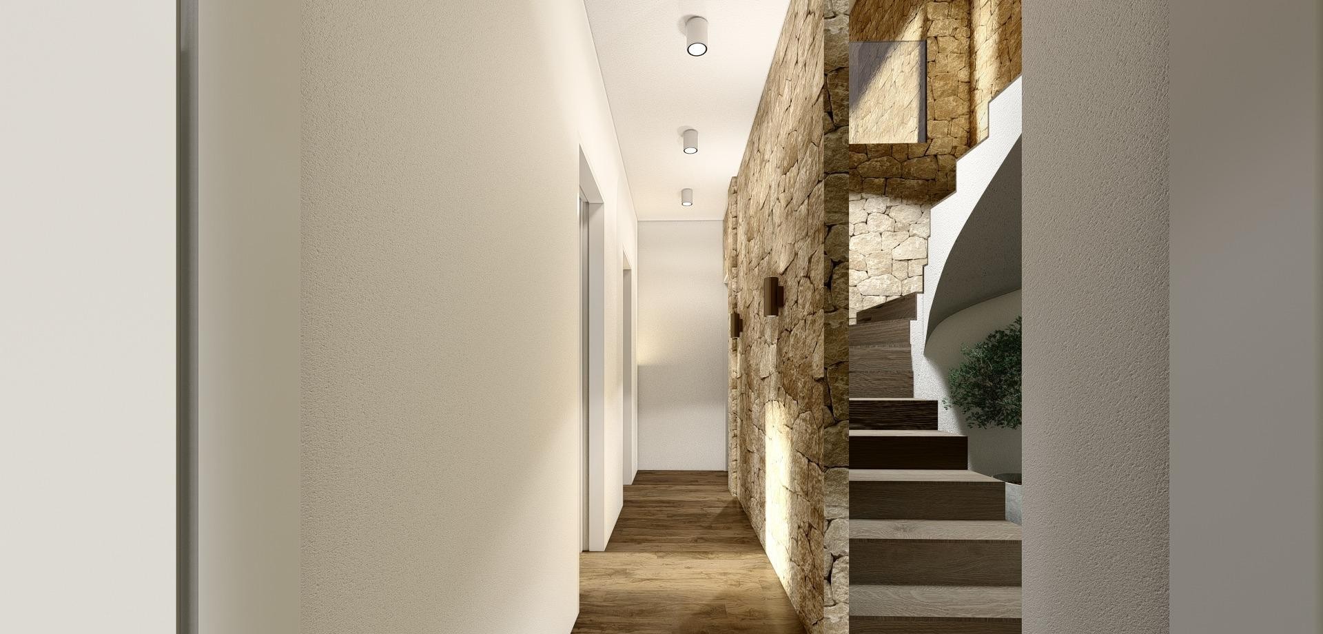 Fachada de piedra natural y enlucido blanco que refleja la estética local