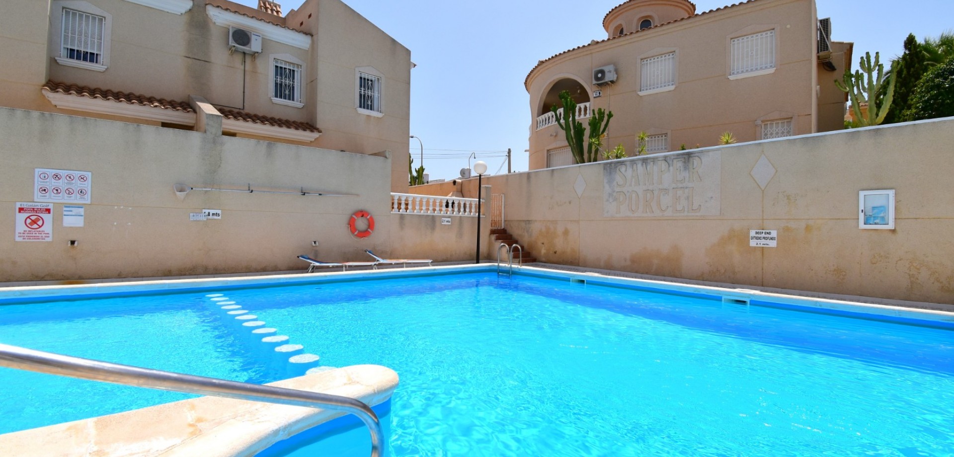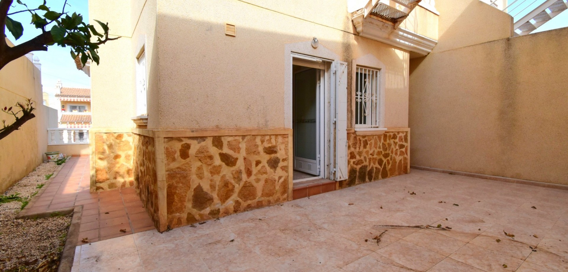 EspañolUna espaciosa villa adosada de tres dormitorios en Blue Lagoon, ubicada a 10 minutos a pie de una variedad de restaurantes y cafeterías, mientras que un supermercado de la principal cadena y un centro comercial también están convenientemente cerca. Para los entusiastas del golf, hay una opción de tres campos de golf de primer nivel a 10 minutos en coche, y el popular centro comercial La Zenia Boulevard y las impresionantes playas están a solo 10 minutos de distancia. Se accede a la villa a través de escaleras que conducen a una terraza de entrada cubierta, que se abre a un luminoso salón / comedor con una encantadora chimenea; la cocina equipada tiene una puerta que da acceso a un patio. También en este nivel, hay un dormitorio doble y un baño con ducha. En el primer piso, hay dos dormitorios dobles más, ambos con sus propias terrazas privadas, junto con un baño familiar. El espacio al aire libre incluye estacionamiento todoterreno de baldosas, un jardín delantero, un patio trasero de baldosas con un borde de guijarros y acceso a una piscina comunitaria bien mantenida. Las características adicionales incluyen ventiladores de techo y armarios empotrados en todos los dormitorios. Situada en una ubicación privilegiada en la Costa Blanca Sur, esta propiedad ofrece una fantástica combinación de comodidad, conveniencia y accesibilidad a servicios, golf y la costa.