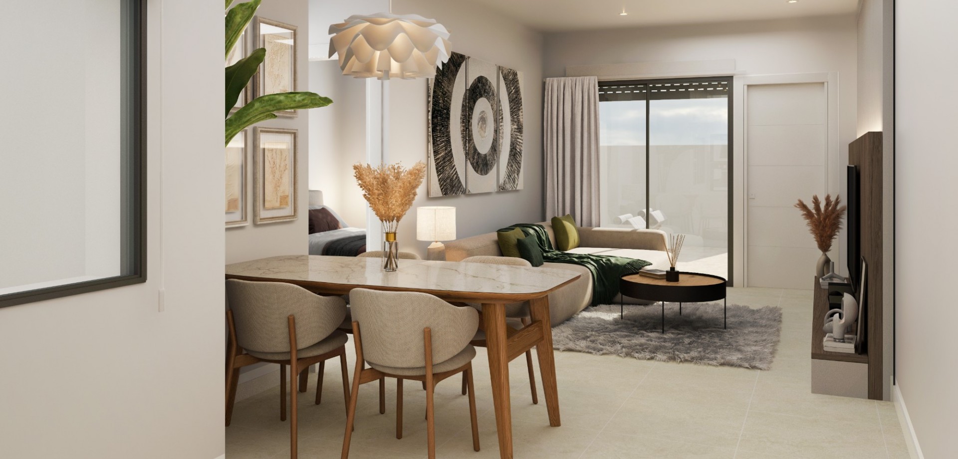 Cada villa cuenta con 3 amplios dormitorios y 2 elegantes baños, además de un luminoso salón-comedor de planta abierta que se integra a la perfección con una moderna cocina totalmente equipada, creando una fluidez natural entre los espacios interiores y exteriores. Grandes ventanales llenan la casa de luz natural, realzando la sensación de amplitud y confort.