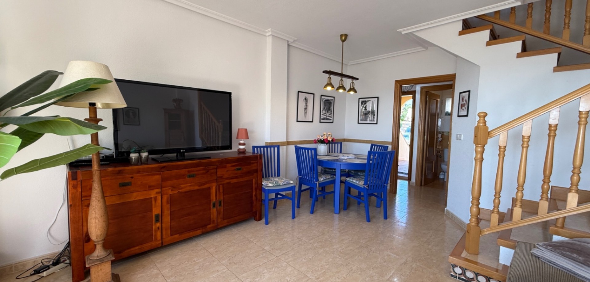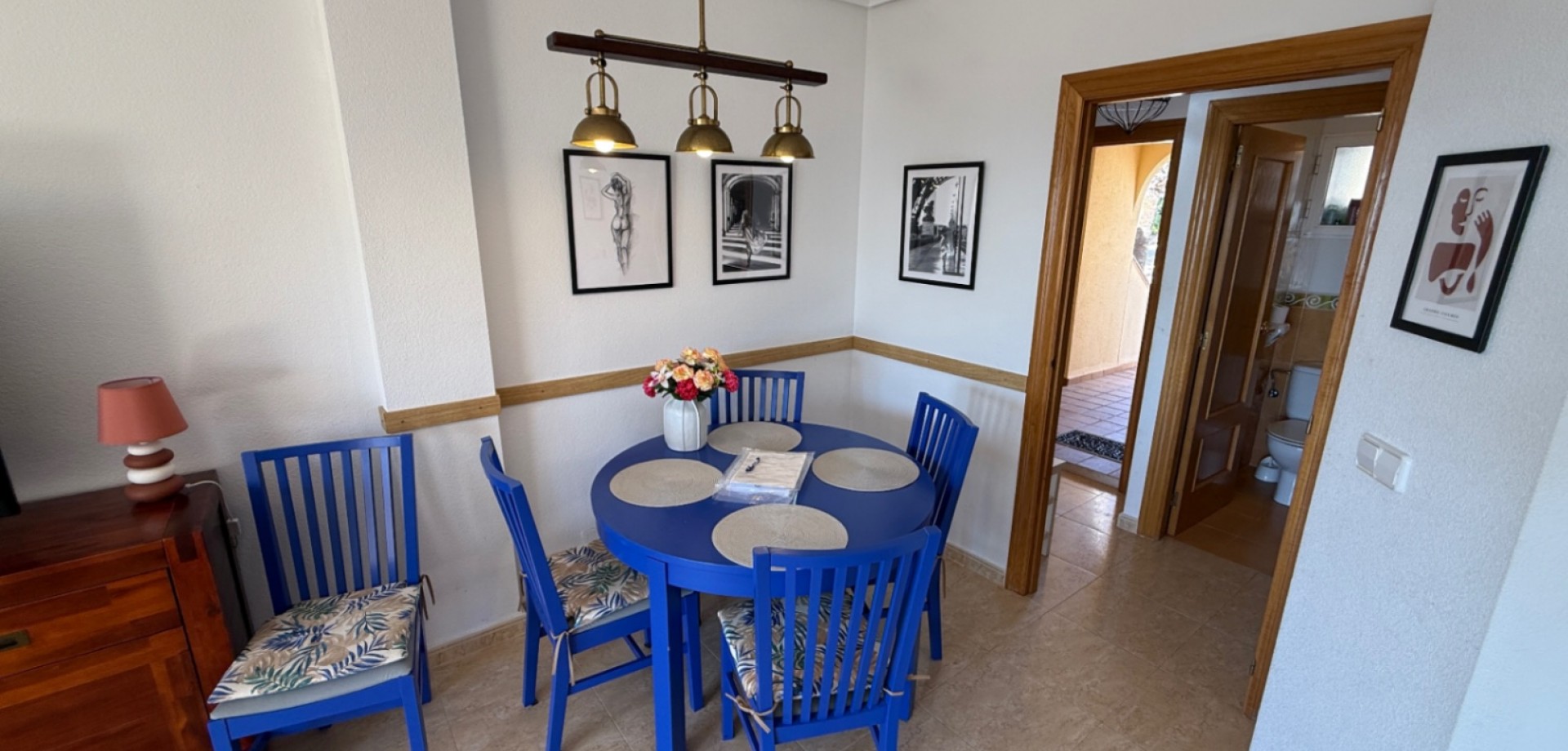 Hermosa casa de 3 dormitorios en una ubicación privilegiada en Cabo Roig Ubicada en la codiciada zona de Cabo Roig, esta impresionante propiedad ofrece la combinación perfecta de confort, estilo y vida costera. Con 3 amplios dormitorios y 2 baños, la casa es ideal para familias, escapadas de vacaciones o como una oportunidad de inversión lucrativa. La propiedad cuenta con un garaje cubierto, lo que garantiza comodidad y seguridad, así como acceso a una piscina comunitaria bellamente cuidada. Tanto desde el área de la piscina como desde el balcón privado, puedes disfrutar de impresionantes vistas al mar, creando el escenario perfecto para relajarse y entretener. Con su inmejorable ubicación, a pocos pasos de playas doradas, restaurantes vibrantes, tiendas y todas las comodidades locales, esta casa es una verdadera joya en la costa de Orihuela. Ya sea como residencia permanente o como refugio vacacional, esta propiedad en Cabo Roig promete un estilo de vida envidiable junto al mar.