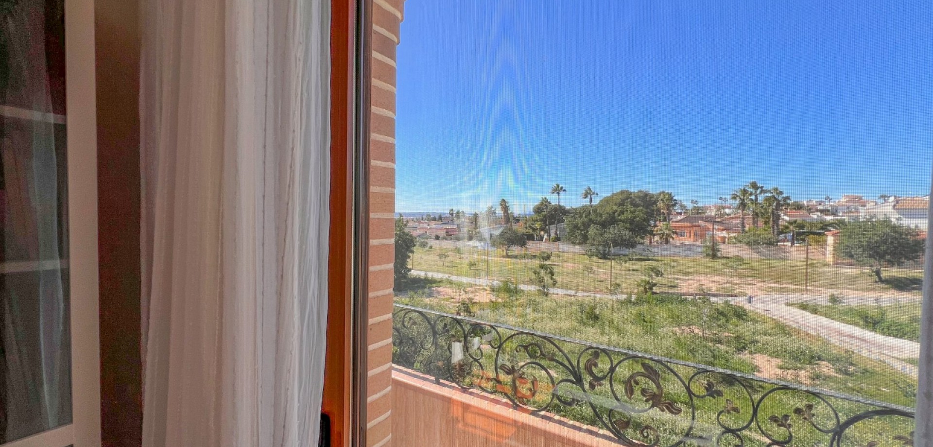 Dormitorio principal con balcón y vistas al parque y al lago Rosa