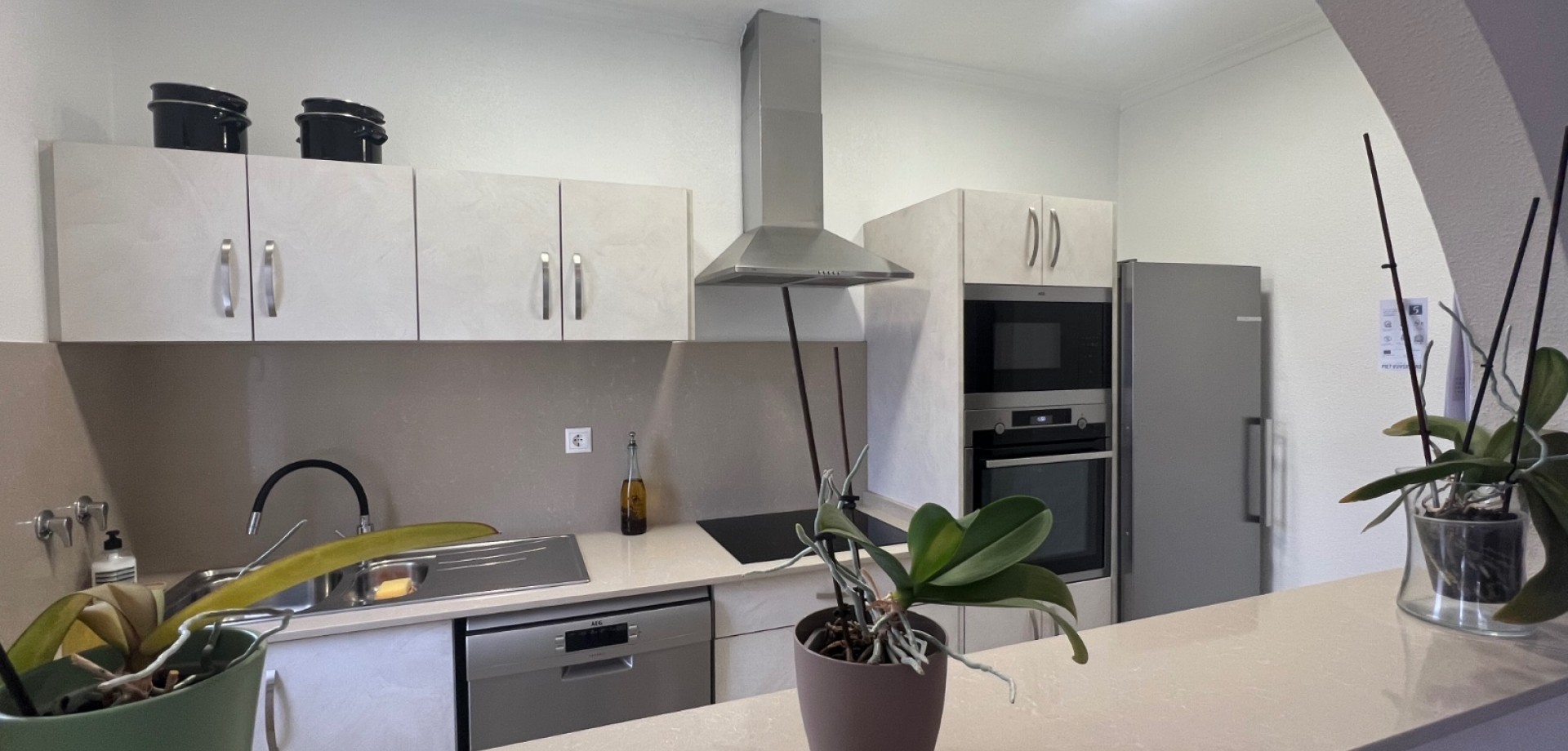 La propiedad ha sido completamente renovada y ofrece una distribución moderna y funcional. La cocina americana se integra a la perfección con el salón, creando un espacio luminoso y acogedor, ideal para el día a día.
