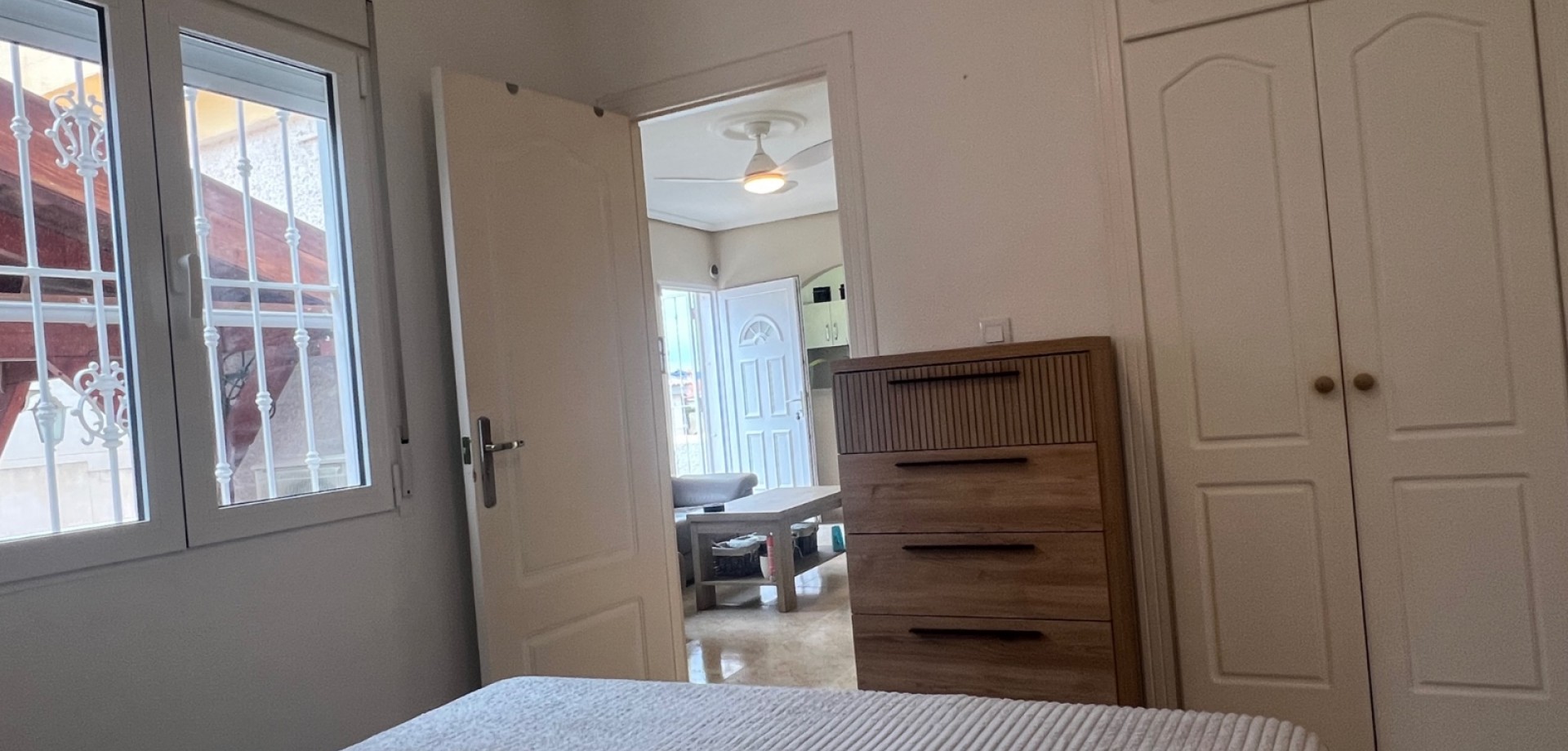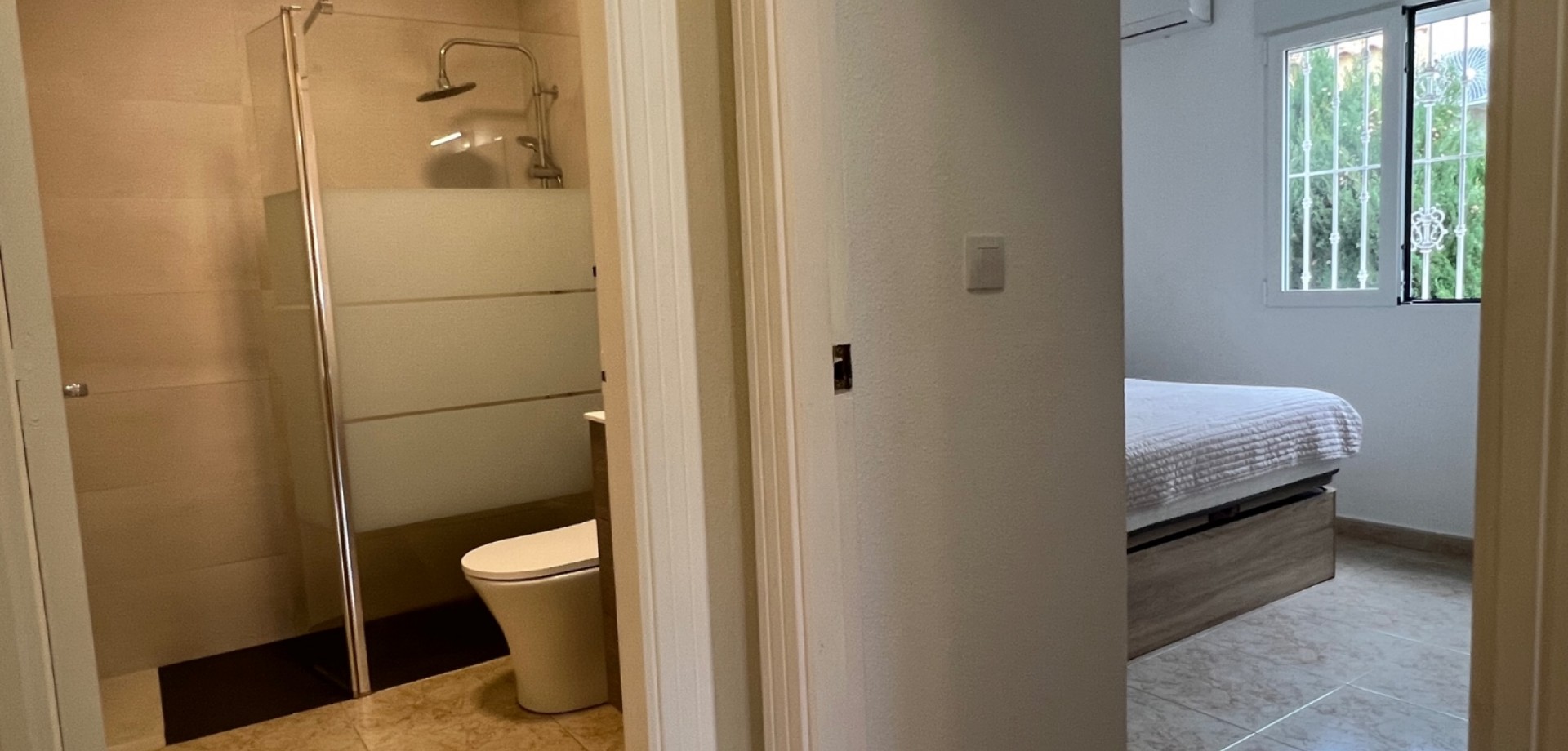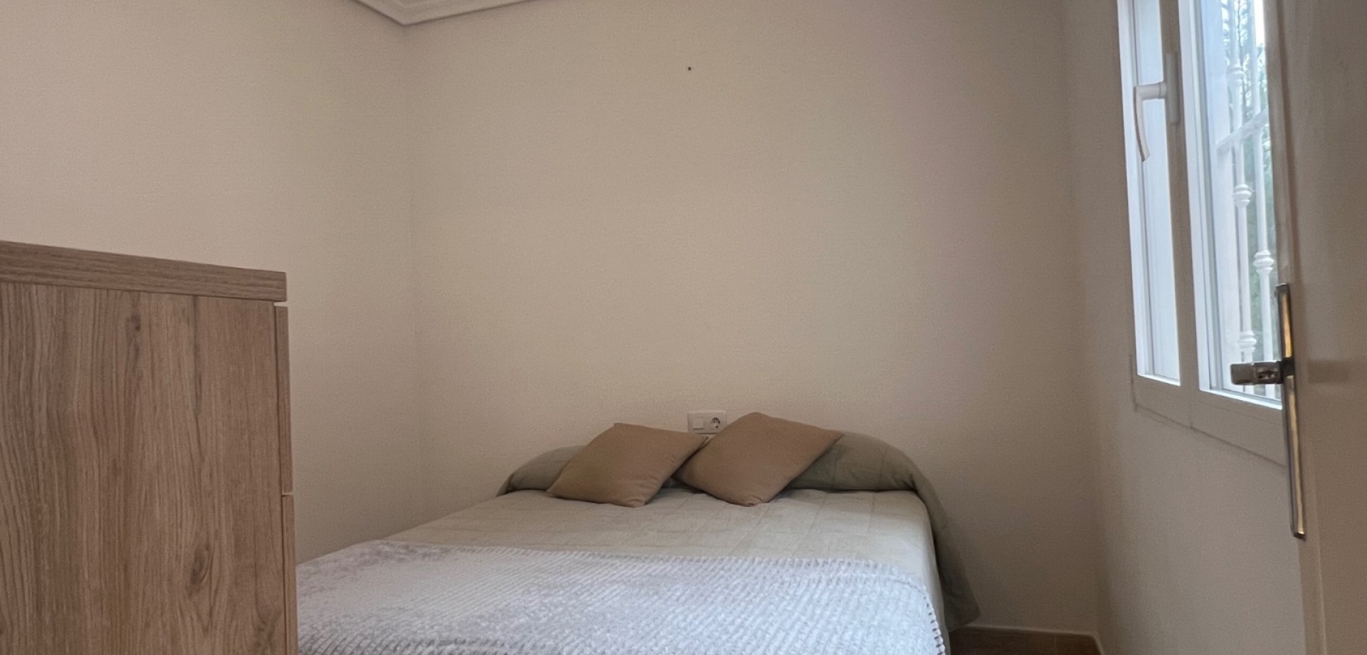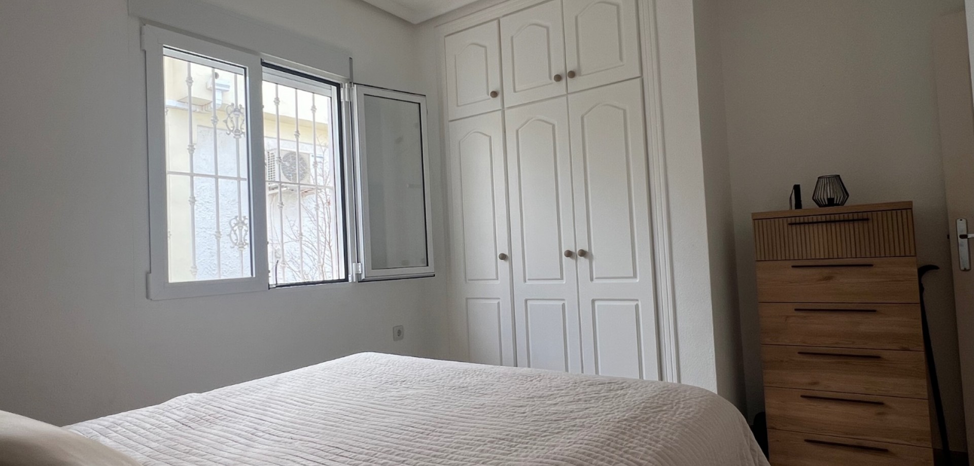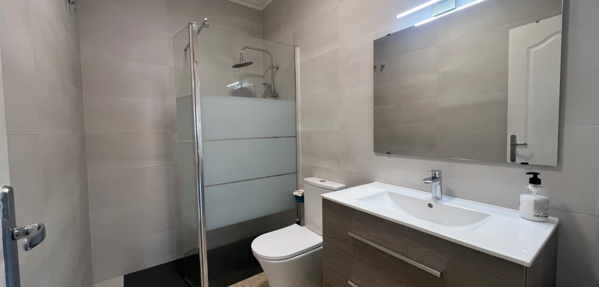 El baño ha sido completamente renovado y cuenta con una ducha moderna a ras de suelo. Ambos dormitorios incluyen armarios empotrados, lo que proporciona un práctico espacio de almacenamiento.
