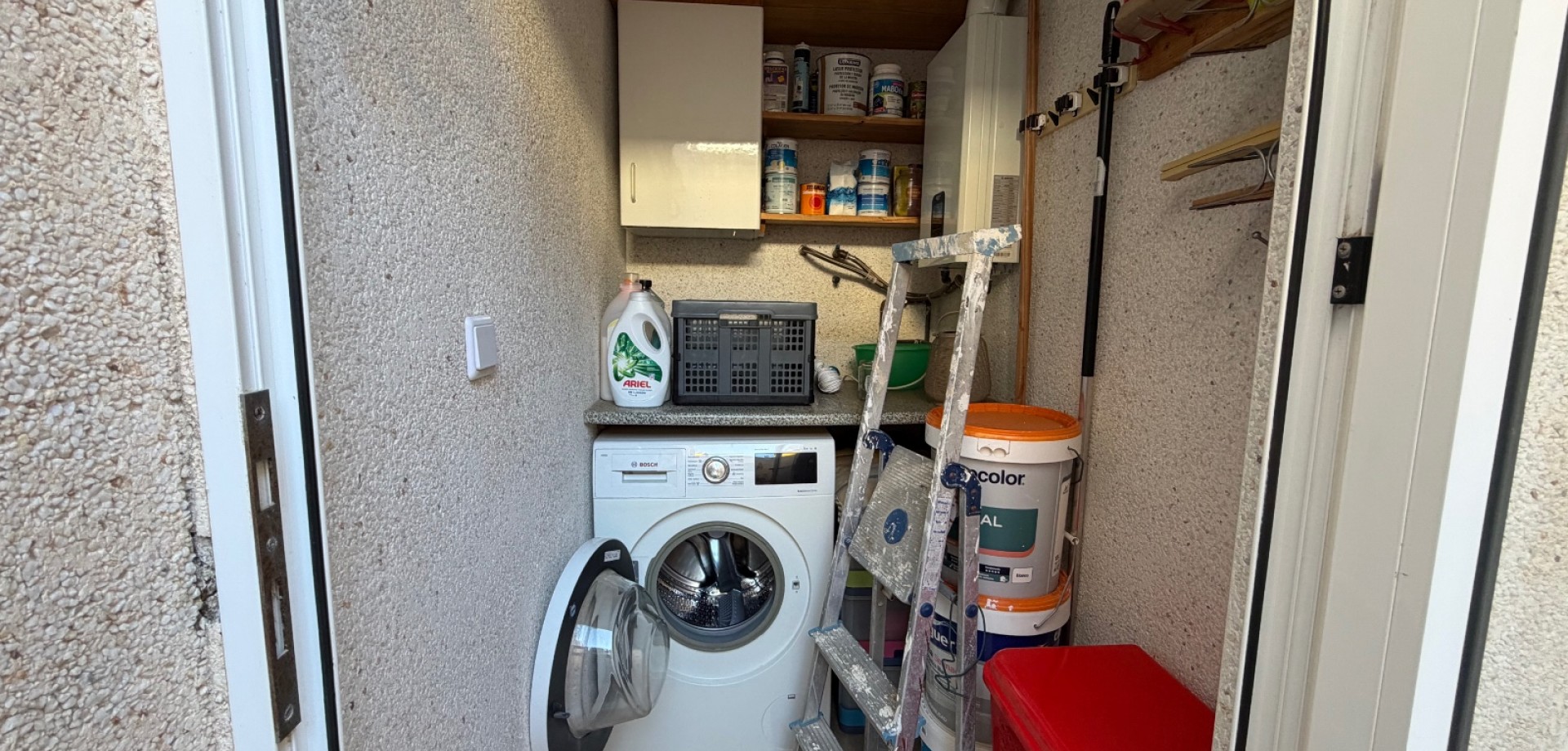 Un patio cerrado con lavadero en la entrada aporta funcionalidad adicional en comparación con otras propiedades de la misma comunidad.