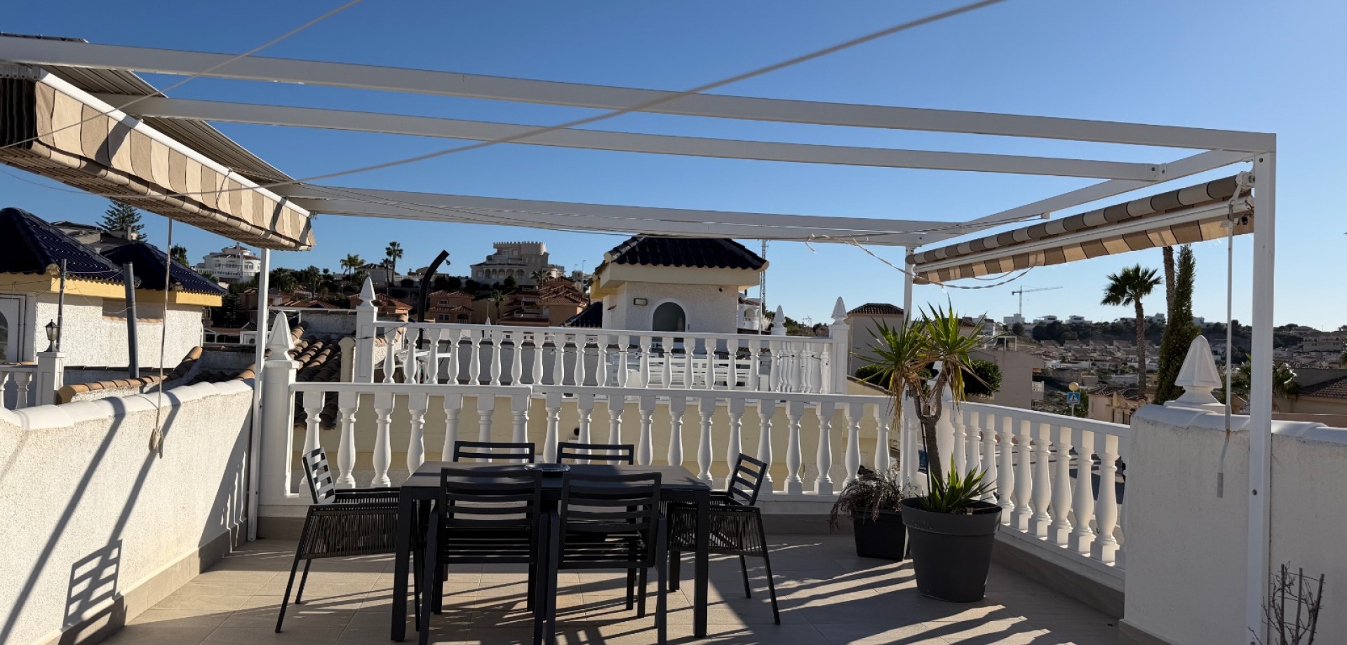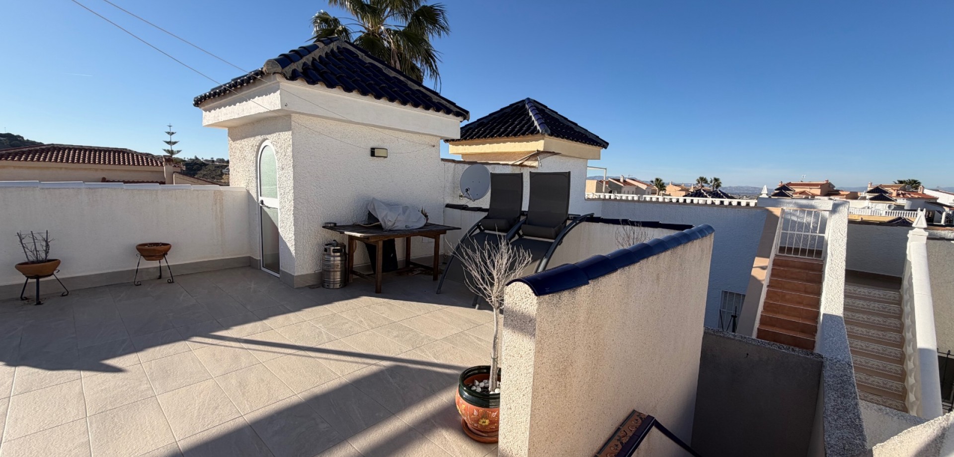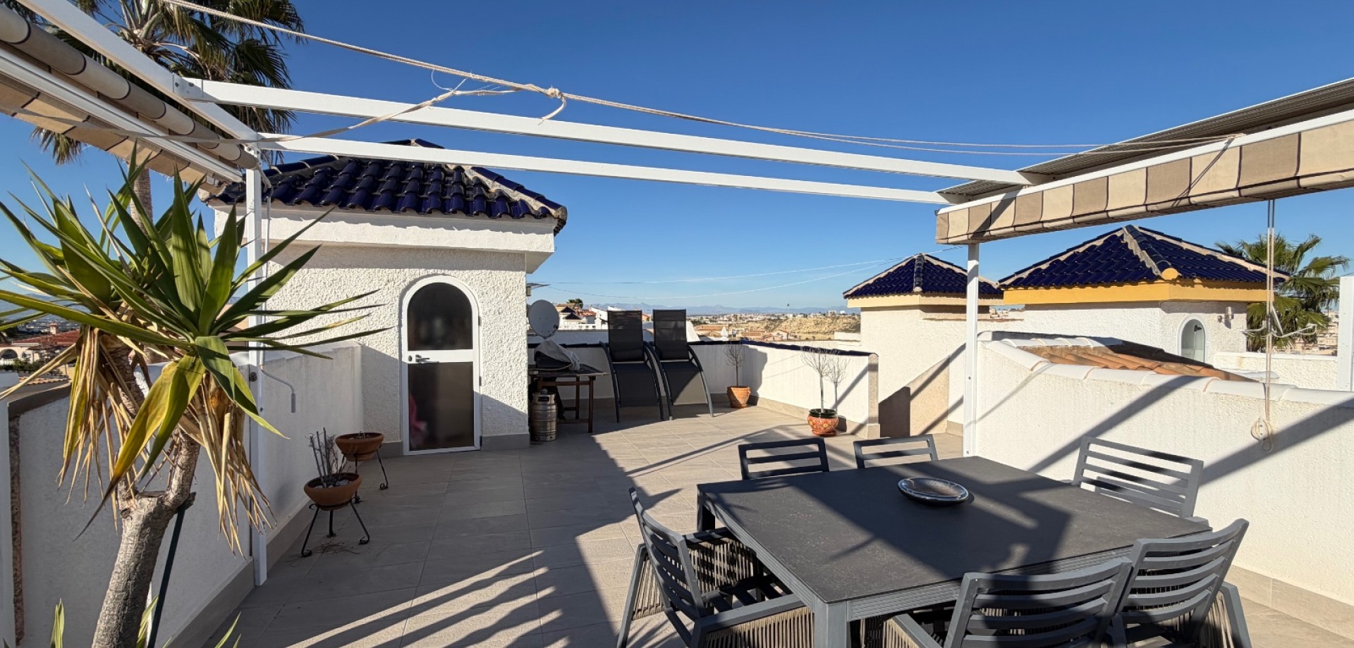 La característica más destacada de esta villa es el solárium privado en la azotea de aproximadamente 50 m², el más grande de la comunidad.