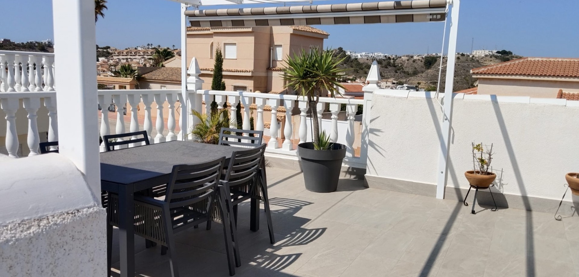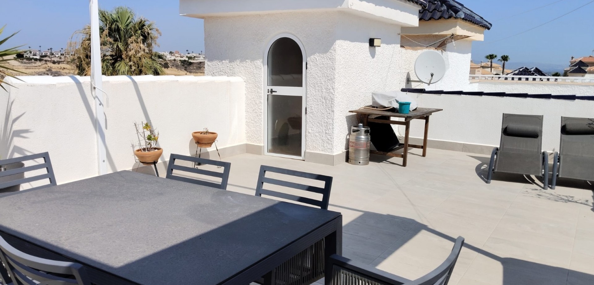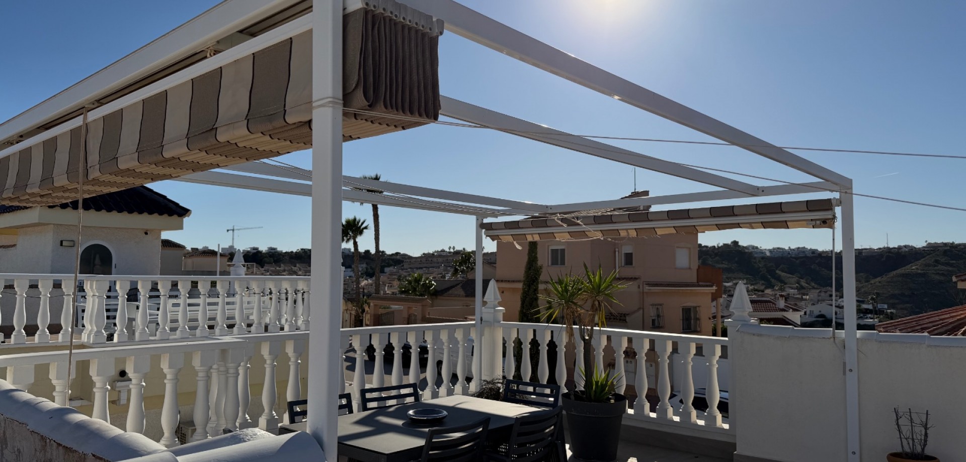 La característica más destacada de esta villa es el solárium privado en la azotea de aproximadamente 50 m², el más grande de la comunidad.