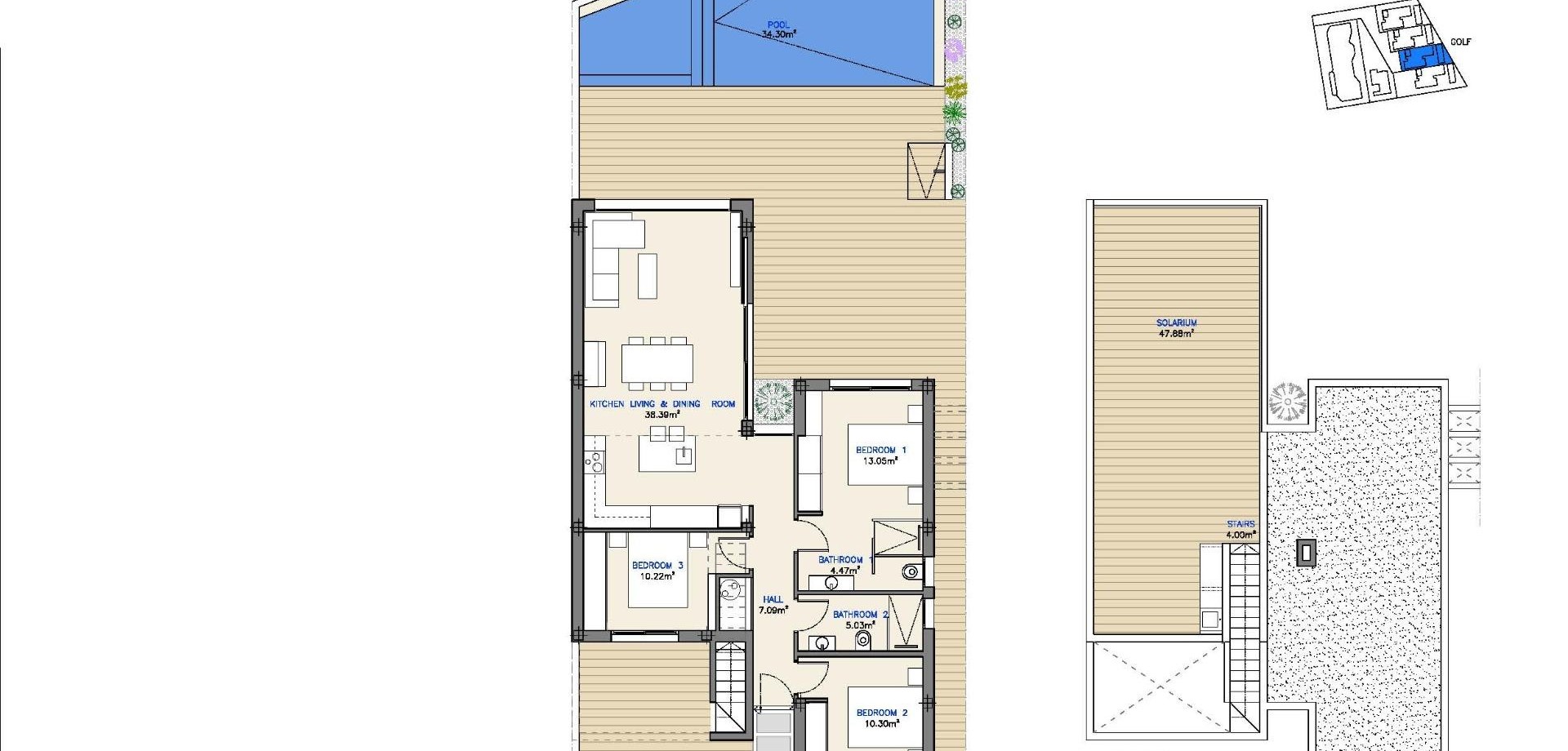 Villas de nueva construcción en primera línea de golf en Los Alcázares, Costa Cálida Vida exclusiva cerca de la playa y el golf Esta nueva promoción residencial en Los Alcázares ofrece una oportunidad única para disfrutar de un estilo de vida moderno en una de las zonas más deseadas de la Costa Cálida. Situada a solo 1,2 km de la playa y directamente en primera línea del prestigioso campo de golf La Serena, la promoción combina la vida costera con la tranquilidad de un complejo de golf. El encantador centro de Los Alcázares se encuentra a poca distancia, lo que permite acceder fácilmente a tiendas, restaurantes, cafeterías y servicios esenciales. Ubicación privilegiada con excelentes conexiones Los Alcázares es un lugar ideal para aquellos que buscan invertir en una nueva propiedad junto al Mediterráneo. La zona se encuentra a solo 25 minutos del aeropuerto de Murcia y a unos 55 minutos del aeropuerto de Alicante. Gracias a las excelentes conexiones por autopista, los residentes pueden llegar rápidamente a ciudades cercanas como Cartagena (20 km), Murcia (40 km) y Alicante (80 km), así como a otras hermosas playas a lo largo de la Costa Cálida y la Costa Blanca. Apartamentos y villas diseñados para el confort La promoción incluye 13 apartamentos contemporáneos de 2, 3 o 4 dormitorios y 4 exclusivas villas de una sola planta con 3 dormitorios en primera línea de golf. Cada propiedad combina un diseño moderno con acabados de alta calidad y distribuciones funcionales. Las villas ofrecen parcelas privadas con jardines y piscinas, y la opción de un solárium privado para un toque extra de lujo. Todas las viviendas disfrutan de impresionantes vistas al campo de golf y al Mar Menor. Características de alta calidad Todas las viviendas han sido diseñadas pensando en el estilo y la comodidad. Las características principales incluyen: Baños totalmente equipados con muebles y mamparas de ducha Preinstalación de aire acondicionado por conductos Persianas motorizadas en los dormitorios Piscina privada Aparcamiento en la parcela Golf y estilo de vida costero Situada en el campo de golf La Serena, famoso por su exuberante paisaje y sus obstáculos de agua en 16 de sus 18 hoyos, esta urbanización es un paraíso para los amantes del golf. Al mismo tiempo, los residentes pueden disfrutar de acceso peatonal directo al centro de Los Alcázares y a las cálidas aguas del Mar Menor, la laguna salada más grande de Europa. Con sus olas tranquilas, arena fina y condiciones ideales para navegar, nadar y practicar deportes acuáticos, la zona es perfecta tanto para relajarse como para vivir aventuras. Su hogar mediterráneo le espera Tanto si es un entusiasta del golf, un amante de los deportes acuáticos o simplemente busca un refugio tranquilo en la costa, estas villas de nueva construcción en Los Alcázares ofrecen el equilibrio perfecto entre lujo, naturaleza y estilo de vida. Póngase en contacto con nosotros hoy mismo para concertar una visita y asegurarse su nueva casa en la Costa Cálida.