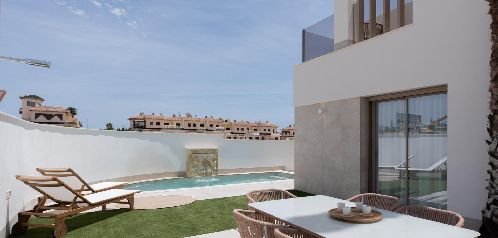 Villas de nueva construcción con piscina privada en Serena Golf-Los Alcázares Colección boutique de viviendas modernas cerca del mar Descubra una exclusiva promoción boutique de 37 modernas villas adosadas y pareadas situadas en La Serena Golf, en Los Alcázares, en la hermosa Costa Cálida. Estas viviendas contemporáneas están diseñadas para compradores que buscan privacidad, sol y un estilo de vida al aire libre a solo 300 metros de las cálidas aguas del Mar Menor. Los Alcázares es una encantadora localidad costera conocida por su largo paseo marítimo, sus playas de arena y su relajado ambiente mediterráneo. La zona disfruta de más de 300 días de sol al año y ofrece excelentes restaurantes, tiendas, puertos deportivos e instalaciones deportivas. Su ubicación entre el mar y el campo de golf la convierte en uno de los destinos más deseados de la región, tanto para vivir como para pasar las vacaciones. Villas modernas con piscina privada y vida al aire libre Cada propiedad cuenta con una parcela privada con su propia piscina, lo que crea el entorno perfecto para disfrutar del clima mediterráneo durante todo el año. Las viviendas incluyen 3 dormitorios y 2 o 3 baños, además de aseos para invitados, lo que ofrece espacios cómodos y funcionales, ideales para familias o invitados. Las villas están diseñadas para enfatizar la vida al aire libre. Junto a la piscina hay una zona de barbacoa y un aseo exterior para invitados, perfecto para recibir a amigos y familiares. El solárium de la azotea ofrece un espacio adicional para relajarse al sol e incluye una ducha solar con preinstalación para un jacuzzi y una cocina de verano. El aparcamiento está incluido tanto dentro de la parcela privada como con una plaza de aparcamiento subterráneo asignada. Acabados de alta calidad y características modernas Las viviendas están construidas con materiales modernos y especificaciones de calidad diseñadas para ofrecer comodidad y estilo. Cocina totalmente equipada con electrodomésticos en acabado de cristal blanco Baños con espejos retroiluminados, mamparas de ducha y tocadores Persianas motorizadas Paquete básico de iluminación Aire acondicionado por conductos totalmente instalado Estas características garantizan una experiencia de vida cómoda, tanto si la propiedad se utiliza como residencia principal como si se utiliza como casa de vacaciones. Servicios estilo resort y excelente ubicación Los propietarios también disfrutan de acceso a instalaciones compartidas estilo resort con una urbanización vecina. Estas instalaciones incluyen jardines paisajísticos, una piscina comunitaria estilo laguna, zona de spa, gimnasio y sauna. La ubicación ofrece fácil acceso a playas, campos de golf y ciudades cercanas. Playa del Mar Menor a 0,3 km Campo de golf La Serena junto a la urbanización Centro de Los Alcázares a 2 km Cartagena a 22 km Murcia a 40 km Aeropuerto Internacional de la Región de Murcia a 30 km Aeropuerto de Alicante-Elche a 90 km Las aguas poco profundas del Mar Menor son perfectas para nadar, navegar, practicar paddle surf y otros deportes acuáticos durante todo el año. Asegúrese un estilo de vida mediterráneo en Los Alcázares Estas villas de nueva construcción ofrecen la combinación perfecta de playa, golf y comodidad moderna en la Costa Cálida. Póngase en contacto con nosotros hoy mismo para recibir más información o concertar una visita y asegurarse su nueva vivienda en Serena Golf, en Los Alcázares.