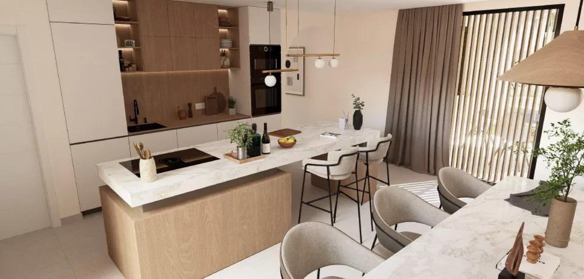 Villas contemporáneas de una sola planta en Altaona Golf Resort Murcia Ubicación privilegiada en un complejo de golf cerca de la ciudad de Murcia Descubra esta exclusiva colección de villas independientes de nueva construcción situadas en el prestigioso complejo Altaona Golf Resort en Murcia. Ubicada en un entorno seguro y tranquilo, rodeada de naturaleza y de un campo de golf de 18 hoyos, esta comunidad residencial ofrece el equilibrio perfecto entre tranquilidad y accesibilidad. Altaona Golf se encuentra a solo 15 km del centro de Murcia, donde encontrará centros comerciales, restaurantes, colegios y servicios médicos, mientras que las playas de la Costa Cálida están a solo 20 km. El aeropuerto de Murcia-Corvera está convenientemente situado a 15 km del complejo, lo que lo convierte en un lugar ideal tanto para vivir de forma permanente como para pasar las vacaciones. Diseño moderno de una sola planta con jardín y piscina privados Estas elegantes villas están diseñadas en una sola planta para ofrecer el máximo confort y funcionalidad. Los compradores pueden elegir entre 2, 3 o 4 dormitorios y 2 o 3 baños, además de un aseo para invitados. Cada vivienda cuenta con una cocina y una sala de estar diáfanas que conectan a la perfección con la terraza exterior y el jardín privado con piscina. La parcela incluye una plaza de aparcamiento privada, lo que garantiza la comodidad y la privacidad. Viviendas energéticamente eficientes con características de alta calidad Todas las villas cuentan con un certificado energético de clase A, lo que garantiza una excelente eficiencia energética y bajos costes de funcionamiento. Las propiedades incluyen aire acondicionado por conductos con bomba de calor en toda la casa, excepto en los baños, y calefacción eléctrica por suelo radiante en el salón y los baños con termostatos independientes por zonas. Un sistema de ventilación mecánica renueva el aire de las cocinas, los baños, el lavadero y el aseo de invitados, mejorando el confort interior. La cocina está equipada con campana extractora y placa de inducción eléctrica. La iluminación LED está incluida en el salón, el pasillo y las zonas exteriores, mientras que el resto de habitaciones están preparadas para que el propietario personalice la iluminación. Los dormitorios están equipados con puntos de carga USB para mayor comodidad. Tecnología domótica y comunidad segura Cada villa incluye un sistema de videoportero, domótica con dos interruptores inteligentes y acceso motorizado para vehículos a la comunidad cerrada. El jardín privado se entrega ajardinado con un sistema de riego por goteo y una atractiva piscina privada, ideal para disfrutar del clima mediterráneo durante todo el año. Distancias a puntos de interés clave Campo de golf Altaona 0,1 km Centro de la ciudad de Murcia 15 km Playas de Los Alcázares y Mar Menor 20 km Aeropuerto de Murcia Corvera 15 km Centros comerciales y servicios 10 km Hacienda Riquelme Golf Resort 12 km Su nuevo estilo de vida en Altaona Golf le espera Disfrute del golf, la naturaleza, la seguridad y el confort moderno en uno de los complejos turísticos más atractivos de la región de Murcia. Póngase en contacto con nosotros hoy mismo para recibir más información o concertar una visita a estas hermosas villas de nueva construcción.