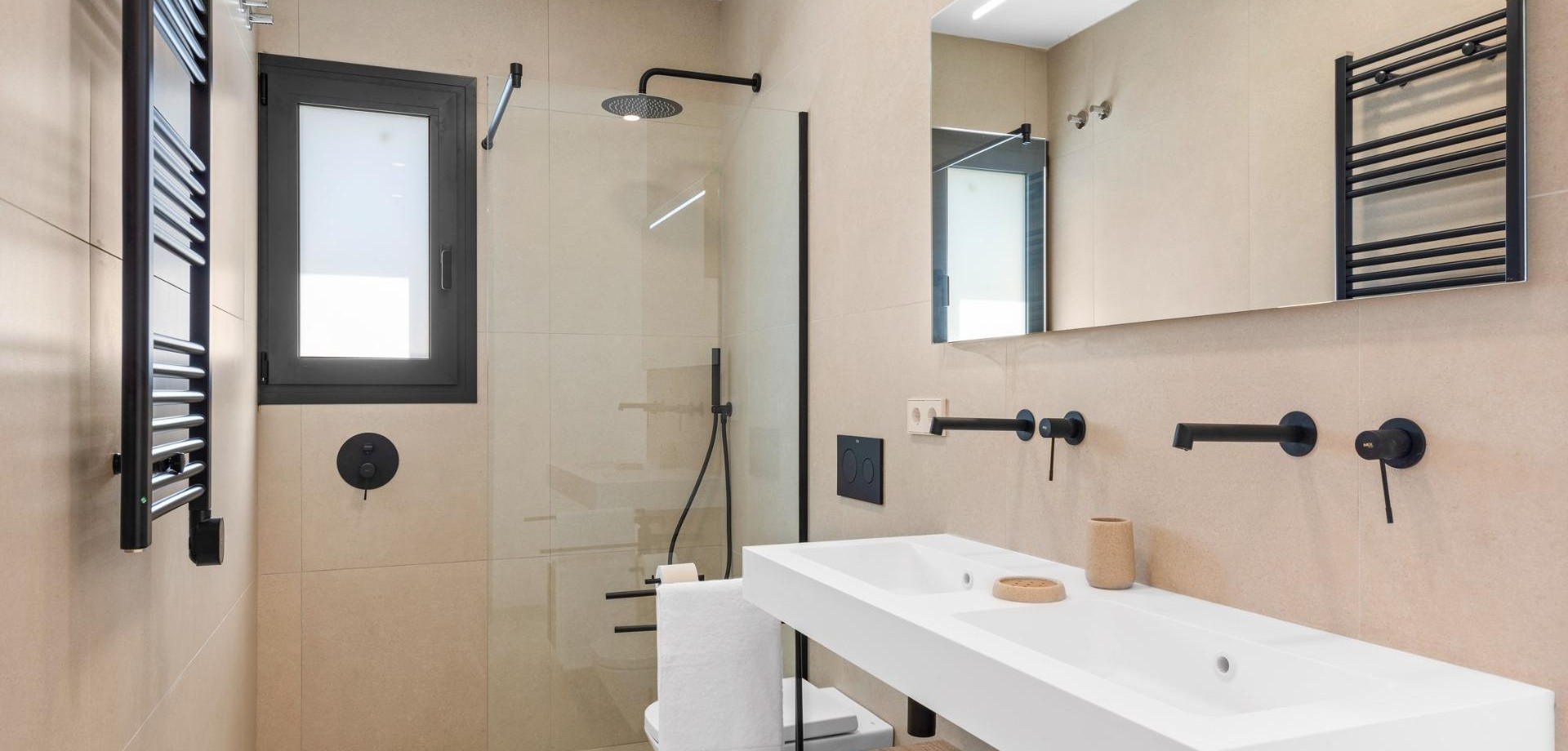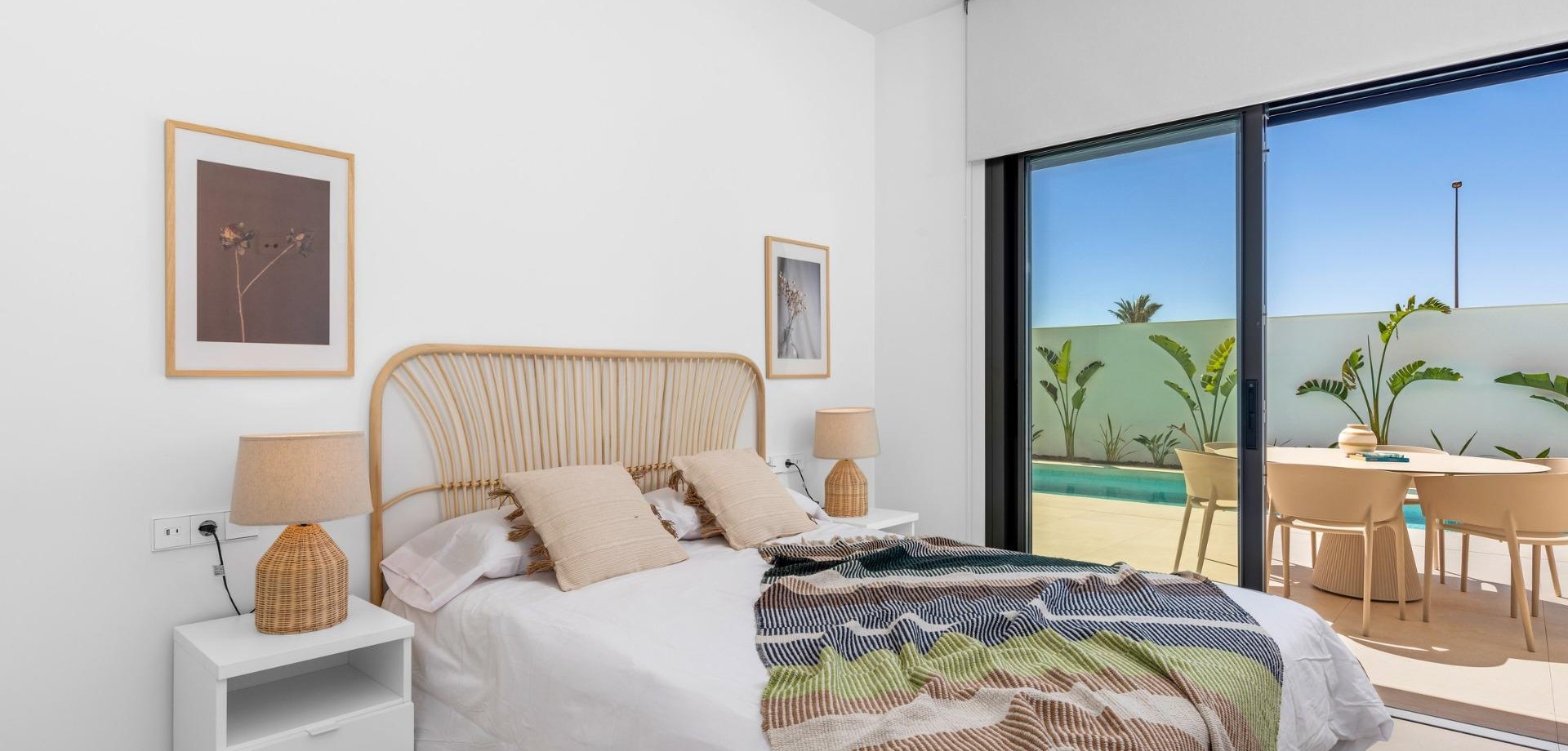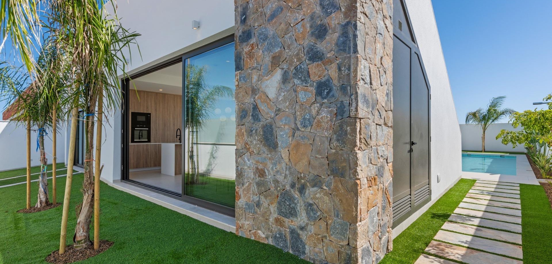 Villas de nueva construcción cerca de Serena Golf en Los Alcázares Villas modernas en una ubicación privilegiada junto a la costa y al campo de golf Este exclusivo proyecto residencial de nueva construcción ofrece villas modernas situadas en Los Alcázares, a poca distancia del prestigioso Serena Golf y a solo 1,2 km de las playas de arena del Mar Menor. Situadas en una de las zonas más atractivas de la Región de Murcia, estas viviendas combinan un diseño contemporáneo, comodidad y una excelente ubicación cerca del mar, del golf y de todos los servicios diarios. Los Alcázares es una localidad costera bien establecida, conocida por su estilo de vida relajado, su largo paseo marítimo, los deportes acuáticos y su clima templado durante todo el año. Diseño de una sola planta con espacios exteriores privados La promoción cuenta con elegantes villas de 3 dormitorios y 2 baños, disponibles en dos tamaños diferentes, de aproximadamente 106 m² y 130 m². El modelo más grande también incluye un aseo adicional para invitados. Todas las villas están diseñadas en una sola planta, lo que ofrece una vida práctica y cómoda. La cocina, el comedor y la sala de estar de planta abierta conectan directamente con una terraza y un jardín privado con piscina, creando un espacio ideal para la vida interior y exterior. Cada propiedad incluye también un solárium privado y una plaza de aparcamiento en la parcela. Acabados de alta calidad y equipamiento moderno Estas villas están construidas con materiales de alta calidad y equipadas con características modernas. Las cocinas, totalmente equipadas, están disponibles en acabado blanco brillante o madera e incluyen encimeras de cuarzo, fregadero de acero inoxidable, placa de inducción con extractor integrado, horno, microondas, lavadora, frigorífico integrado y lavavajillas. Los baños están equipados con muebles, espejos, iluminación y calentadores eléctricos de toallas. Otras características adicionales son las persianas eléctricas en los dormitorios, la iluminación LED en toda la propiedad y un completo sistema de aire acondicionado por conductos de Fujitsu. Piscina privada y confort energéticamente eficiente Cada villa incluye una piscina privada con acabado de azulejos cerámicos azules, escalones integrados e iluminación LED blanca. La piscina está preparada con preinstalación para una bomba de calor. La combinación de un control climático eficiente, una construcción moderna y un diseño bien pensado garantiza el confort durante todo el año. Excelente conectividad y distancias clave Las villas se encuentran a poca distancia a pie del centro de Los Alcázares y muy cerca de Serena Golf. La playa está a aproximadamente 1,2 km. La ciudad de Cartagena está a unos 20 km y ofrece una rica oferta cultural y gastronómica. El aeropuerto internacional de Murcia-Corvera está a unos 22 km y el de Alicante, a unos 90 km. También hay varios campos de golf y puertos deportivos en las cercanías, lo que hace que esta ubicación sea ideal tanto para vivir como para pasar las vacaciones. Su hogar ideal junto al mar y al golf Si busca una villa moderna de nueva construcción cerca de la playa y del golf en Los Alcázares, póngase en contacto con nosotros hoy mismo para obtener más información o concertar una visita privada.