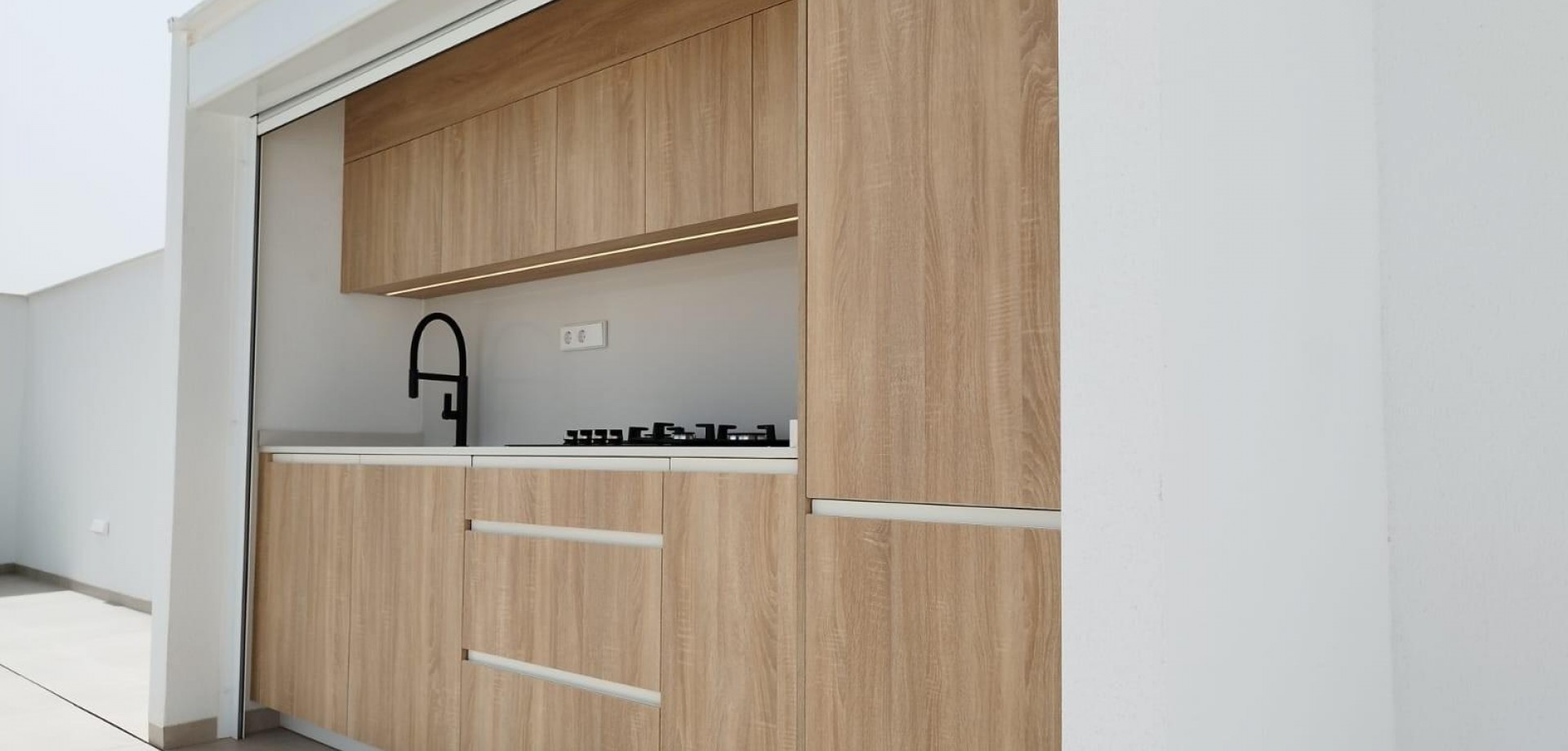 VILLAS PAREADAS DE OBRA NUEVA EN SAN JAVIER Residencial de obra nueva de villas independientes y pareadas en San Javier. Villas construidas en 1 planta y consta de 3 dormitorios, 2 baños, cocina americana, el salón con vistas abiertas a la terraza, solarium, jardín privado con la piscina. Cocina totalmente amueblada en color blanco brillo o madera incluye Placa de inducción con extractor integrado, horno, microondas, lavadora, frigorífico integrado y lavavajillas integrado. Instalación completa de Aire Acondicionado por conductos. La piscina tiene preinstalación para bomba de calor. San Javier está cerca de todos los servicios con fácil acceso a la playa, deportes acuáticos, tiendas y la red de transporte. Aquí se puede disfrutar de todas las instalaciones que San Javier tiene para ofrecer, como las tiendas locales, bares y restaurantes, así como estar cerca de centros comerciales, el aeropuerto de Murcia y todos los hermosos lugares que se encuentran a lo largo del Mar Menor. El aeropuerto de Corvera/Murcia está a 30 minutos y el aeropuerto de Alicante a 45 minutos.
