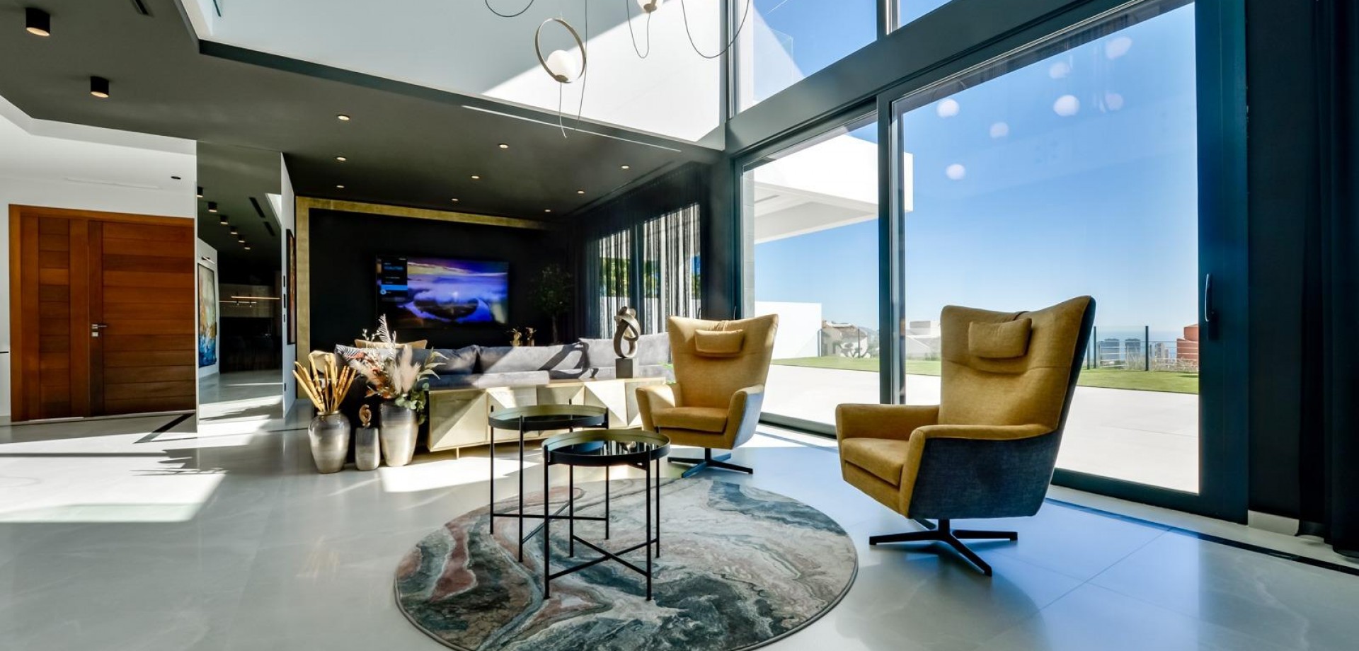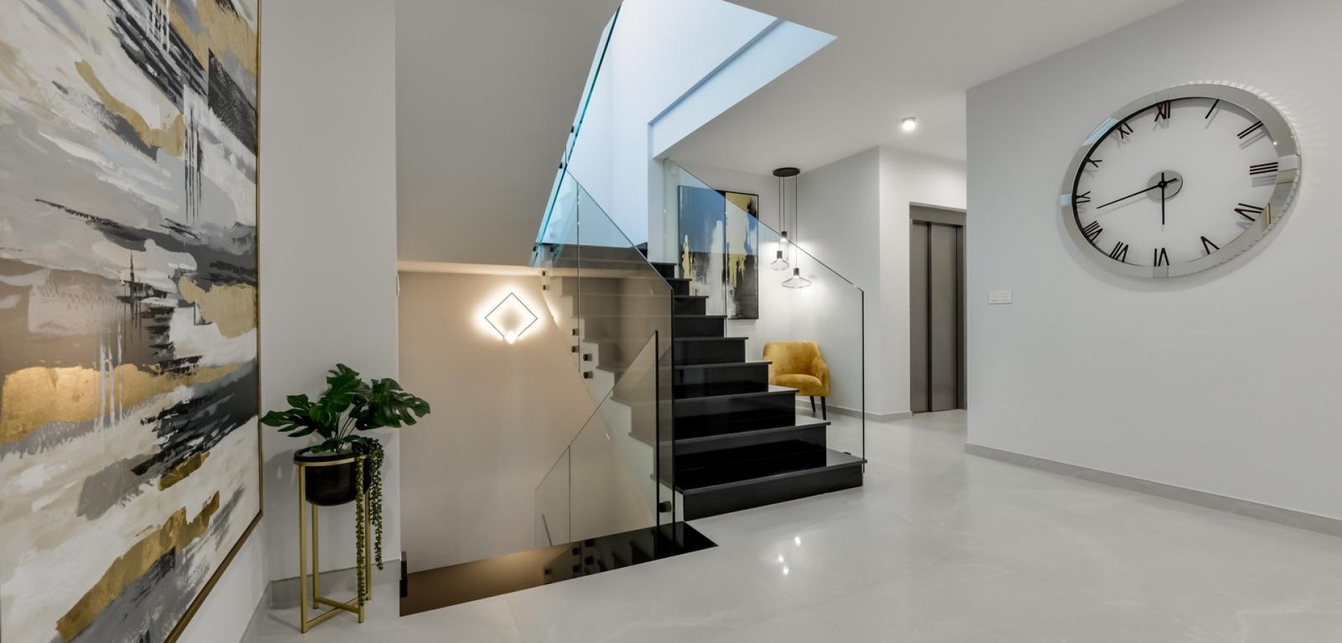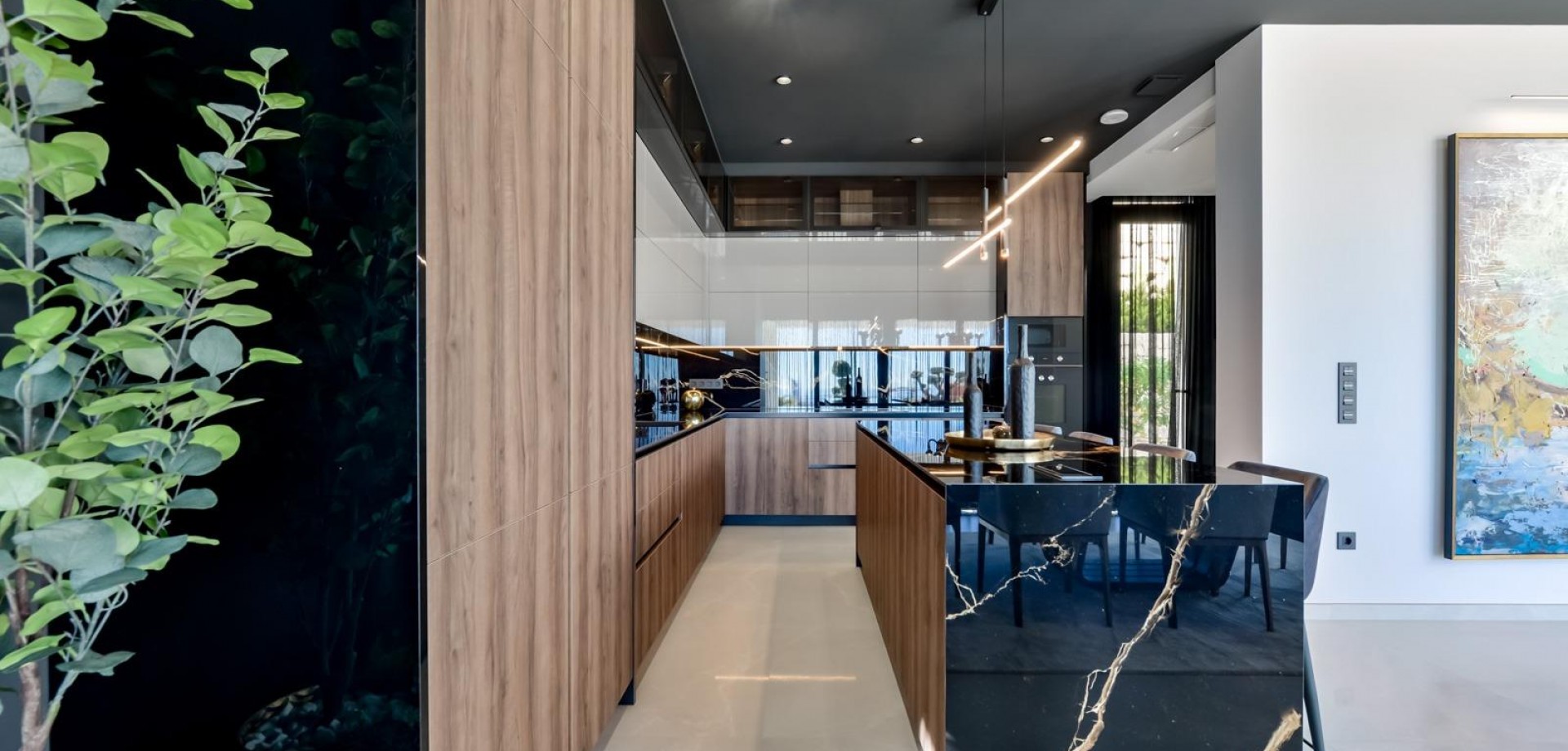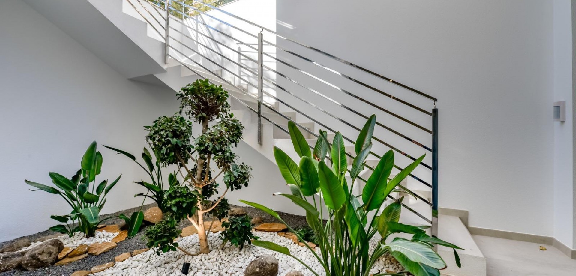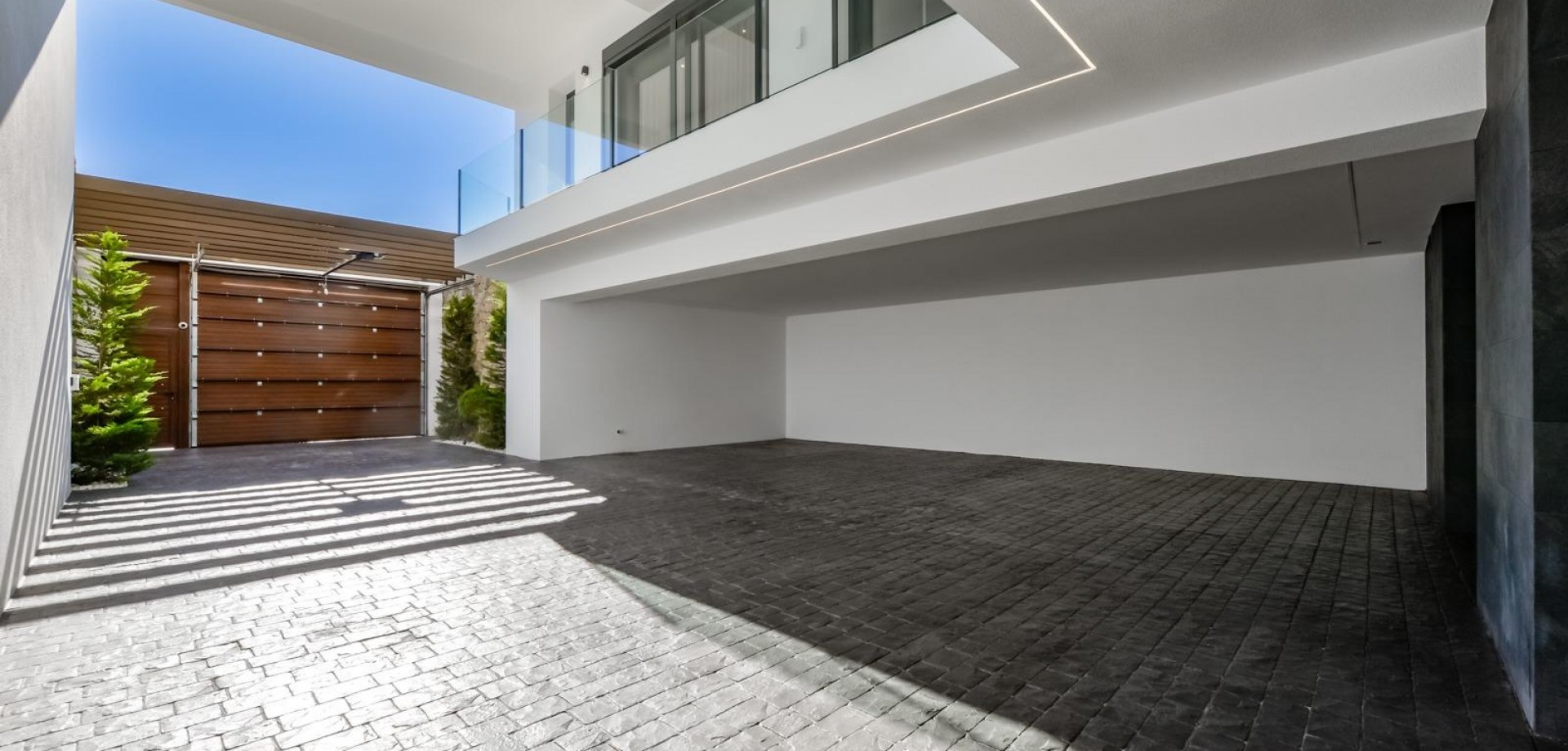 VILLA DE LUJO EN FINESTRAT CON VISTAS AL MAR Villa de lujo de nueva construcción con vistas al mar en Sierra Cortina, Finestrat. Llegando a la Urbanización hay un muro de piedra natural con una altura de 7 metros y las puertas automáticas de acceso al chalet llegando al garaje cubierto a nivel de calle con doble altura, luz natural y jardín con palmeras de diferentes alturas de 180 m2, una sala acristalada de 78 m2 con ascensor, escalera interior, guardarropa y espacio suficiente para poner sillones, convertir este espacio en un despacho o simplemente una sala de espera para visitas. La siguiente planta de 190 m2 de espacio cerrado está situada por debajo del nivel de la parcela pero 3 metros por encima del nivel de la calle y por tanto con luz natural. Se puede acceder a ella por el ascensor o la escalera interior del chalet, o por la escalera exterior del garaje, en este último caso sólo se puede acceder a los pasillos exteriores, al cuarto de instalaciones o a la puerta principal de esta planta, realizando así el mantenimiento de la vivienda sin necesidad de entrar dentro de la casa. Dentro de esta planta encontraremos 4 amplios dormitorios, salón con patio inglés de 17 m2 con la escalera de acceso a la parcela, lavadero, 2 baños, pasillos exteriores de 40 m2 y cuarto de instalaciones. Cuando subimos a la planta principal por 3 accesos vemos un salón de 130 m2 con doble luz, cocina abierta, aseo de invitados, vistas panorámicas al mar, y piscina de 54 m2 de laminado, un precioso jardín y 2 amplias terrazas cubiertas. A la planta de dormitorios accedemos por ascensor o escalera interior donde veremos un Dormitorio Principal de más de 50 m2 con baño en-suite, vestidor y terraza, dos dormitorios de unos 20 m2 cada uno, un baño y la terraza para estos dormitorios. Villa está equipada con Led exterior e interior, calefacción por suelo radiante, domótica, cristales Gamma de alta, aire acondicionado centralizado, persianas automáticas, techos altos y mucho más: Salón- 95 m2 Dormitorios- 8 (principal 52 m2 y secundario 20 m2) Baños- 5 Parcela- 890 м2 Construido- 998 м2 Piscina- 12 X 5 Cuatro Plantas Jardín (20 m2) - totalmente terminado con sistema de riego automático Ascensor (Otis) dentro de la casa Calefacción por suelo radiante Domótica (control de aire acondicionado, suelo radiante, iluminación interior y exterior, persianas) Persianas eléctricas Luces exteriores e interiores marca Siemens Techos altos de hasta 3,20 m de altura Impresionantes vistas al mar Una planta para invitados Calefacción aerotérmica Cocina totalmente equipada con isla Armarios empotrados Suelo de gres porcelánico Pared con piedra natural tallada a mano Garaje para 4 vehículos con puertas automáticas 160 m2 + hall de entrada 78 m2 Parking abierto 37 Chalet situado en el complejo Sierra Cortina, junto a dos campos de golf, parques temáticos, un gran centro comercial y a pocos minutos de las playas de Benidorm. Finestrat situado en la comarca de la Marina Baixa de la Costa Blanca, cerca de la vecina Benidorm y a unos 40 kilómetros de la ciudad de Alicante y del aeropuerto internacional. El pueblo está situado en la ladera del Puig Campana y ofrece hermosas vistas de las montañas, la costa y el mar Mediterráneo.