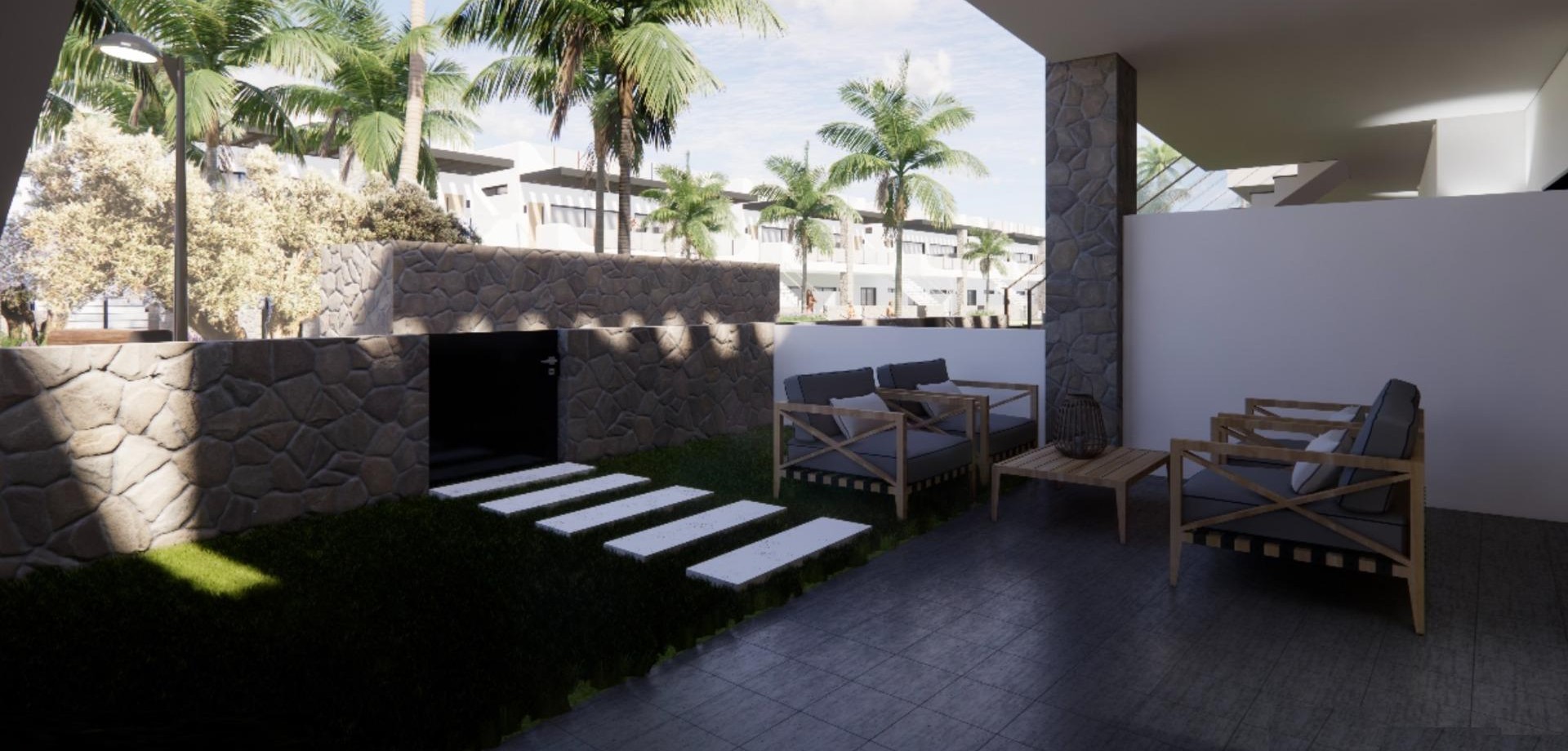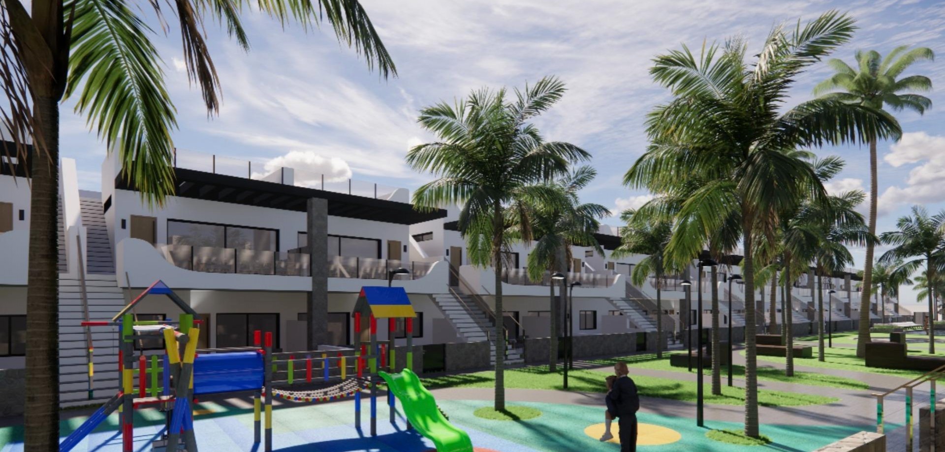 COMPLEJO RESIDENCIAL DE OBRA NUEVA EN PUNTA PRIMA Precioso complejo residencial de obra nueva de apartamentos, bungalows y villas situado en Punta Prima, Torrevieja. Modernos 94 bungalows y apartamentos de 2 y 3 dormitorios, 2 baños, cocina americana con amplio salón, armarios empotrados. Bungalows en planta baja con jardín privado, bungalows en planta alta con solarium privado y apartamentos con amplias terrazas. Todas las viviendas disponen de plaza de aparcamiento subterráneo. El residencial constará de 1.980m2 de zonas verdes comunitarias, 2.620m2 de zonas verdes privadas, zona de juegos infantiles, piscinas comunitarias, jacuzzi y zona de gimnasio. Complejo situado cerca de centros deportivos, zonas comerciales, restaurantes y a tan solo 10 minutos andando de la playa de Punta Prima. Punta Prima, situada a tan sólo 5 km de Torrevieja, se caracteriza por sus buenas infraestructuras de comunicación y sanitarias, su proximidad al aeropuerto de Alicante y la cantidad de servicios abiertos durante todo el año. A tan sólo 10 km se encuentran los campos de golf de Villamartín, Campoamor, Las Ramblas, Las Colinas y Lo Romero, así como los centros comerciales de La Zenia y Habaneras.