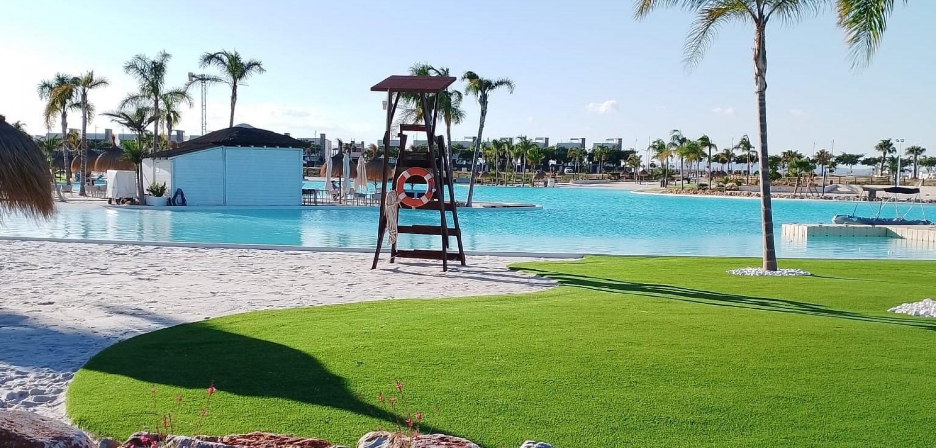 RESIDENCIAL DE OBRA NUEVA EN RESIDENCIAL PRIVADO EN LA PROVINCIA DE MURCIA Residencial de obra nueva compuesto por 42 apartamentos y áticos de lujo con 2 y 3 dormitorios, 2 baños, cocina americana con amplio salón, armarios empotrados y terrazas. Apartamentos en planta baja con jardín privado, apartamentos en plantas medias con terraza y áticos con una gran terraza privada. Esta exclusiva urbanización dispone de una zona comunitaria ajardinada que cuenta con una fabulosa piscina contemporánea, club social y zonas verdes. Todos los apartamentos disponen de aparcamiento subterráneo y trastero. Situado en un complejo cerrado privado, con una entrada de acceso principal y seguridad las 24 horas. El complejo está diseñado en torno a una impresionante zona verde de 126.000 m2. Comprende senderos para caminar y montar en bicicleta, instalaciones deportivas, pistas de paddle y tenis, un campo de minigolf, jardines, parques para perros, zonas de ocio, casa club..... También en la zona central se encuentra la joya del complejo, un lago artificial de aguas cristalinas de casi 17.000m2 de superficie acuática, rodeado de playas de arena blanca y palmeras, trayendo un trozo del Caribe a la Región de Murcia. Hay 2 islas en el lago, una de ellas tiene su propio bar, también hay "Chiringuitos de playa" repartidos por el lago. El complejo está estratégicamente situado a menos de 4 km de la playa y de la localidad de Los Alcázares, donde se pueden practicar diversos deportes náuticos, rodeado de varios campos de golf y de la ciudad de Cartagena a menos de 15 minutos en coche y a 22 km del aeropuerto de Murcia, teniendo por tanto una amplia oferta cultural, gastronómica y deportiva a su alcance.