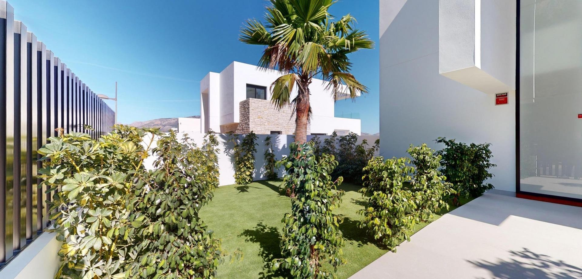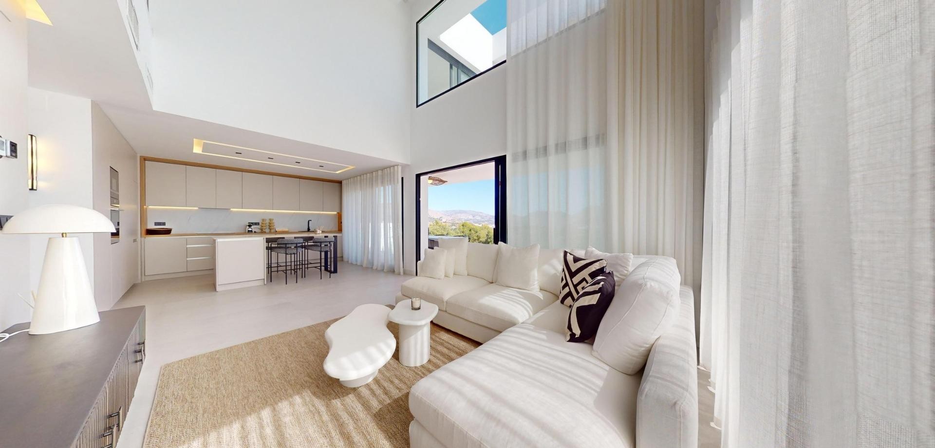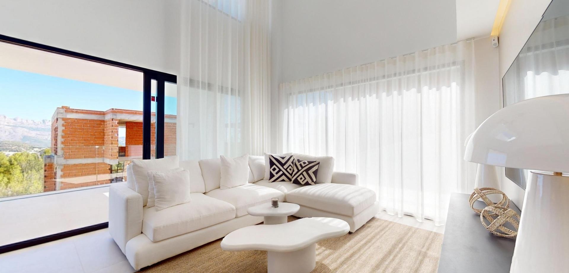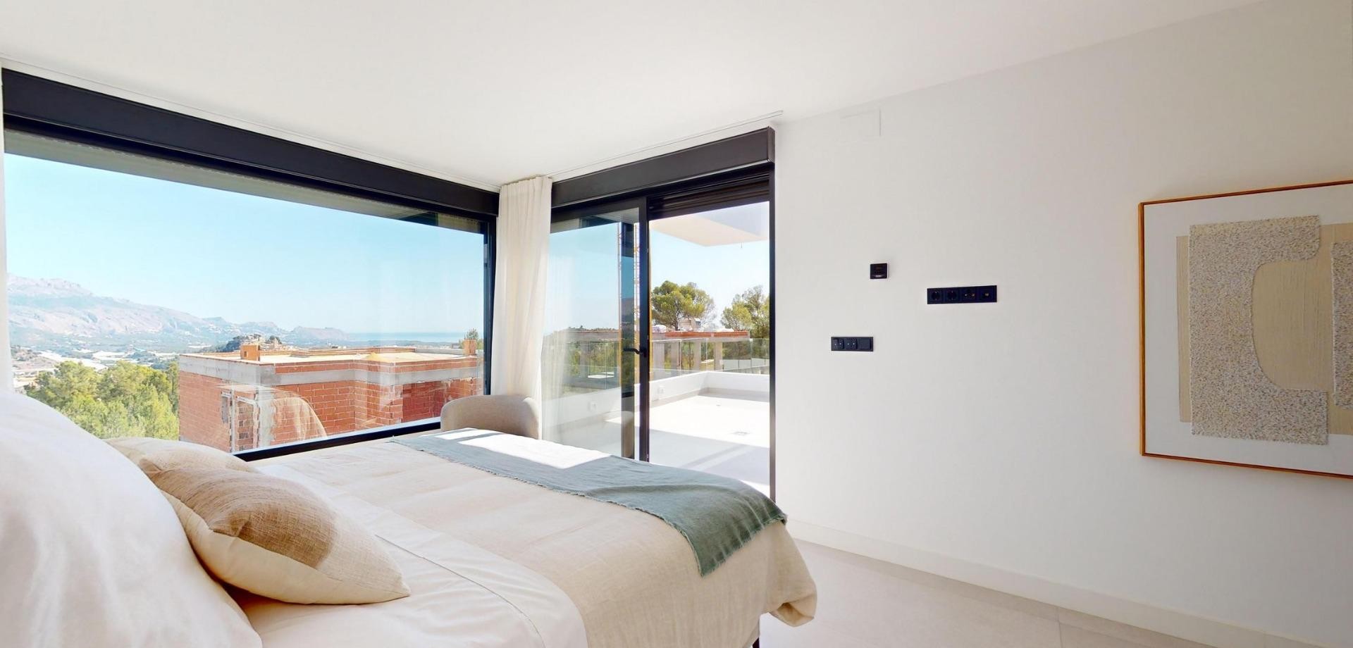 Villas de lujo de nueva construcción en Polop con impresionantes vistas Exclusiva Promoción de 6 Villas de Lujo en Polop Esta nueva promoción de 6 villas de lujo se encuentra en Polop, ofreciendo impresionantes vistas al mar y a la montaña. Cada villa está construida sobre una parcela independiente con piscina privada, aparcamiento, zona de barbacoa y un amplio jardín. Las villas se distribuyen en dos plantas más un semisótano, con un total de 293 m² en parcelas privadas de 393 m². Amplia distribución y diseño moderno En la planta principal, encontrará una moderna cocina con isla, un salón-comedor diáfano, un dormitorio, un baño, una terraza cubierta y una gran terraza descubierta, perfecta para disfrutar de las vistas de Polop, Altea y las montañas de los alrededores. La primera planta cuenta con dos amplios dormitorios, dos baños y dos terrazas, cubiertas y descubiertas. El semisótano se puede convertir en una vivienda independiente. Acabados de alta calidad y eficiencia energética Las villas disponen de cocina totalmente equipada con electrodomésticos Siemens. Los baños están totalmente equipados con grifería Roca de alta gama. Todas las viviendas disponen de calefacción por suelo radiante, aire acondicionado y piscina infinita. Las villas han sido diseñadas pensando en la eficiencia energética y cuentan con un certificado energético de clase A. Ubicación privilegiada cerca de los servicios Situadas a sólo 10 km de Benidorm y Altea, estas villas están a un corto trayecto en coche de La Nucía y Alfaz del Pi. La zona ofrece fácil acceso a los principales puntos de interés, incluyendo las playas de Benidorm (15 km), el aeropuerto de Alicante (65 km), y varios campos de golf (dentro de 10 km). La proximidad de Polop a estos servicios, combinada con su entorno tranquilo, lo convierte en un lugar ideal para los amantes de las actividades al aire libre y los que buscan tranquilidad.