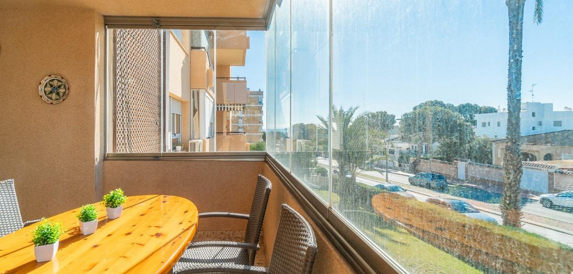 Descubre este encantador apartamento en Orihuela Costa, situado en la idílica zona de La Zenia, se encuentra a solo 300 metros de una de las mejores playas del Mediterráneo y a un corto paseo del centro comercial Zenia Boulevard, de zonas comerciales, farmacia, bares y restaurantes. . La vivienda se encuentra en un bloque de apartamentos con piscina y jardines comunitarios y cuenta también con parking para vehículos dentro de la zona comunitaria y de un un garaje cerrado-trastero privado en el sótano del mismo edificio, por lo que sobre todo en los meses veraniegos con más población estacional y problemas de aparcamiento, usted puede aparcar fácilmente su vehículo y tener un espacio para dejar tanto su coche como maletas, bicicletas y trastos varios de la vivienda en su garaje privado. . . Este refugio, perfecto tanto para vivir todo el año como para sus vacaciones, tiene orientación Sur-Suroeste, y tiene una terraza acristalada mirando hacia el sol de mañana y otra terraza acristalada mirando hacia el sol de la tarde. Durante el invierno puede utilizarlas como solarium y el calor de esas zonas exteriores acristaladas pueden mantener una temperatura estupenda en el resto de la vivienda, y en verano, las hojas de cristal de los cierres pueden ser abiertas y dejar entrar la brisa del mar en la propiedad para tener una ventilación óptima. . . La vivienda en sí ofrece tres acogedoras habitaciones dobles, de muy buen tamaño todas ellas y con armarios empotrados y dos baños con ducha para mayor uso y comodidad de acceso. . La cocina, recién renovada y completamente equipada, está lista para inspirar tus aventuras culinarias y cuenta con un lavadero independiente cerrado junto a la misma para poder utilizar la lavadora sin molestar al resto de la vivienda y todo ello abriendo a un gran salón-comedor junto a la amplia y luminosa terraza acristalada principal anteriormente mencionada.. . Las ventanas de PVC blanco con doble cristal climalit añaden confort y aislamiento tanto térmico como acústico para mayor tranquilidad y disfrutar de la vivienda durante todo el año. . . Este encantador apartamento cuenta con aire acondicionado en sus habitaciones para poder dormir confortablemente los días más cálidos, armarios empotrados para mayor comodidad y sus dos balcones perfectos para disfrutar de una copa de vino al atardecer.. . Situado en una esquina tranquila, este apartamento ofrece vistas despejadas que invitan a la relajación. A tan solo unos pasos, podrás disfrutar de servicios esenciales como autobuses, tiendas, centros médicos, colegios, campos de golf, hospitales y parques. La Zenia es un lugar vibrante y lleno de vida, ideal para unas vacaciones inolvidables.. . Este apartamento es la elección perfecta para quienes buscan una vivienda habitual para toda su familia o un refugio vacacional donde la comodidad y la conveniencia se unen con el encanto y la belleza del Mediterráneo. . . Precio 189.900€ Impuestos y gastos de compraventa No incluidos (según Normativa aplicable). Se informará del desglose de gastos adicionales antes de la reserva.