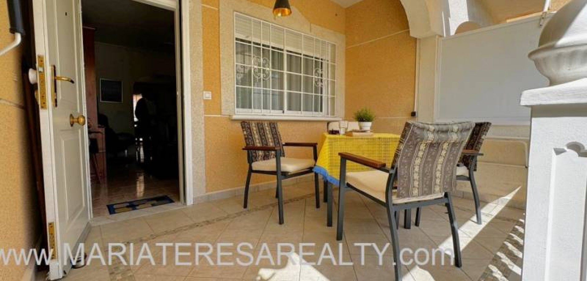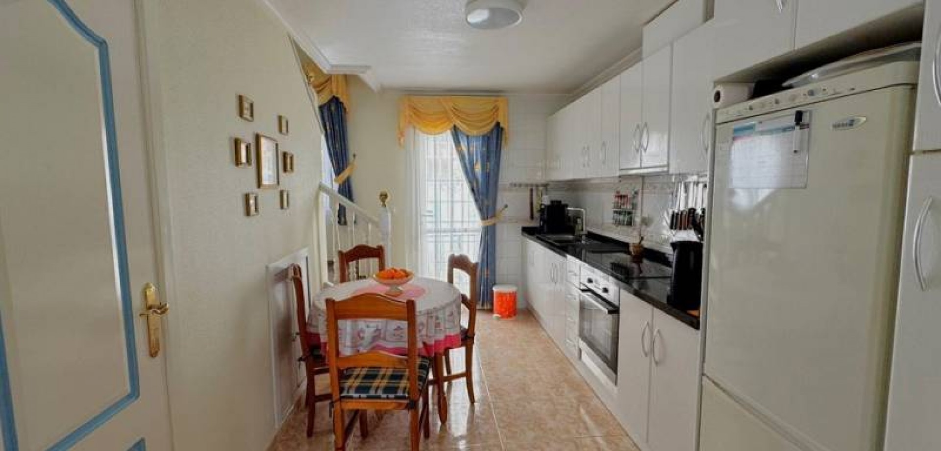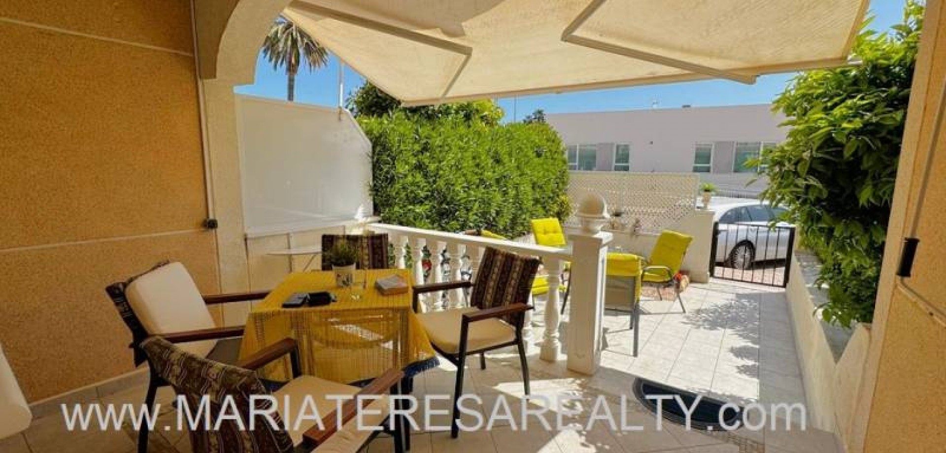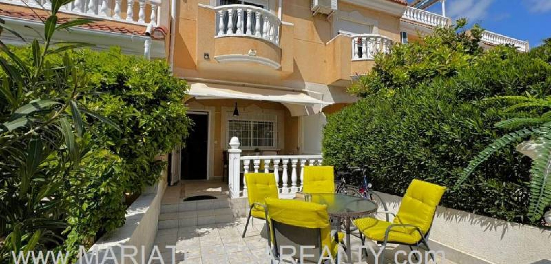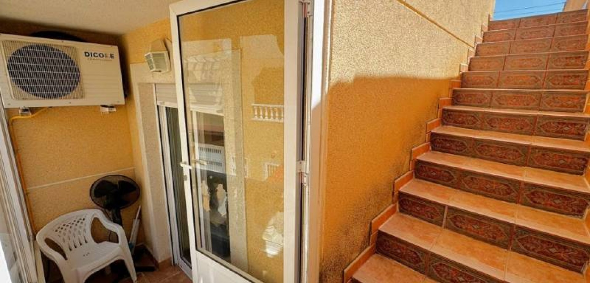Precioso dúplex adosado con jardín privado orientación Sureste ideal para disfrutar del sol y equipado con toldos. Al entrar a la vivienda en esta planta baja de 36m2 tenemos distribuidos un amplio salón/comedor completamente amueblado y con aire acondicionado, seguido tenemos la cocina de diseño abierto completamente equipada con encimera de granito, a su vez tenemos un aseo, un pequeño hueco bajo la escalera utilizado de trastero y una salida al patio trasero equipado con un amplio trastero que a su vez nos da acceso a la zona comunitaria para acceder a la piscina. Subiendo las escaleras interiores tenemos la planta alta de 40m2 que consta de un amplio dormitorio principal con armario empotrado, aire acondicionado y con salida a un balcón, un cuarto de baño equipado con ducha y un segundo dormitorio equipado actualmente con sofá-cama, armario empotrado y aire condicionado, a su vez desde este dormitorio podemos acceder a una terraza acristalada con cerramiento de aluminio y que nos da acceso a las escaleras de acceso al solario a través de una puerta. En el solario tenemos unos 40m2 totalmente de uso privado equipados con placas solares y un amplio trastero donde se encuentra la lavadora y el termo y es de aproximadamente de unos 6m2.