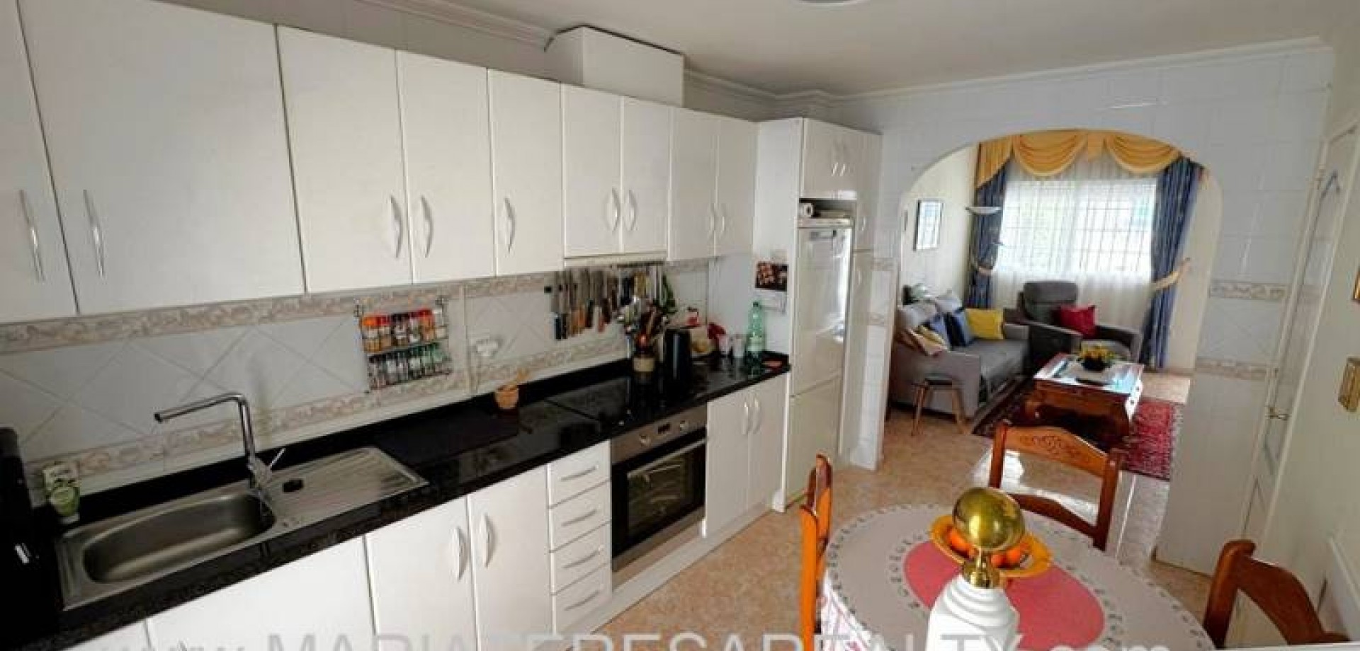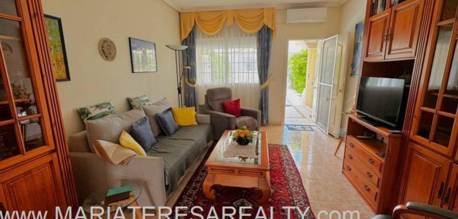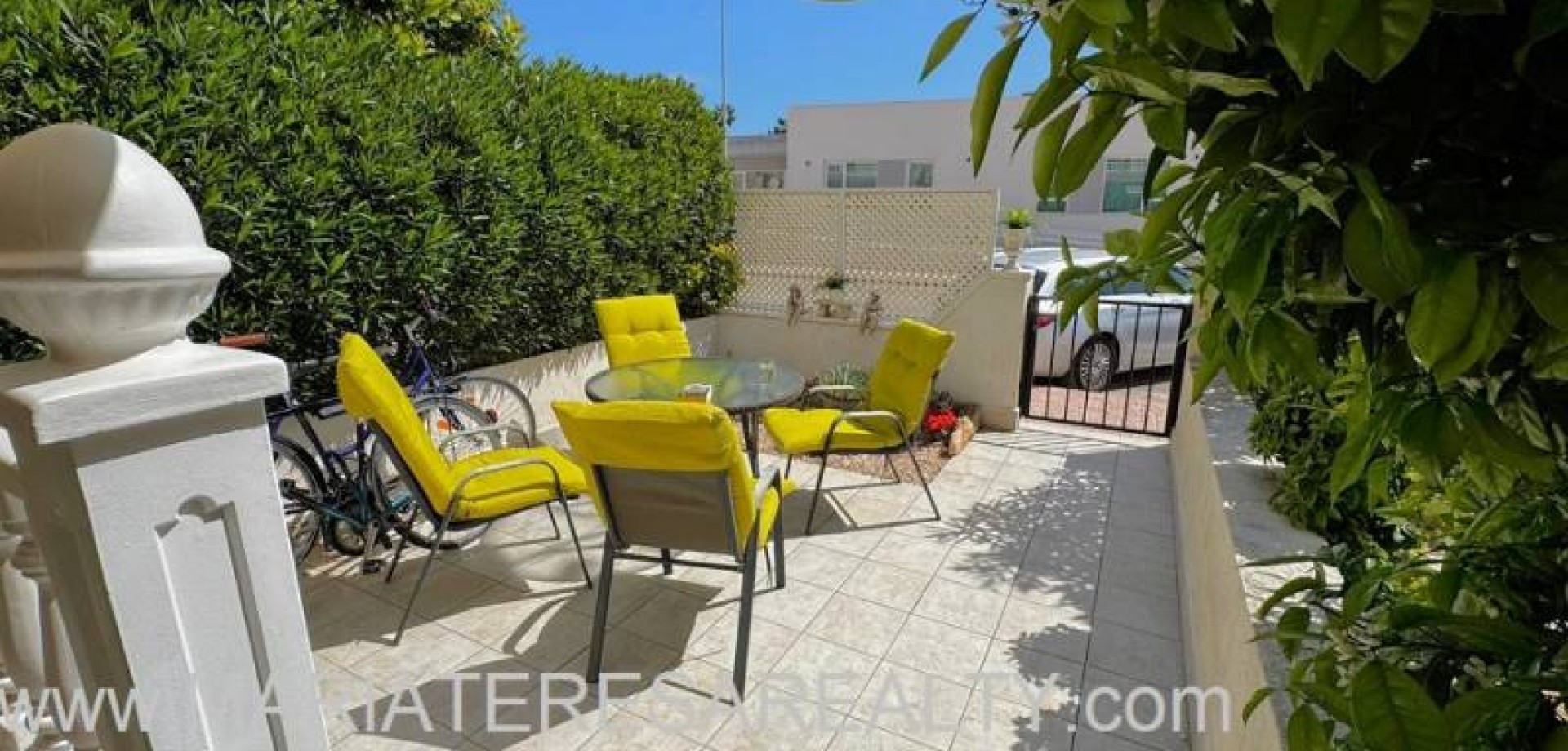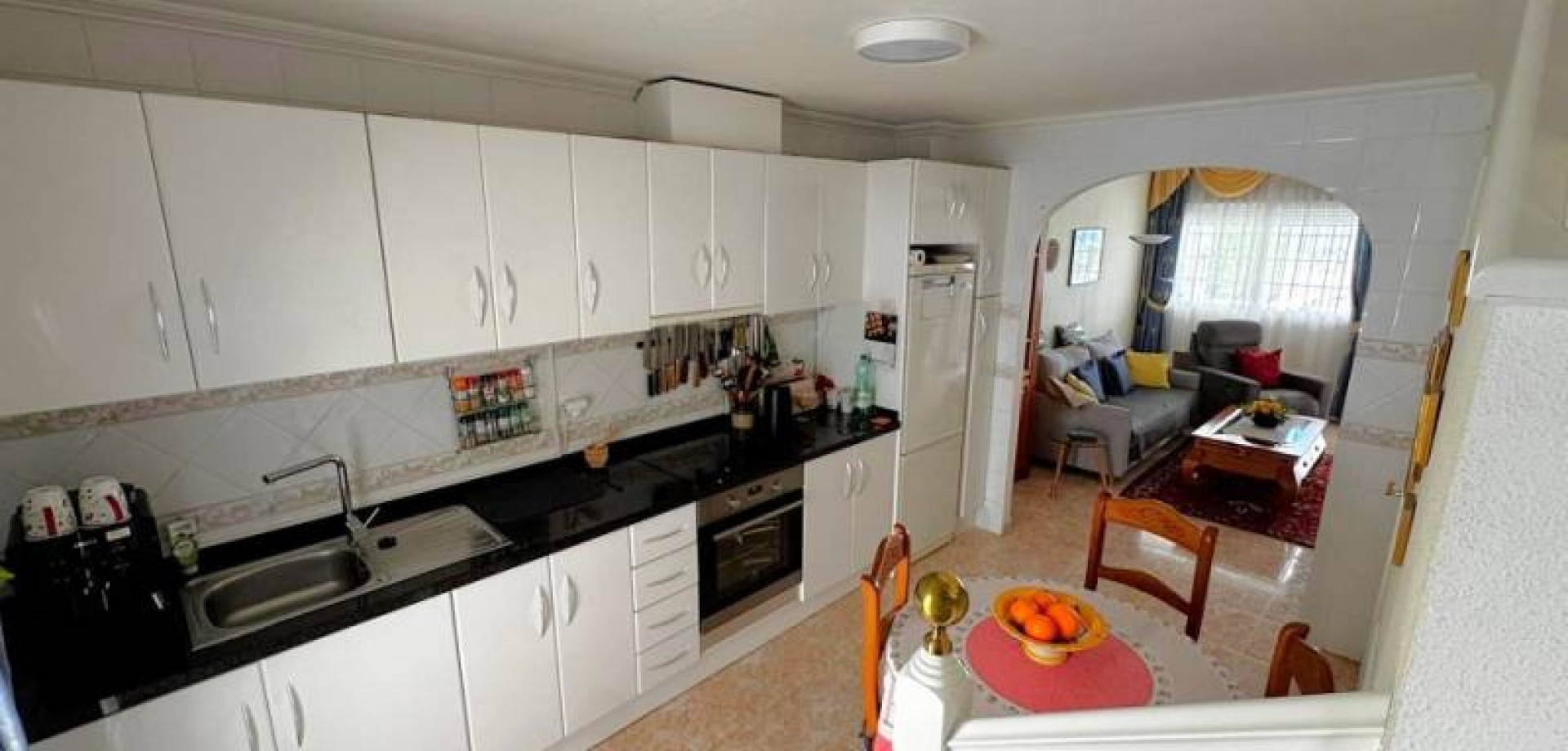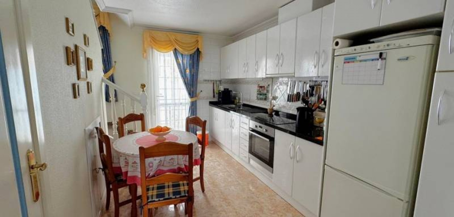 Precioso dúplex adosado con jardín privado orientación Sureste ideal para disfrutar del sol y equipado con toldos. Al entrar a la vivienda en esta planta baja de 36m2 tenemos distribuidos un amplio salón/comedor completamente amueblado y con aire acondicionado, seguido tenemos la cocina de diseño abierto completamente equipada con encimera de granito, a su vez tenemos un aseo, un pequeño hueco bajo la escalera utilizado de trastero y una salida al patio trasero equipado con un amplio trastero que a su vez nos da acceso a la zona comunitaria para acceder a la piscina. Subiendo las escaleras interiores tenemos la planta alta de 40m2 que consta de un amplio dormitorio principal con armario empotrado, aire acondicionado y con salida a un balcón, un cuarto de baño equipado con ducha y un segundo dormitorio equipado actualmente con sofá-cama, armario empotrado y aire condicionado, a su vez desde este dormitorio podemos acceder a una terraza acristalada con cerramiento de aluminio y que nos da acceso a las escaleras de acceso al solario a través de una puerta. En el solario tenemos unos 40m2 totalmente de uso privado equipados con placas solares y un amplio trastero donde se encuentra la lavadora y el termo y es de aproximadamente de unos 6m2.