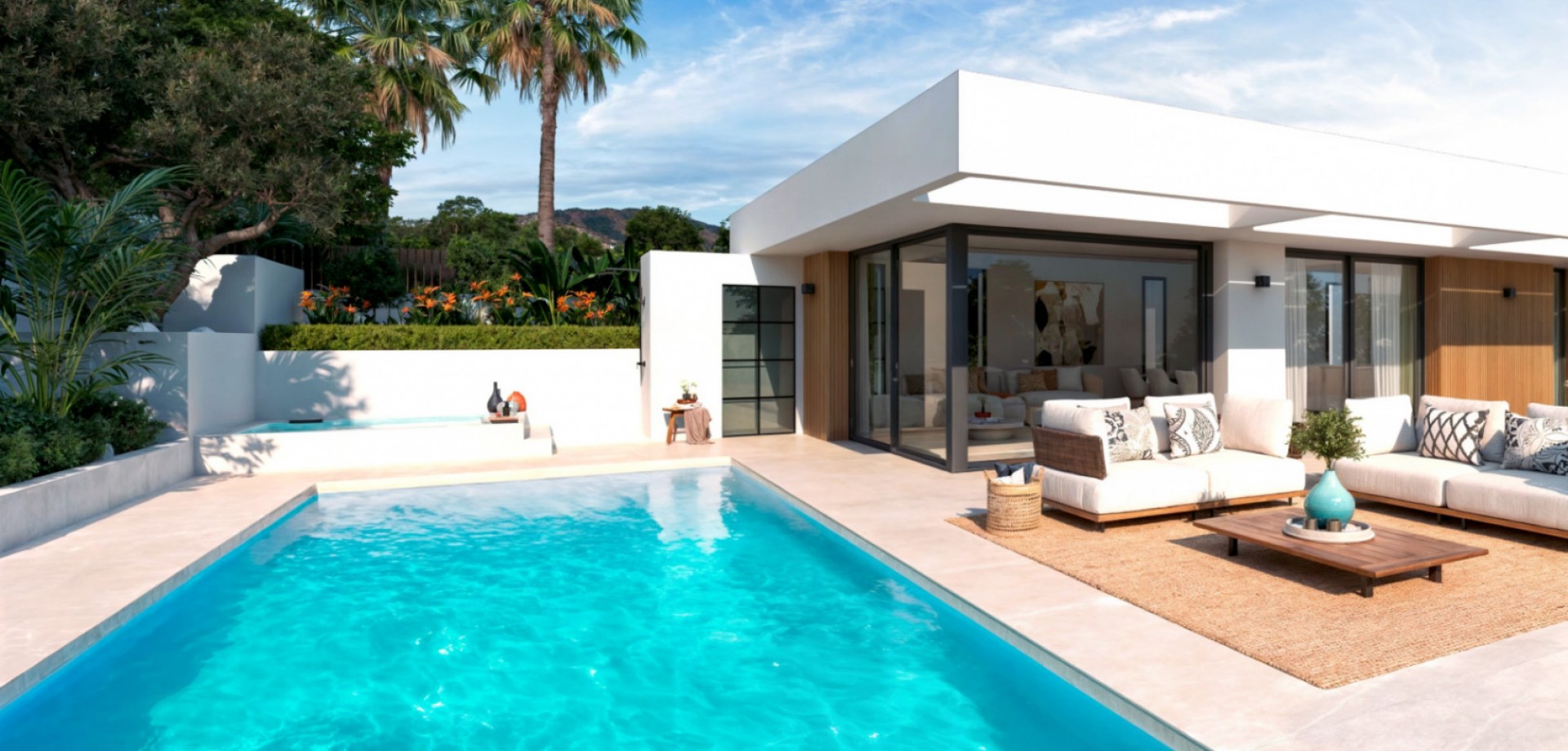 1. Murs entièrement isolés2. Carreaux de porcelaine à l'intérieur et à l'extérieur3. Electrique porte d'entrée pour les véhicules4. Portes et fenêtres en aluminium laqué5. Double vitrage Climalit6. Balustrades en verre7. Wardrobes avec portes coulissantes8. Cuisine avec plans de travail en Silestone ou Quartz9. Appareils électroménagers inclus : four, plaque vitrocéramique, hotte aspirante, réfrigérateur/congélateur, micro-ondes et lave-vaisselle.10. Les salles de bains comprennent des meubles-lavabos avec miroirs, des robinets et des douches chromés, ainsi que des toilettes suspendues.11. Eau chaude solaire ou aérothermique.12. Éclairage halogène à l'intérieur et à l'extérieur13. Piscine de 10 x 4 m avec éclairage LED, marches, carreaux de mosaïque et douche extérieure14. Climatisation chaud/froid15. Chauffage par le sol.