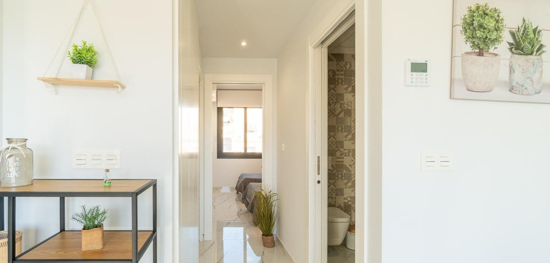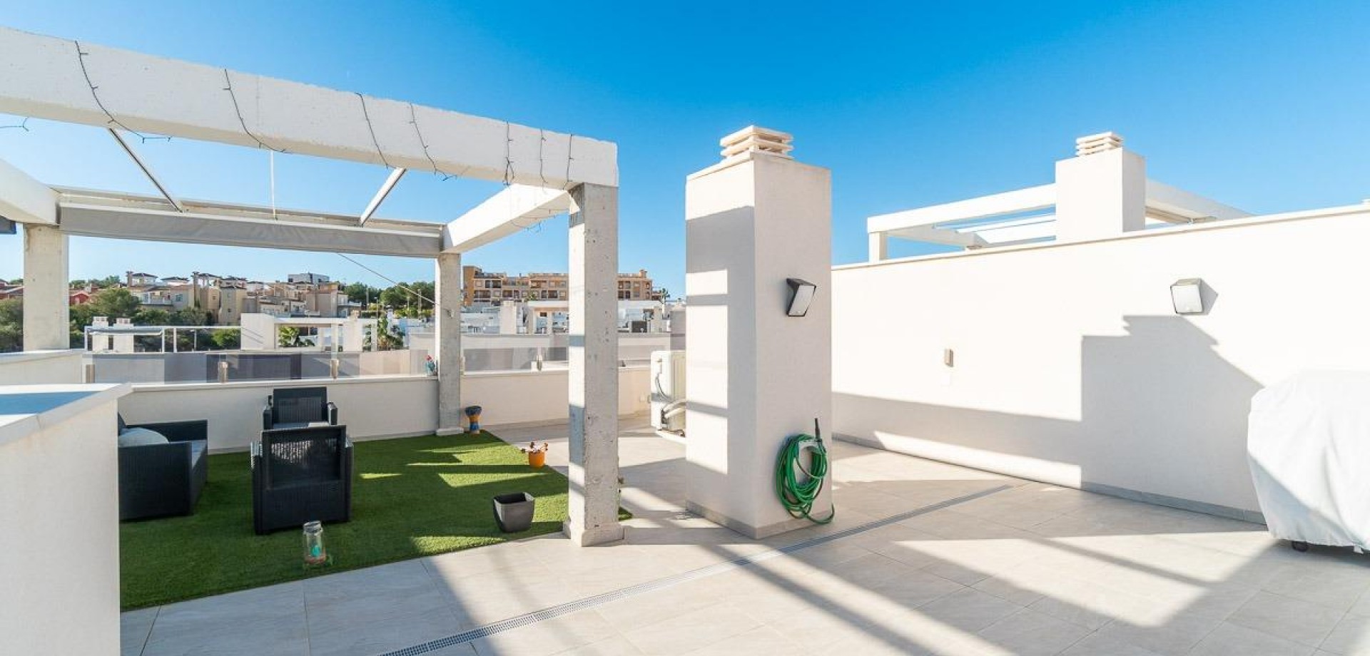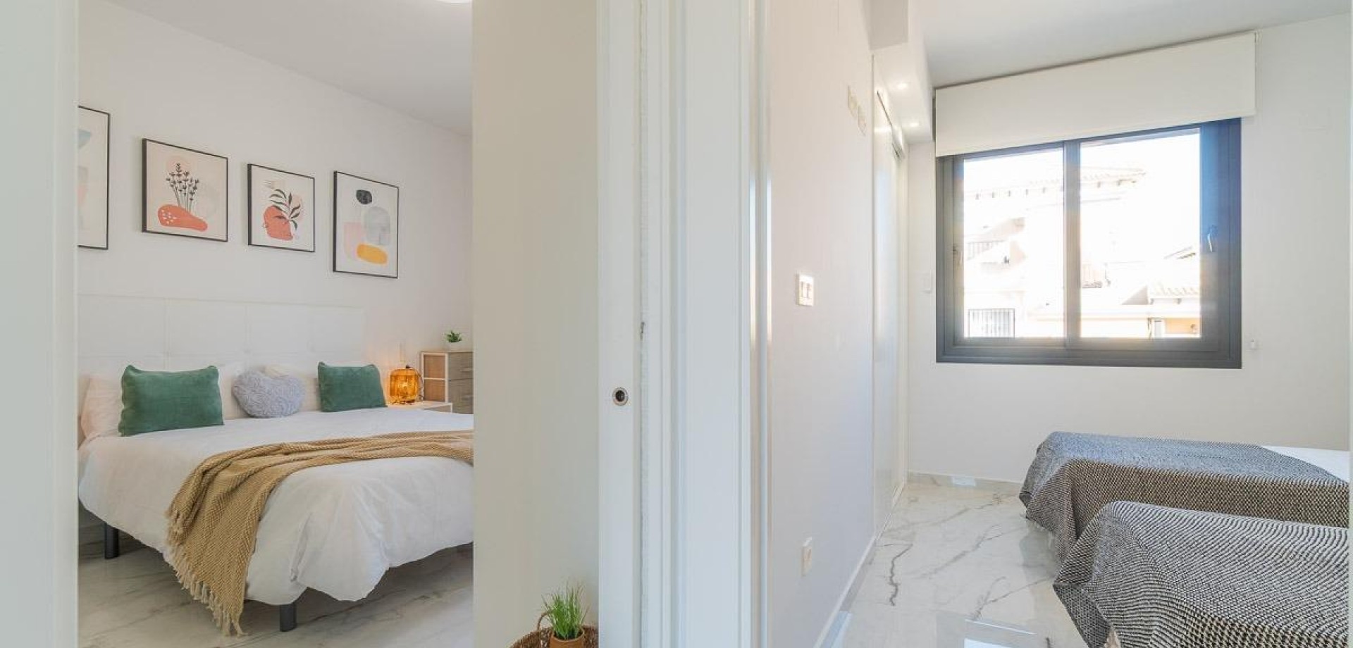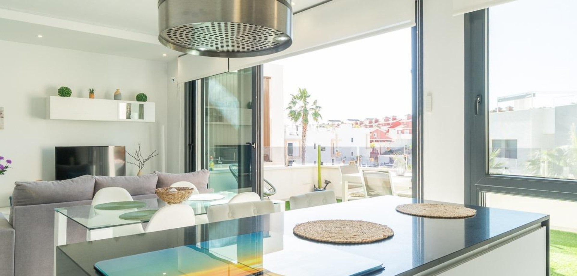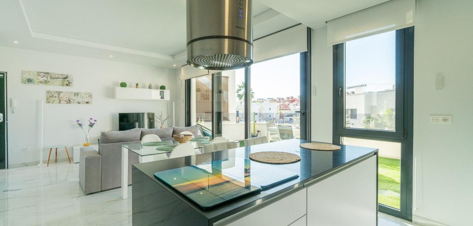 Découvrez ce superbe bungalow à l’étage supérieur situé dans la prestigieuse zone de PAU 26, Orihuela Costa, un environnement privilégié où se conjuguent design moderne, confort et qualité de vie.. . Cette propriété semi-neuve, construite en 2022, offre 76 m2 construits, une distribution fonctionnelle et une excellente orientation plein sud, garantissant une luminosité naturelle tout au long de la journée.. . Depuis la rue, vous accédez à une résidence privée et exclusive de seulement 24 logements, assurant tranquillité, intimité et un cadre résidentiel haut de gamme. À l’entrée, vous découvrez un spacieux et lumineux salon-salle à manger avec une cuisine ouverte moderne. Le salon donne accès à une terrasse de 12 m2, équipée d’un store électrique et de gazon artificiel, idéale pour profiter de l’extérieur toute l’année grâce à son exposition ensoleillée.. La maison dispose également d’une buanderie, de deux grandes chambres doubles et de deux salles de bains complètes, toutes deux avec chauffage au sol, un véritable plus en matière de confort.. . Depuis la terrasse, un escalier privé mène au joyau de la propriété : un magnifique solarium privé d’environ 71 m2, aménagé avec gazon artificiel et stores, parfait pour créer un espace chill-out exclusif ou se détendre au soleil méditerranéen.. . Parmi les prestations : sol en grès cérame, moustiquaires à toutes les fenêtres, porte blindée, store électrique sur la terrasse et store manuel sur la pergola du solarium.. . La propriété est vendue avec une place de parking et un débarras fermé, offrant un confort supplémentaire.. . La résidence dispose d’une superbe piscine communautaire, de jardins parfaitement entretenus et d’espaces communs de grande qualité, dans un cadre réellement luxueux.. . Située à seulement 3,5 km de la mer, la propriété se trouve à proximité de plages emblématiques telles que La Zenia et Playa Flamenca, réputées pour leurs eaux cristallines et leurs services.. . La proximité de plusieurs parcours de golf renommés en fait également un excellent investissement locatif saisonnier, très recherché.. . Une propriété pensée pour offrir exclusivité, confort et art de vivre méditerranéen.. Une opportunité unique à découvrir sans tarder.. Prix : 349 000 €. Taxes et frais d’acquisition non inclus (conformément à la réglementation en vigueur). Un détail des frais supplémentaires sera communiqué avant la réservation.