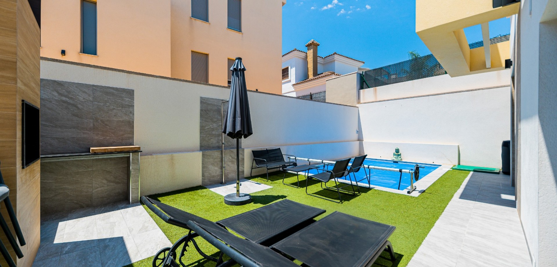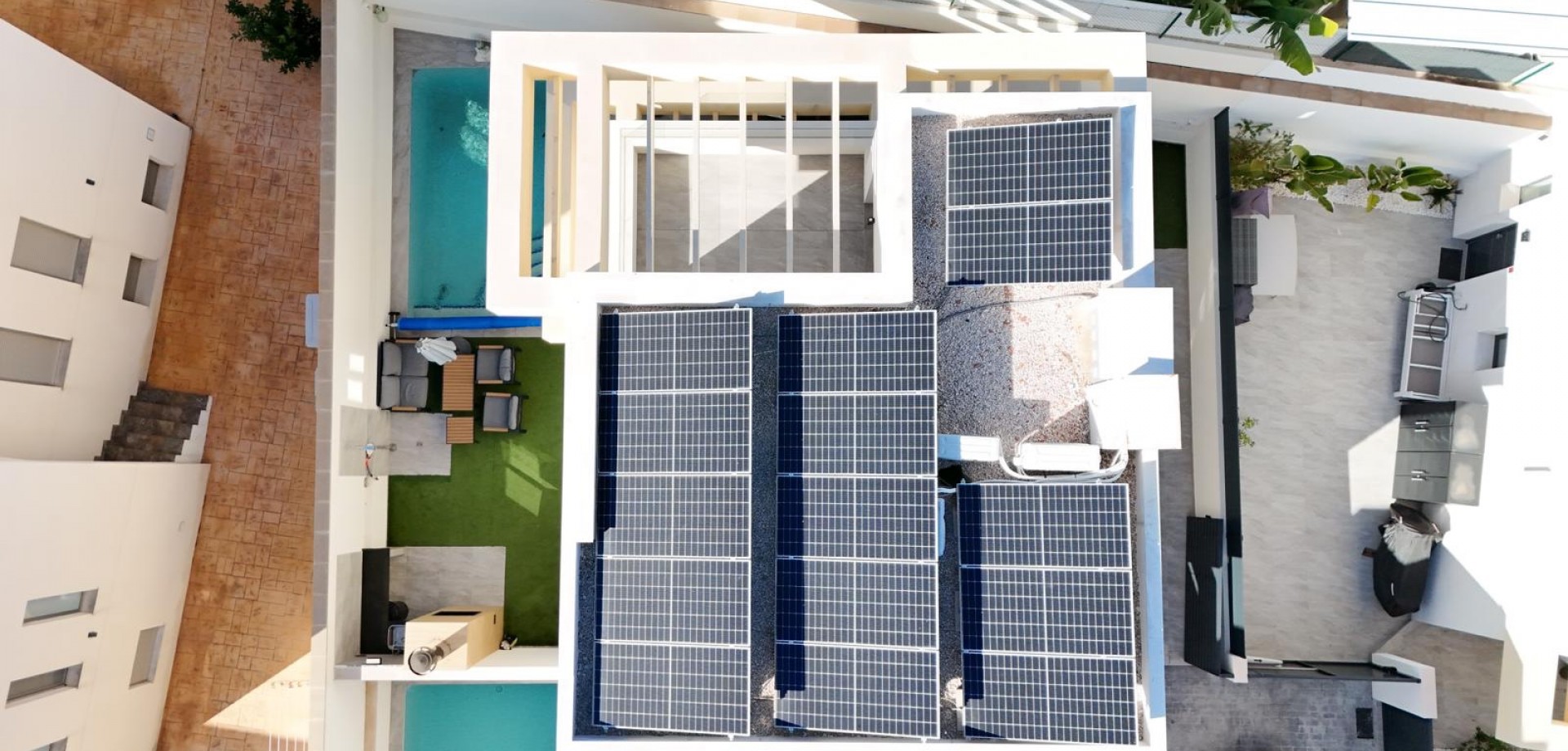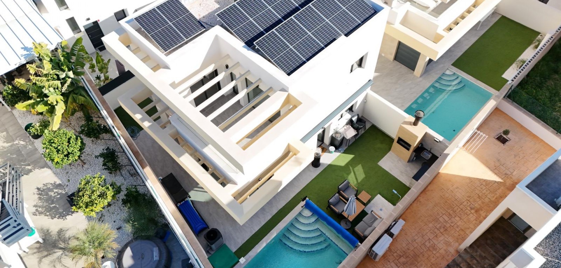Découvrez cette spectaculaire villa individuelle au design contemporain, construite il y a seulement 3 ans, située dans un quartier résidentiel calme à quelques minutes du charmant village de Los Montesinos, sur la Costa Blanca. Cette maison allie confort, efficacité énergétique et espaces conçus pour profiter pleinement du style de vie méditerranéen. La propriété comprend 3 chambres spacieuses et 2 salles de bain complètes, toutes deux accessibles par un double accès (depuis le couloir et depuis la chambre), pour plus de commodité et d'intimité. De plus, les deux salles de bain sont équipées d'un chauffage au sol, idéal pour un confort optimal toute l'année. Le cœur de la maison est son salon lumineux avec un haut plafond, créant une impressionnante sensation d'espace. De grandes fenêtres laissent entrer une abondante lumière naturelle, reliant harmonieusement l'intérieur et l'extérieur. La cuisine moderne et entièrement équipée offre à la fois fonctionnalité et style, parfaite pour un usage quotidien et pour recevoir des invités. À l'étage, en plus de deux chambres et d'une salle de bain, se trouve une grande terrasse privée, un espace idéal pour se détendre, bronzer ou profiter des douces soirées méditerranéennes. L'extérieur est conçu pour un confort optimal : Une piscine privée chauffée à l'eau salée, idéale en toute saison. Une terrasse avec barbecue brésilien intégré, parfaite pour des grillades et des moments inoubliables en famille ou entre amis. Un terrain avec entrée motorisée et parking privé. La maison se distingue également par sa haute performance énergétique, grâce à l'installation de 15 panneaux solaires qui réduisent considérablement la consommation d'électricité. Située dans un quartier résidentiel très calme, la maison est proche de toutes les commodités, commerces, restaurants et terrains de golf, et à quelques minutes seulement du centre de Los Montesinos. Elle représente ainsi une option idéale comme résidence principale, maison de vacances ou investissement immobilier sur la Costa Blanca. Une propriété moderne et fonctionnelle, prête à emménager, située dans l'un des quartiers les plus prisés du sud d'Alicante.