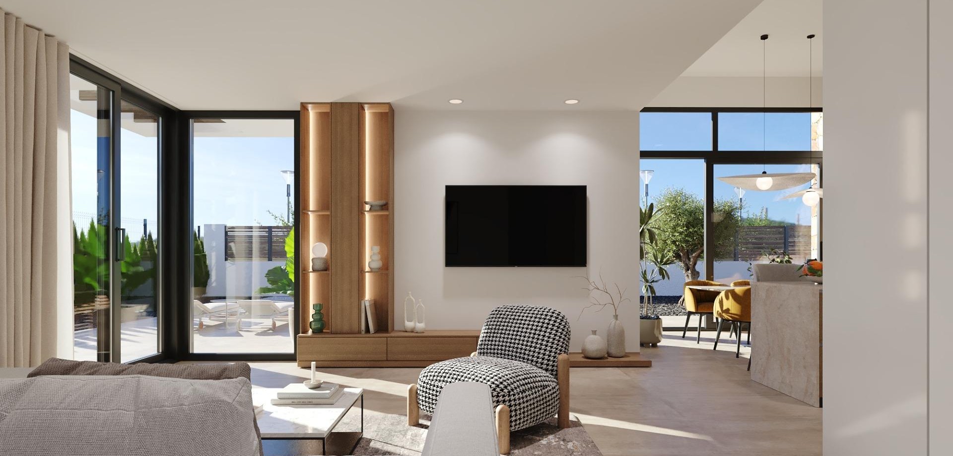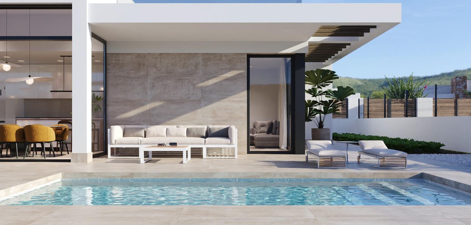 Villas neuves à Hacienda del Álamo Golf Resort, Murcie Maisons modernes dans un cadre naturel et exclusif Découvrez ces fantastiques villas neuves dans le prestigieux Hacienda del Álamo Golf Resort, un lotissement fermé dans la région de Murcie qui allie tranquillité, sécurité et une offre complète de services. Entouré par la nature et bénéficiant d'un climat privilégié, ce complexe est idéal pour ceux qui recherchent un style de vie détendu sans renoncer au confort. Villas de 3 chambres sur un seul étage avec solarium Le lotissement se compose de 39 villas sur des parcelles à partir de 436 m². Toutes les maisons disposent de 3 chambres et 2 salles de bains complètes sur un seul étage, ainsi que d'une terrasse avec piscine privée et d'un solarium privé sur le toit avec vue sur le terrain de golf. Finitions de haute qualité et confort garanti Les maisons sont conçues avec des matériaux de haute qualité et pensées pour offrir efficacité énergétique et bien-être : Menuiserie extérieure avec rupture de pont thermique Eau chaude par système aérothermique Pré-installation de climatisation par conduits Piscine privée Installation indépendante d'eau d'irrigation avec réservoir accumulateur et groupe de pression individuel, avec prises d'irrigation dans le garage et le jardin. Porte d'accès motorisée pour les véhicules. Un complexe avec tous les services et un terrain de golf Hacienda del Álamo est l'un des complexes les plus complets de la Costa Cálida. Il dispose de : Terrain de golf professionnel 18 trous Hôtel avec spa Supermarché Restaurants et bars Terrains de sport et espaces verts Sécurité 24h/24 Le lotissement recrée l'atmosphère d'un village méditerranéen traditionnel, avec des rues tranquilles et un design soigné. Emplacement stratégique à proximité de tout Aéroport international de Murcie (Corvera) : 20 km Terrains de golf supplémentaires : moins de 10 km Carthagène : 35 km Plages de la Mar Menor : 30 km Centre commercial Espacio Mediterráneo : 28 km Port de Mazarrón : 40 km Vivez avec style sur la Costa Cálida Ces villas représentent une excellente opportunité pour vivre ou investir dans l'une des zones les plus prometteuses de Murcie. Contactez-nous dès maintenant et découvrez votre prochaine maison à Hacienda del Álamo Golf Resort.