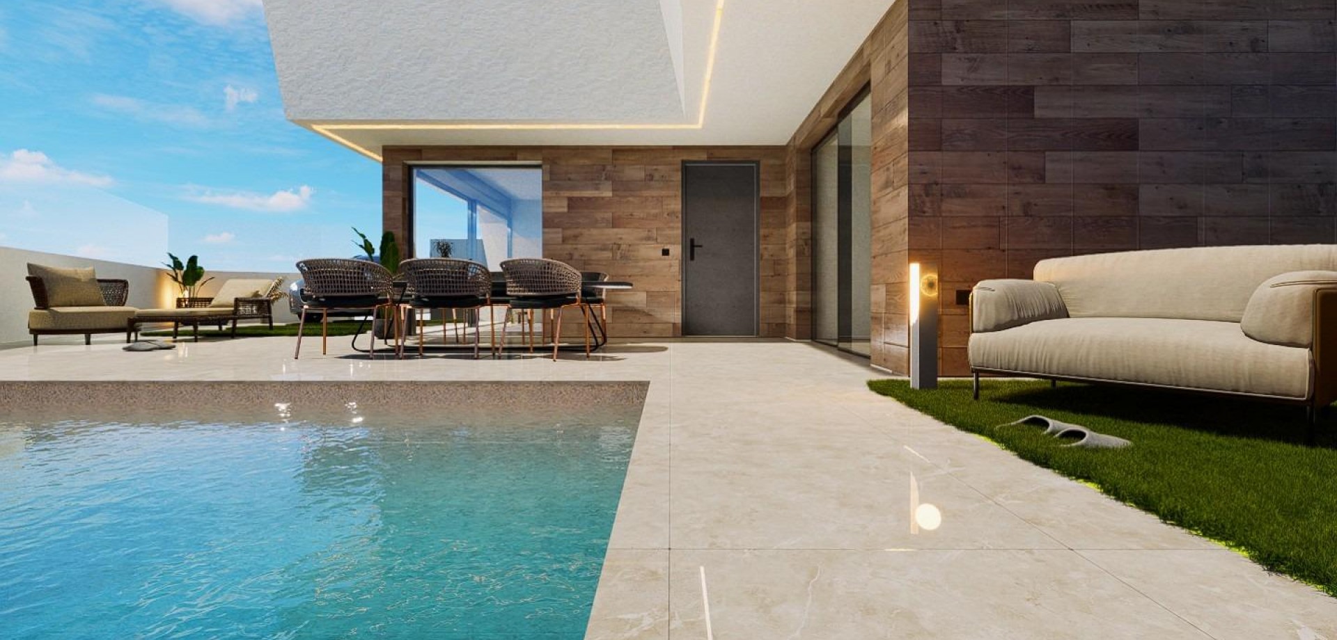 Villas neuves à San Pedro del Pinatar avec piscine privée Design moderne et emplacement privilégié Ce lotissement exclusif de villas neuves à San Pedro del Pinatar offre la combinaison parfaite entre style contemporain, confort et emplacement imbattable sur la Costa Cálida. Conçues sur deux niveaux et construites sur des terrains à partir de 250 m², chaque villa dispose d'un agencement moderne avec un salon et une cuisine lumineux et ouverts qui communiquent directement avec la piscine privée. Le parking est inclus dans le terrain pour un maximum de commodité. Situées dans un quartier résidentiel central, les villas se trouvent à seulement 5 minutes à pied du centre-ville, à 900 mètres de la mer et à proximité de tous les services essentiels tels que les magasins, les supermarchés, les écoles et les restaurants. Intérieurs spacieux et agencement fonctionnel Ces villas sont réparties sur deux niveaux : Rez-de-chaussée : salon et salle à manger ouverts avec cuisine intégrée, une chambre, une salle de bains et une terrasse. Premier étage : deux chambres avec salle de bains attenante et accès à une terrasse ouverte de 25 m². Chaque détail a été soigneusement conçu pour maximiser le confort et le style, ce qui rend ces villas idéales comme résidence permanente, maison de vacances ou investissement immobilier. Finitions et équipements de haute qualité Chaque propriété comprend des finitions haut de gamme et des installations modernes pour garantir l'efficacité énergétique et une expérience de vie luxueuse : Porte d'entrée blindée et volets électriques dans le salon Pré-installation de la climatisation gainable Système d'eau chaude aérothermique Cuisine entièrement équipée avec appareils électroménagers Éclairage LED pour l'intérieur et l'extérieur Mode de vie à San Pedro del Pinatar San Pedro del Pinatar est une ville côtière très prisée, située entre la mer Méditerranée et la Mar Menor, célèbre pour ses bains de boue naturels de Lo Pagán, ses plages tranquilles et ses activités nautiques. La marina et les clubs de voile attirent les amateurs de sports nautiques, tandis que la douceur du climat permet de pratiquer des activités de plein air toute l'année. La ville offre également des installations sportives, une piscine couverte et un agenda social et culturel animé. Distances vers les principaux points d'intérêt : Centre commercial Dos Mares : 5 km Carthagène : 25 minutes Aéroport international de Murcie : 30 minutes Aéroport d'Alicante : 75 km Terrains de golf : dans un rayon de 10 à 20 km Assurez-vous votre nouvelle maison sur la Costa Cálida Avec leur emplacement privilégié, leur design moderne et leurs excellentes connexions, ces villas à San Pedro del Pinatar constituent une opportunité unique. Contactez-nous dès aujourd'hui pour organiser une visite et commencer à profiter du style de vie méditerranéen que vous méritez.