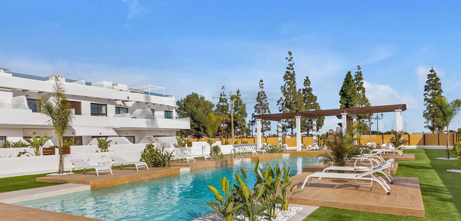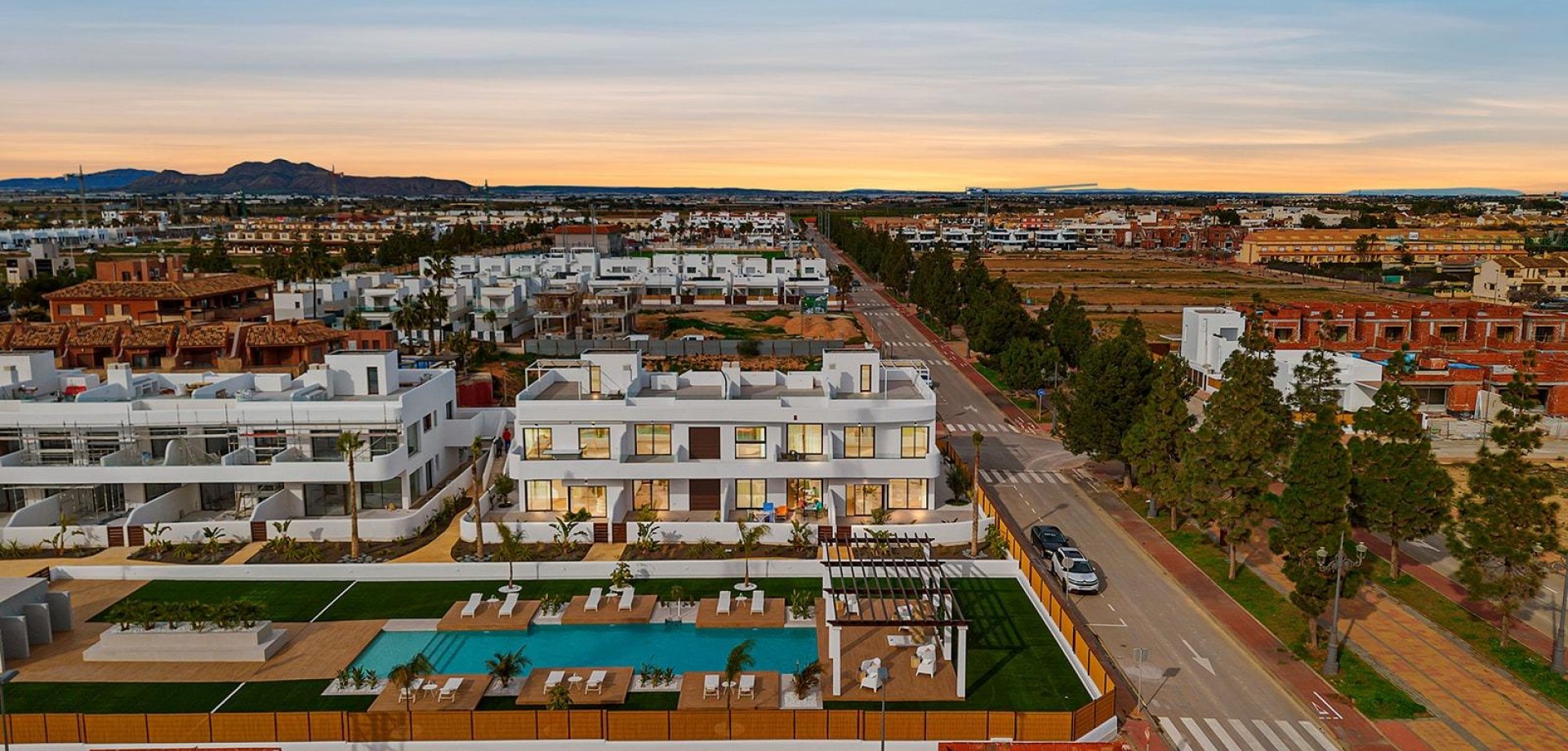 Nouveau complexe résidentiel près du Serena Golf et du Mar Menor à Los Alcazares Une vie moderne en bord de mer sur la Costa Calida Découvrez ce nouveau complexe résidentiel attrayant situé à Los Alcazares, l'une des villes balnéaires les plus populaires de la Costa Calida. Situé à seulement 500 mètres des plages du Mar Menor et à quelques pas du centre-ville, ce complexe offre une excellente combinaison entre vie en bord de mer, environnement golfique et commodités quotidiennes. Los Alcazares est bien connu pour son atmosphère détendue, ses longues promenades, ses eaux chaudes et peu profondes et son large éventail de restaurants, de magasins et de services ouverts toute l'année. Appartements contemporains conçus pour le confort Le complexe se compose de 29 logements modernes de 2 ou 3 chambres, conçus avec des lignes architecturales épurées et des finitions de haute qualité. Les acheteurs peuvent choisir entre des appartements au rez-de-chaussée avec jardin et terrasse privés, des logements à l'étage intermédiaire avec terrasses spacieuses ou des penthouses avec terrasse privée et solarium sur le toit offrant une vue dégagée. La plupart des propriétés bénéficient d'une vue sur le Serena Golf et la Mar Menor, créant un cadre de vie calme et agréable. Tous les logements sont conçus pour maximiser la lumière naturelle et la fonctionnalité, ce qui les rend idéaux comme résidence permanente, maison de vacances ou investissement immobilier. Caractéristiques de haute qualité et espaces communs Chaque propriété comprend une place de parking privée et un débarras. Les spécifications sont conçues pour offrir confort et efficacité énergétique, notamment des fenêtres à double vitrage avec rupture thermique, la pré-installation de la climatisation gainable, un système aérothermique pour l'eau chaude sanitaire, des volets électriques dans les chambres et un ensemble complet d'éclairage intérieur et extérieur. Les salles de bains sont livrées entièrement équipées avec des meubles, un miroir et une paroi de douche. Les résidents peuvent profiter d'espaces communs attrayants avec des jardins paysagers et une piscine commune, parfaits pour se détendre et profiter du climat méditerranéen. Certains immeubles sont équipés d'ascenseurs pour plus de commodité. Emplacement privilégié entre golf et mer Ce complexe résidentiel bénéficie d'un emplacement privilégié à côté du Serena Golf, l'un des terrains de golf les plus renommés de la région, et à quelques pas des eaux calmes du Mar Menor. La région est idéale pour la natation, la voile, le paddleboard et d'autres sports nautiques tout au long de l'année. Les distances clés comprennent les plages de Mar Menor à 0,5 km, Serena Golf juste à côté du complexe, le centre-ville de Los Alcazares à 2 km, Carthagène à 22 km et la ville de Murcie à 40 km. L'aéroport de Murcie Corvera est à environ 30 km et l'aéroport d'Alicante à environ 90 km. Une maison idéale ou une opportunité d'investissement Avec son emplacement exceptionnel, son design moderne et sa proximité avec le golf et la mer, ce nouveau complexe résidentiel à Los Alcazares offre une opportunité de style de vie exceptionnelle sur la Costa Calida. Contactez-nous dès aujourd'hui pour obtenir plus d'informations ou pour organiser une visite privée et acquérir votre nouvelle maison près de la Mar Menor.