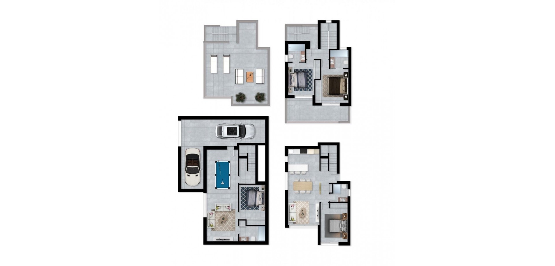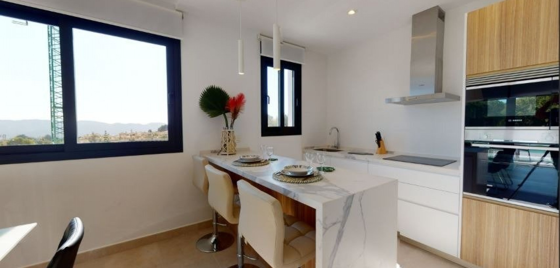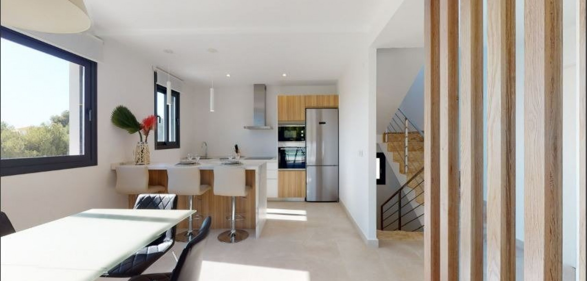 VILLAS DE NOUVELLE CONSTRUCTION À LA NUCIA Nouvelle construction résidentielle de villas confortables et luxueuses avec piscines privées à La Nucia. Les villas se composent de 3 grandes chambres doubles avec des armoires encastrées et doublées, une chambre au rez-de-chaussée et les deux autres au premier étage. Il s'agit de 4 salles de bains complètement terminées avec des écrans en verre, des toilettes en porcelaine et des robinets thermostatiques dans les douches, une au premier étage, une autre dans le garage et les 2 autres en suite dans les chambres du premier étage. Salon lumineux avec de grandes fenêtres qui donnent accès à la parcelle privée avec piscine et gazon artificiel où vous pourrez profiter et vous détendre. Cuisine américaine entièrement équipée avec des meubles hauts et bas, des appareils électroménagers haut de gamme et un îlot avec des meubles bas, un plan de travail en SILESTONE avec un évier intégré en acier inoxydable et une hotte aspirante design en acier inoxydable. Installation de climatisation et de chauffage par conduits AEROTHERMAL avec 2 machines indépendantes (double zone). Le confort et le design PORCELANOSA offrent des finitions exclusives, telles que les planchers flottants, les sols en pierre naturelle et le grès de première qualité.Toute la Villa dispose d'un éclairage LED intérieur et extérieur et de volets électriques. Résidentiel situé dans une zone exclusive de grande qualité et avec tous les conforts ; terrasse, solarium, garage privé pour 2 véhicules, zones de jardin, urbanisation, piscine et tout ce que vous pouvez imaginer. Résidentiel engagé pour l'environnement, équipé de panneaux solaires pour la production d'eau chaude sanitaire, éclairage LED et isolation THERMAL-ACOUSTIQUE. La Nucía est une municipalité de la comarca de Marina Baixa, Alicante. Elle est limitrophe des municipalités d'Altea, Callosa d'En Sarrià, Benidorm, Polop et L'Alfàs del Pi. La Nucia est située dans une vallée fruitière entre Benidorm et Callosa d'En Sarrià, à 3 km de la côte d'Altea. Le centre urbain se trouve sur un promontoire surplombant la mer Méditerranée, à 51 km au nord d'Alicante et à 8 km au nord de Benidorm. DISTANCES : - Accès par l'autoroute A. - 5 minutes de Terra Mitica. - 5 minutes de l'école ELIANS. - 5 minutes des supermarchés, cafés et toutes sortes de services. - 10 minutes de la plage de Benidorm. - 15 minutes de la Playa del Albir. - 20 minutes du château de Guadalest. - 40Km de l'aéroport d'Alicante-Elche.