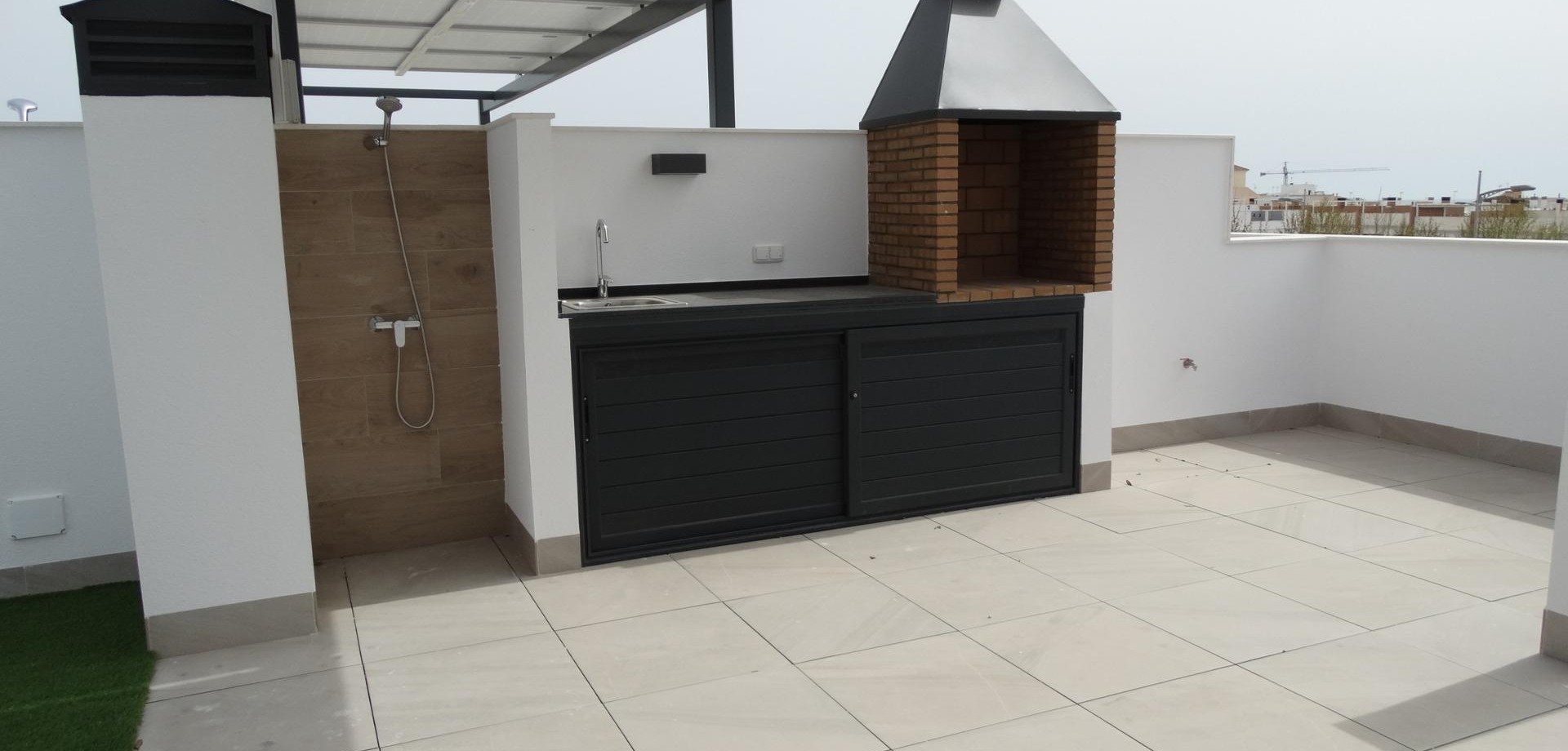 Bungalows neufs avec solarium ou jardin à Pilar de la Horadada Résidence moderne sur la Costa Blanca Sud Situé dans la charmante commune de Pilar de la Horadada, ce nouveau lotissement de bungalows offre un style de vie confortable et méditerranéen dans l'une des zones les plus attrayantes de la Costa Blanca. Pilar de la Horadada est connue pour son ambiance accueillante, son excellent climat et ses longues plages de sable fin telles que Las Higuericas et Mil Palmeras, idéales pour profiter en famille ou pratiquer des sports nautiques. Distribution et types de logements Le complexe se compose de 28 bungalows modernes disponibles en versions 2 et 3 chambres, répartis comme suit : Rez-de-chaussée avec jardin privé Étages supérieurs avec solarium privé et débarras attribué La plupart des logements sont orientés au sud, ce qui garantit une excellente luminosité, et offrent une vue sur la piscine communautaire ou le parc adjacent. Espaces fonctionnels et bien équipés Chaque logement a été conçu avec des espaces spacieux et fonctionnels : Cuisine américaine intégrée avec grand salon-salle à manger Armoires encastrées Terrasse privée dans chaque unité Place de parking incluse De plus, les logements disposent de : Eau chaude par système aérothermique Pré-installation de la climatisation Menuiserie extérieure en PVC avec double vitrage et volets en aluminium Meubles de salle de bains inclus Espaces communs et environnement naturel Le complexe résidentiel comprend une piscine communautaire entourée d'espaces verts, parfaite pour profiter du soleil et de la tranquillité. À seulement 4 km de la plage de Las Higuericas, vous pouvez facilement vous y rendre à pied ou à vélo en empruntant l'agréable promenade qui mène à la mer. Excellent emplacement et connectivité L'emplacement du lotissement permet d'accéder à tous types de services et de points d'intérêt : Supermarchés, magasins, bars et restaurants à moins d'1 km Terrains de golf tels que Lo Romero à 6 km Centre commercial Dos Mares à 11 km Plages de Mil Palmeras et Torre de la Horadada à seulement 5 minutes Aéroport de Murcie (Corvera) à 40 km Aéroport d'Alicante à 65 km Votre nouvelle vie au soleil Ce lotissement à Pilar de la Horadada représente une excellente opportunité de profiter de la vie méditerranéenne dans une maison moderne et bien située. Contactez-nous dès aujourd'hui pour plus d'informations ou pour organiser une visite et faire le pas vers votre nouvelle maison sur la Costa Blanca.
